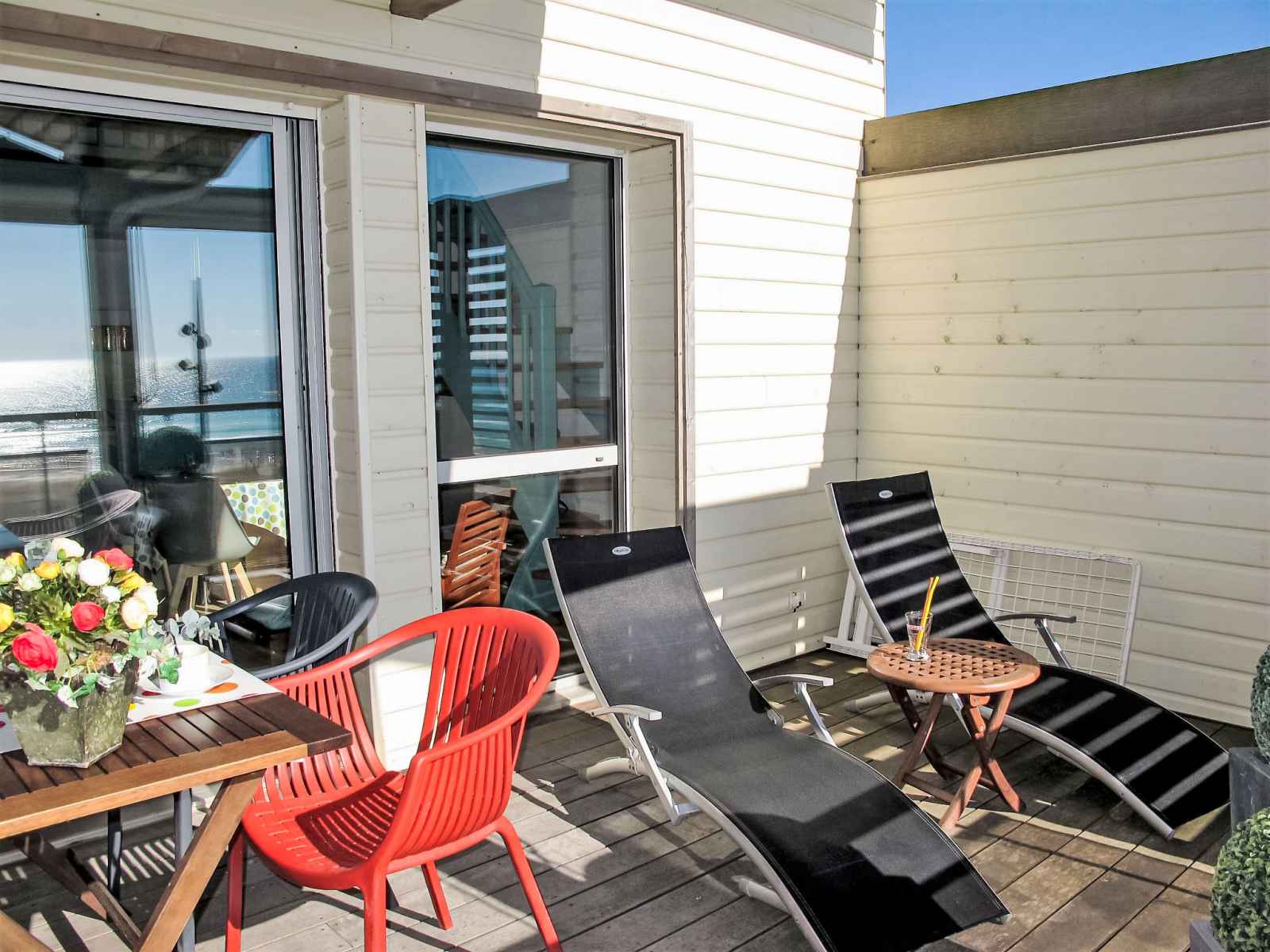 électrique). Douche, WC séparé. À l'étage supérieur: galerie avec 2 lits (90 cm, longueur 190 cm), lavabo et TV (écran plat). Chauffage électrique. Balcon 6 m2, situation sud et situation ouest. Meubles de terrasse, chaises longues (2). Belle vue sur la mer. A disposition: lave-linge. Internet (Connexion WIFI, en sus). Place de parking No 15. Veuillez noter: logement non-fumeur. Maximum 1 animal/ chien autorisé. Détecteur de fumée. Au lieu d'une chambre fermée, des espaces de couchage sont situés dans une zone ouverte (galerie, alcôve...). Annonce d'un particulier (art 155, IV du CGI).