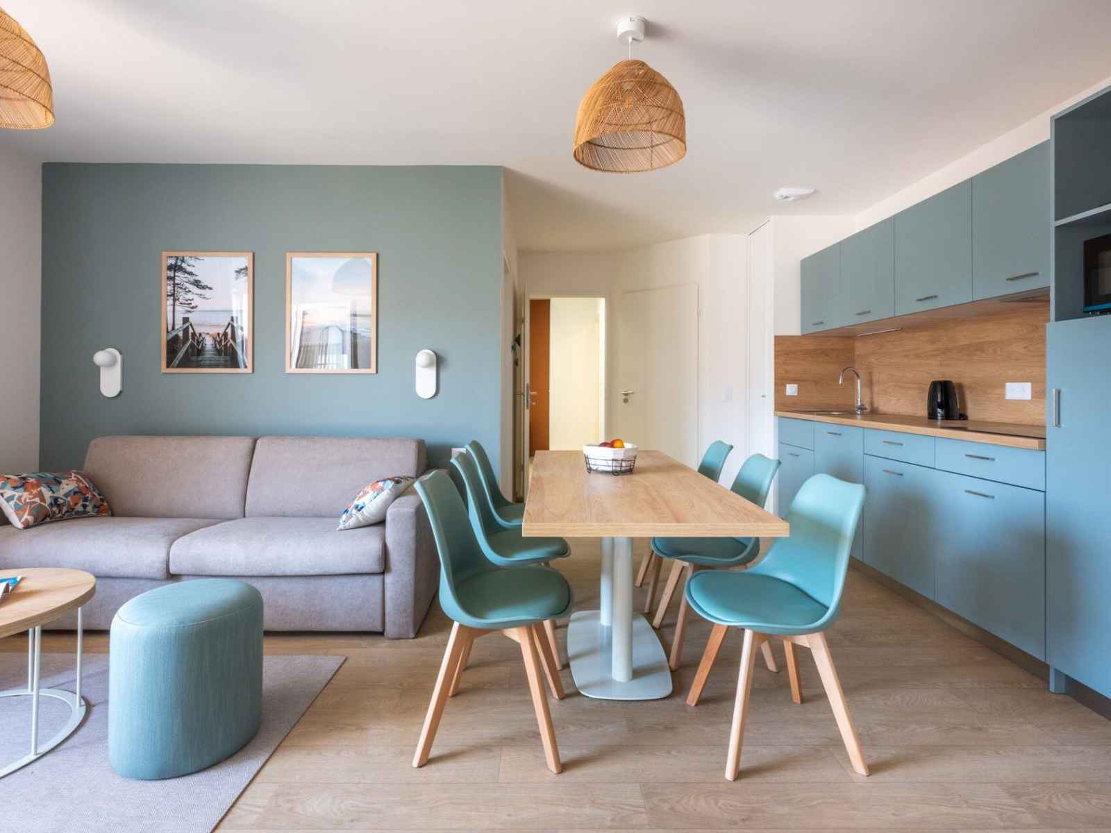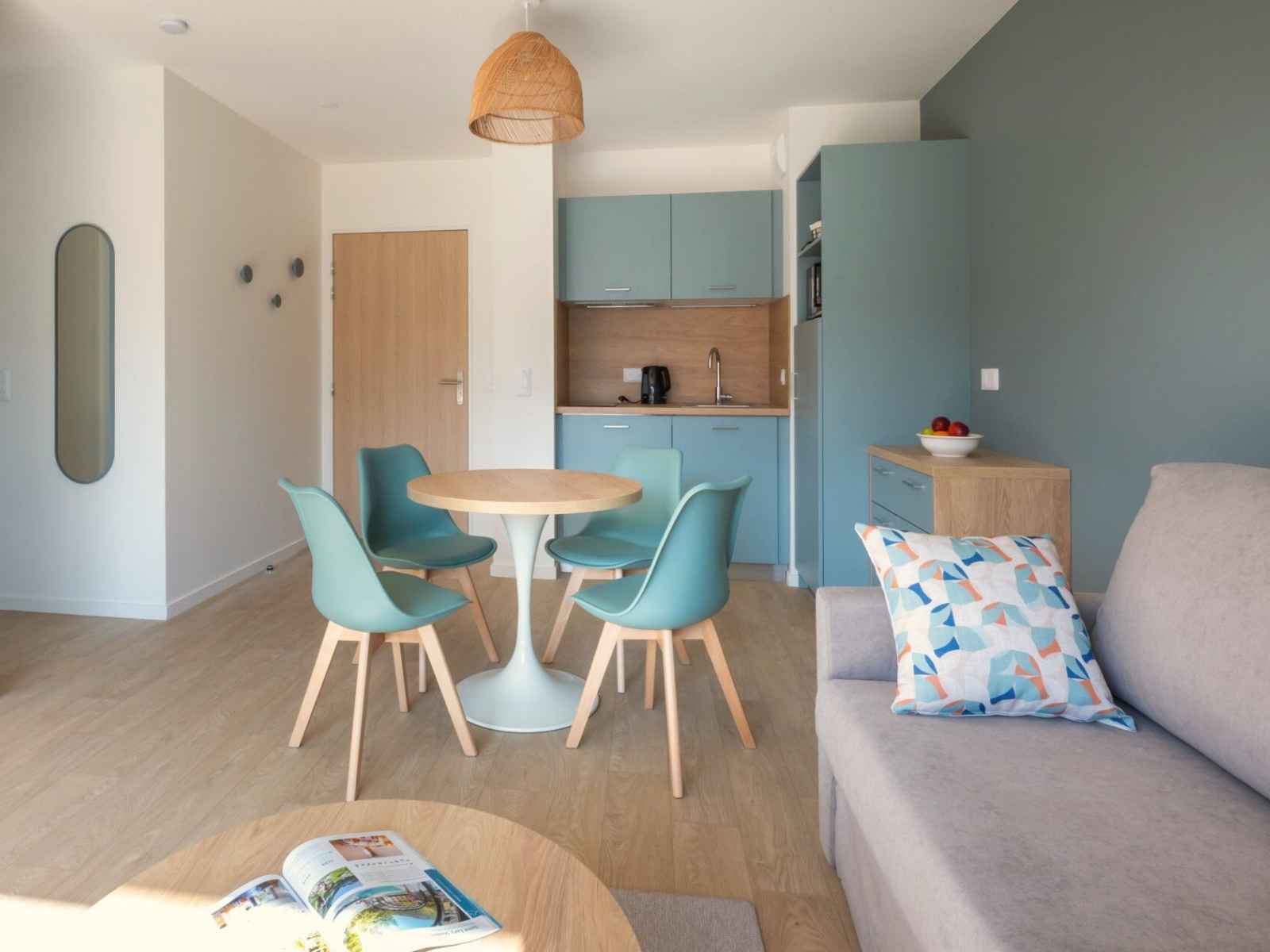 38m2, séjour avec canapé convertible (pour 2 personnes), table, chaises