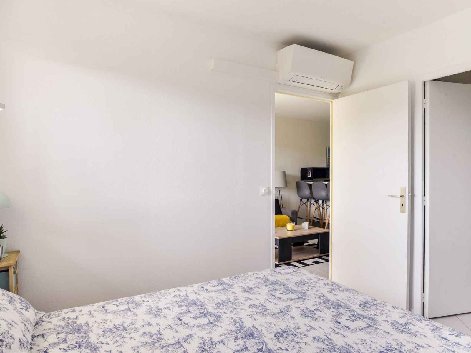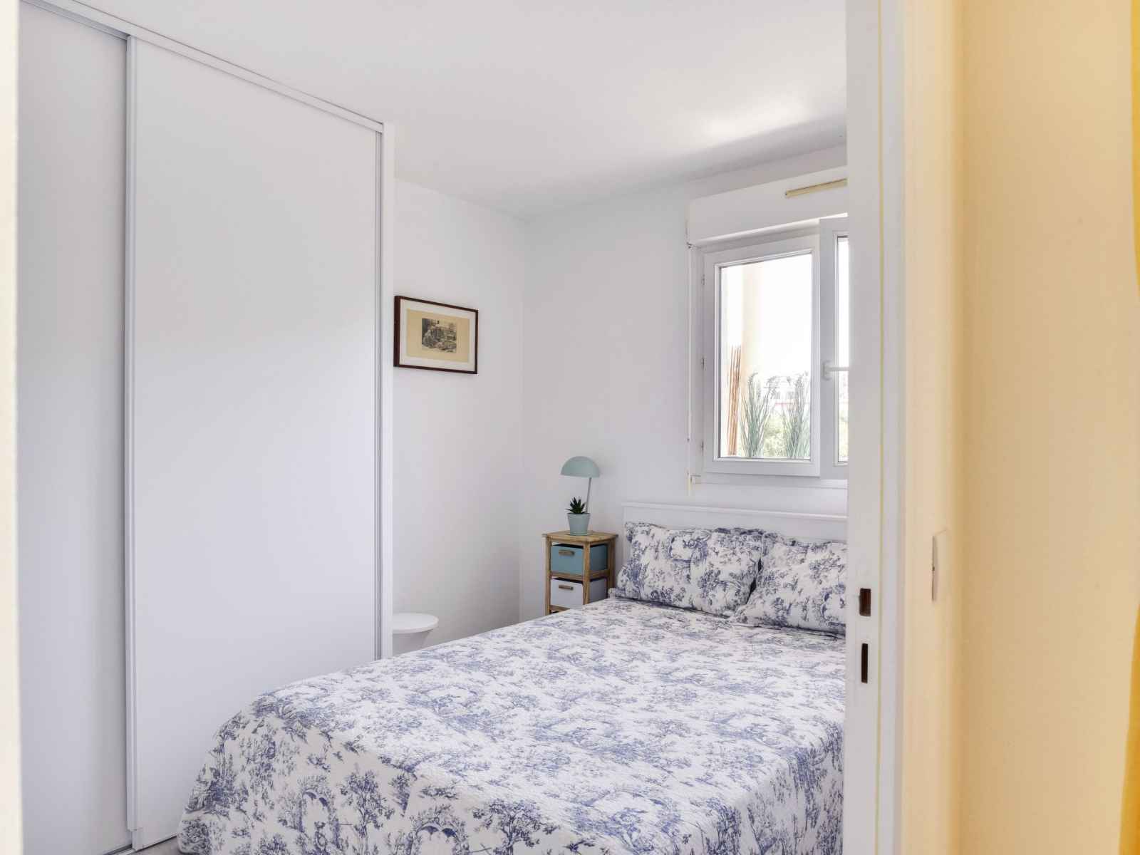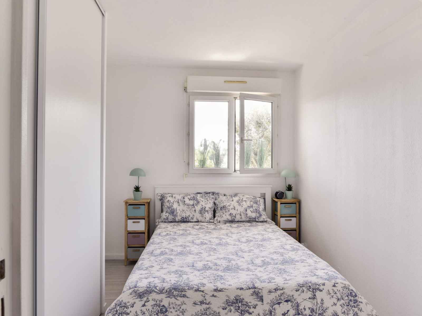 Apt 2 pièces 47 m2 au 2ème étage, situation sud-est. complètement rénové en 2021, aménagement très confortable et moderne: grand séjour/salle à manger 25 m2 avec baie vitrée orientée sud avec 1 divan-lit double (1 x 140 cm, longueur 190 cm), tv (écran plat). sortie sur la terrasse. 1 chambre 12 m2 avec 1 grand-lit (140 cm, longueur