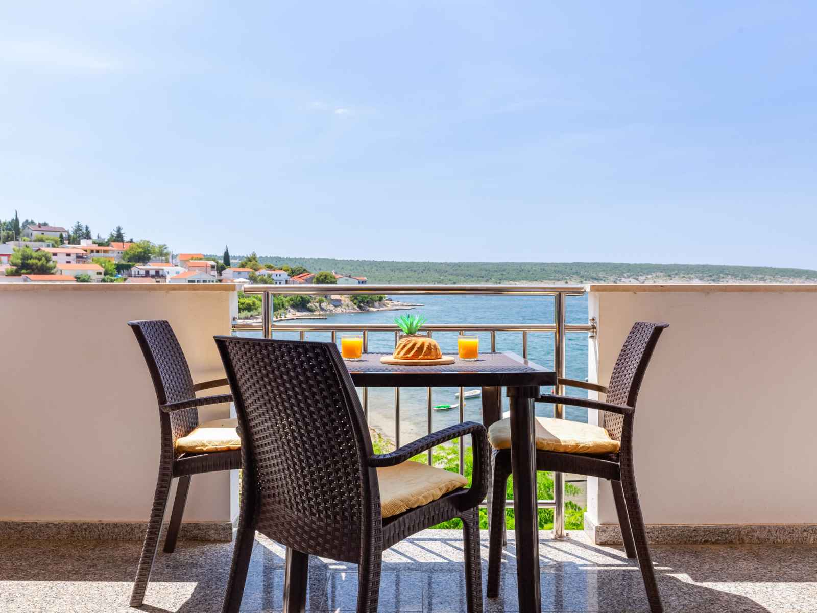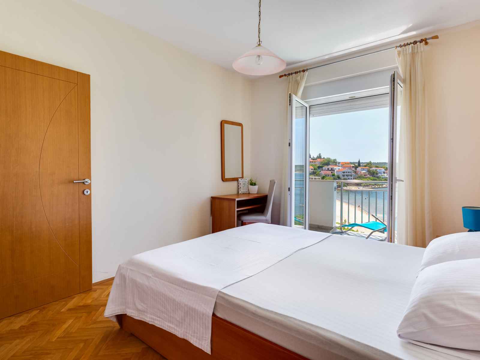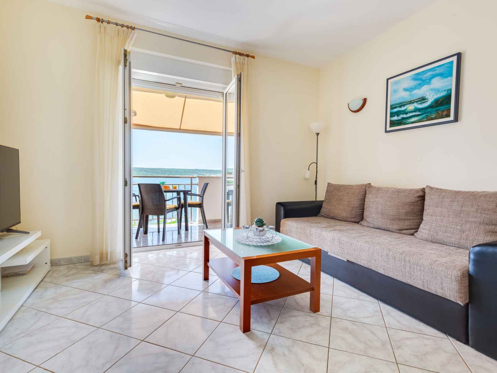"daria 2", apt 2 pièces 45 m2 au 2ème étage. séjour/salle à manger 18 m2 avec 1 divan-lit, tv (satellite) et air-conditionné. sortie sur le balcon. 1 chambre avec 1 lit double. sortie sur le balcon. cuisine ouverte (4 plaques de cuisson, four, lave-vaisselle, congélateur). douche/bidet/wc. pas de chauffage. balcon. mobilier de balcon.