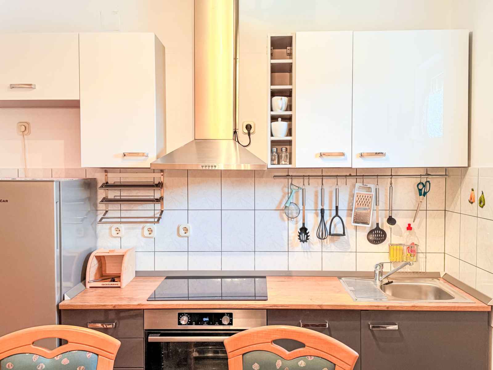 Apt 2 pièces 60 m2 au 1er étage, situation est. séjour/salle à manger avec 1 divan-lit double, tv (satellite) et air-conditionné. sortie sur la terrasse. 1 chambre avec 1 lit double. cuisine ouverte (4 plaques de cuisson, four). douche/wc. terrasse 15 m2 partiellement couverte. meubles de terrasse. a disposition: lave-linge. internet