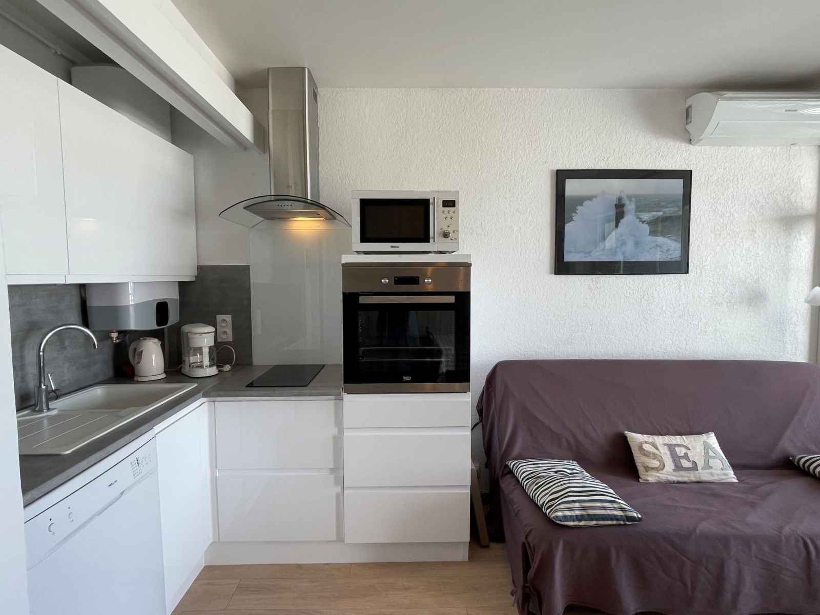 lave-vaisselle, micro-ondes, cafetière électrique). Salle de bains, WC séparé. Air-conditionné. Terrasse 10 m2. Meubles de terrasse. Belle vue sur la mer. Place de parking No EN COMMUN. Veuillez noter: adapté(e) aux familles. Détecteur de fumée.