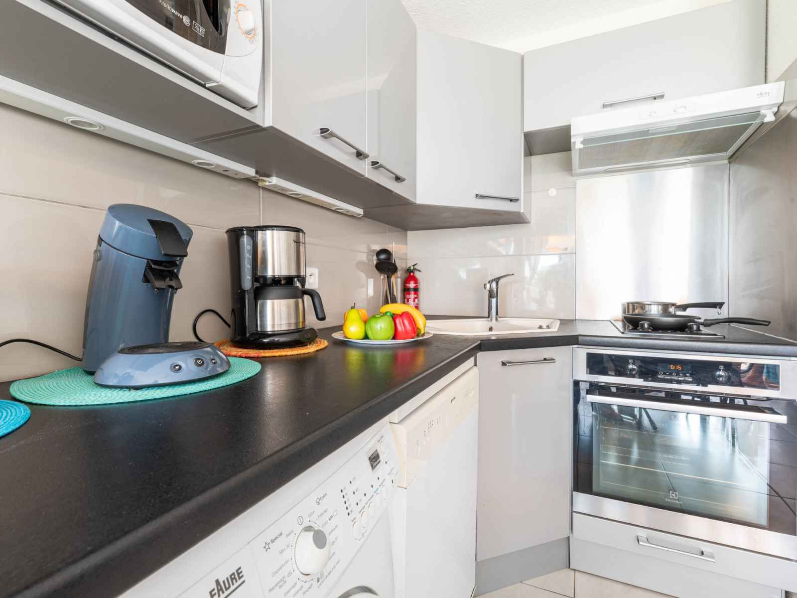 Apt 2 pièces 35 m2 au 1er étage. aménagement agréable et moderne: séjour/salle à manger avec 1 divan-lit double (160 cm, longueur 190 cm), tv (écran plat), air-conditionné. 1 chambre avec 1 grand-lit (140 cm, longueur 190 cm). cuisine ouverte (four, lave-vaisselle, 2 plaques vitrocéramiques, grille-pain, bouilloire électrique,