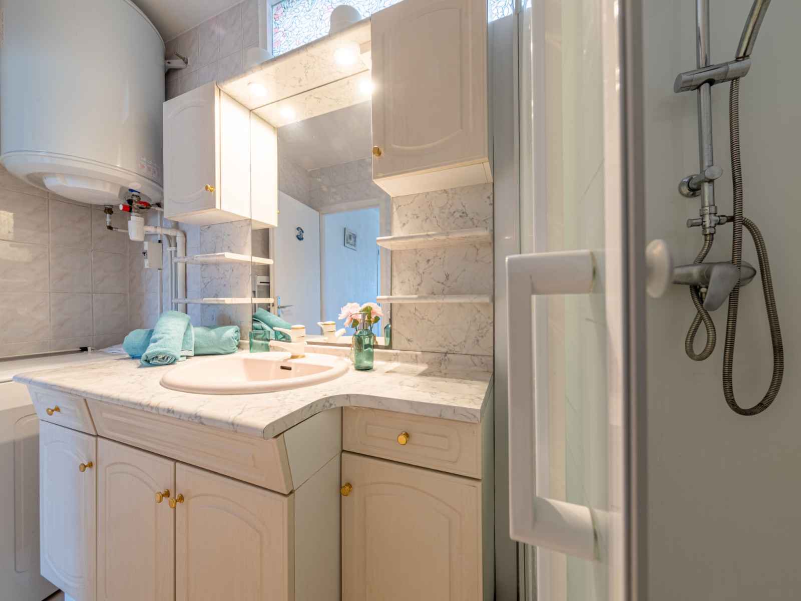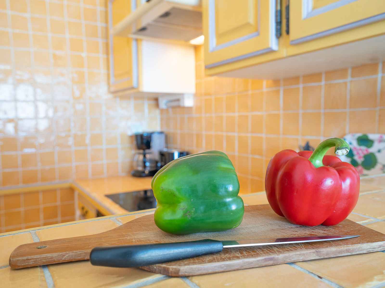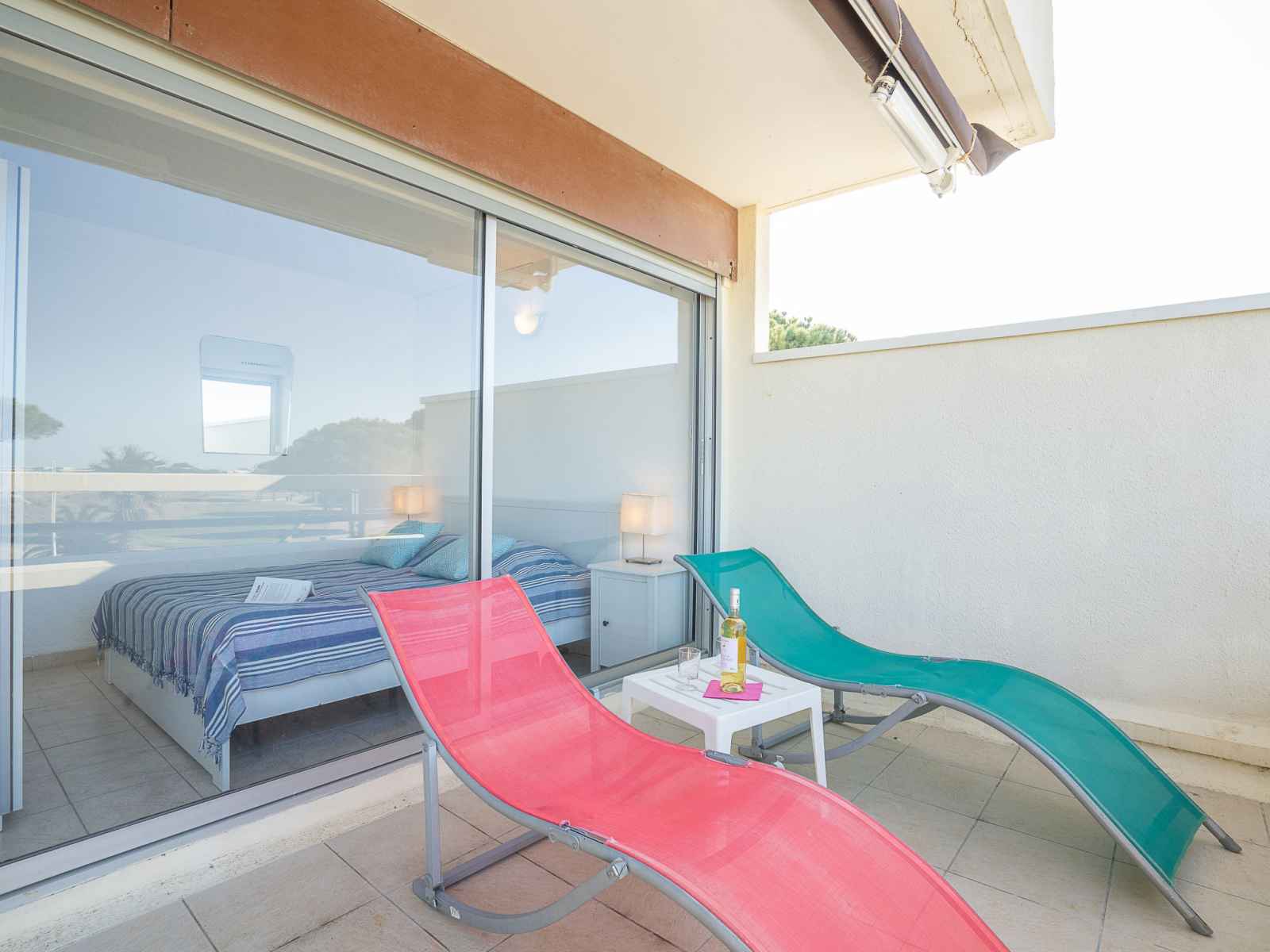 Apt 2 pièces 36 m2 au 2ème étage. séjour/salle à manger avec 1 divan-lit double (1 x 130 cm, longueur 190 cm), tv et air-conditionné. 1 chambre avec 1 grand-lit (160 cm, longueur 200 cm). sortie sur la terrasse. (3 plaques à induction, micro-ondes, congélateur). douche, wc séparé. terrasse 15 m2, situation ouest. meubles de terrasse.