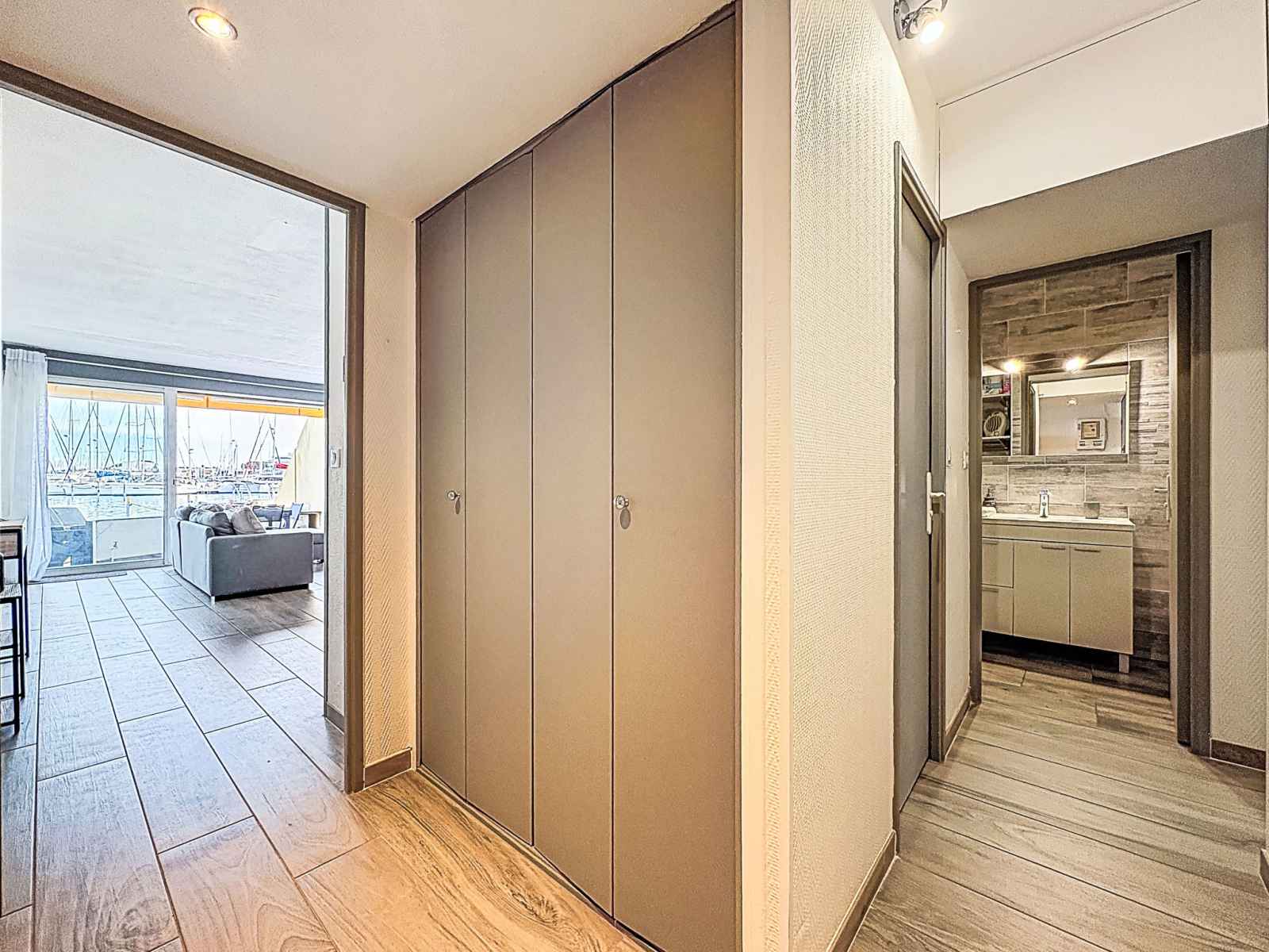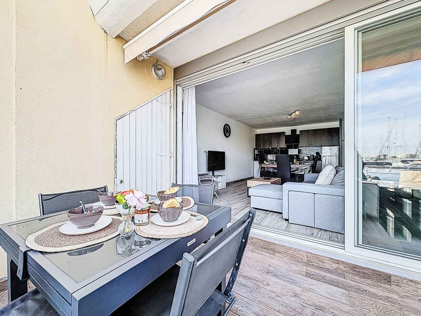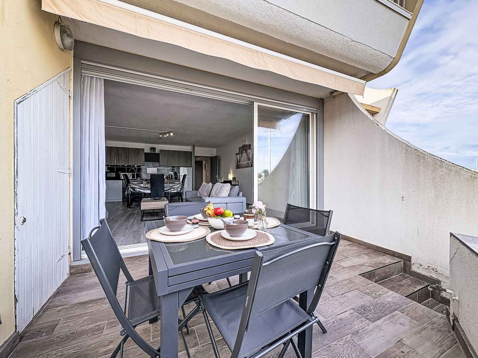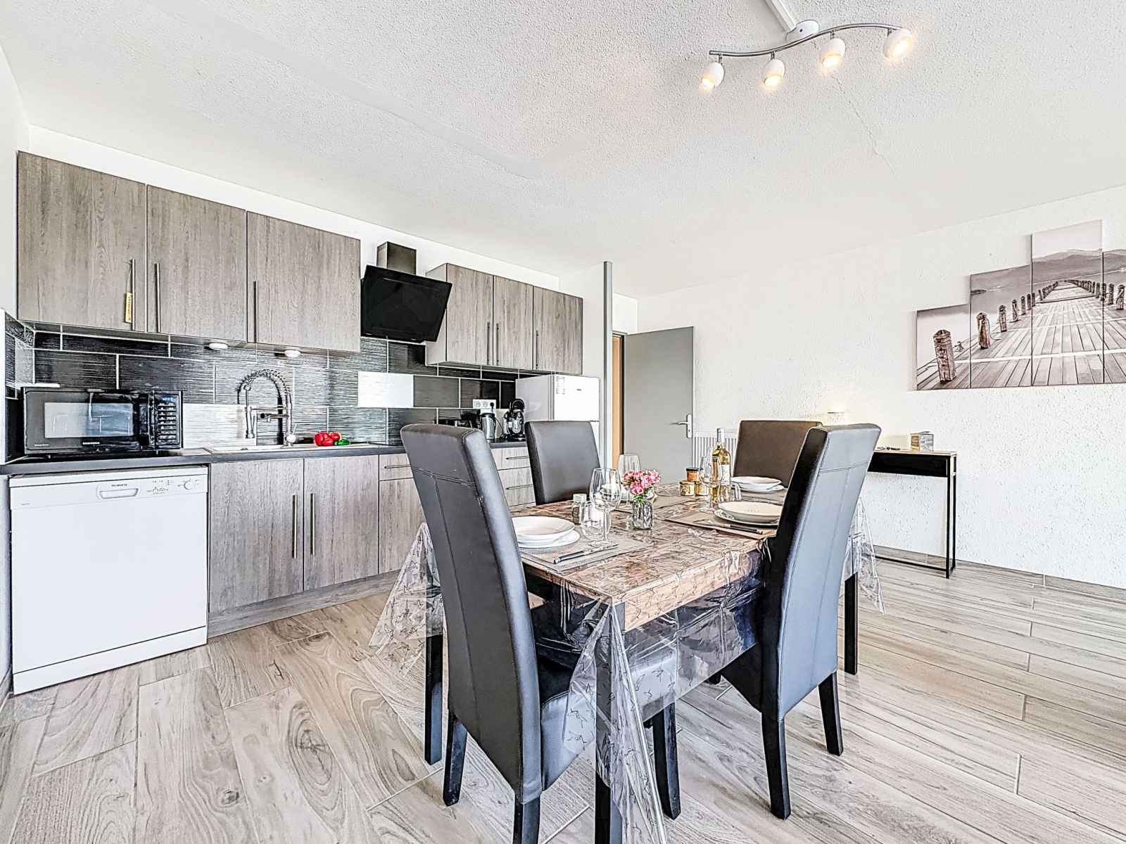 "les marines de l'airan", apt 2 pièces 52 m2, au rez-de-chaussée. aménagement moderne: séjour/salle à manger avec 1 divan-lit double (140 cm, longueur 190 cm), tv (écran plat). 1 chambre avec 1 grand-lit (140 cm, longueur 190 cm). cuisine ouverte (lave-vaisselle, 2 plaques à induction, grille-pain, micro-ondes, congélateur, cafetière
