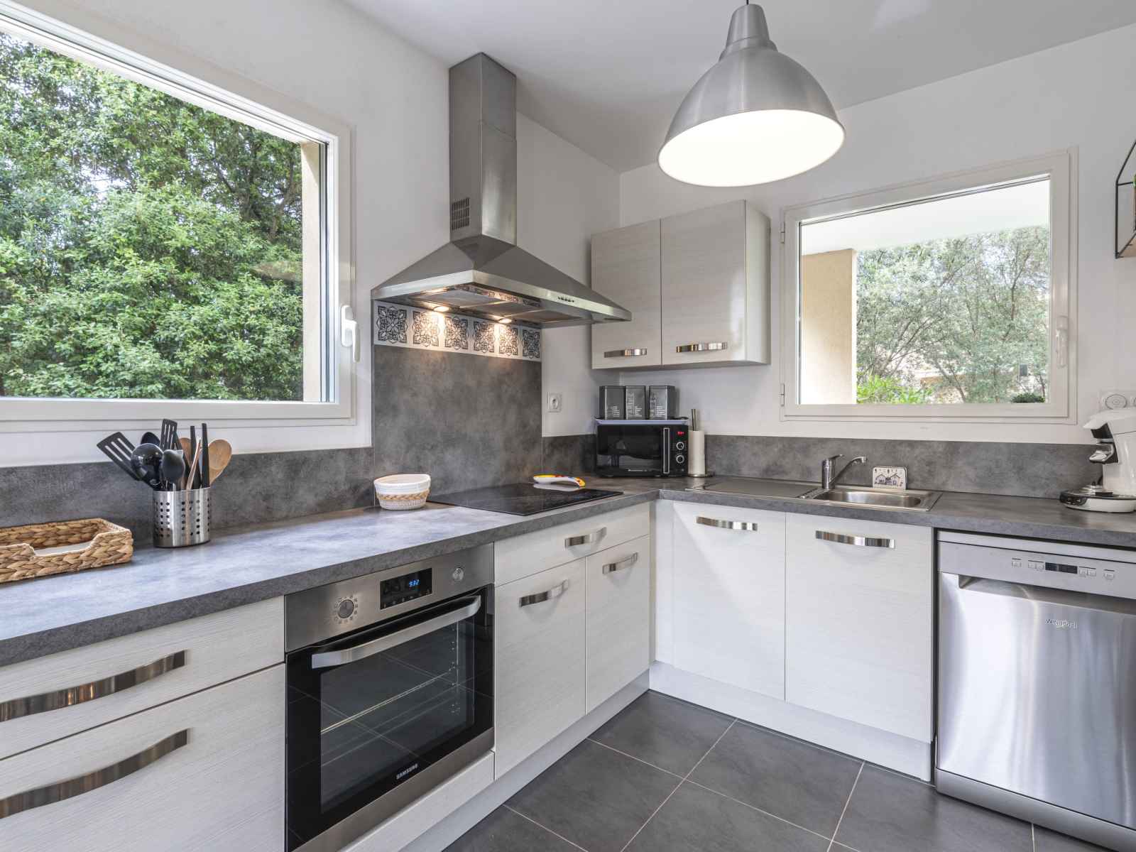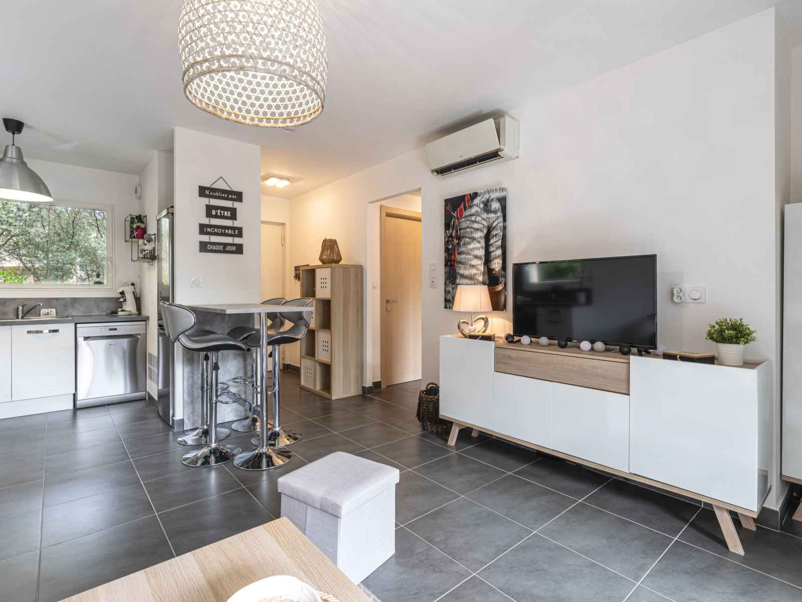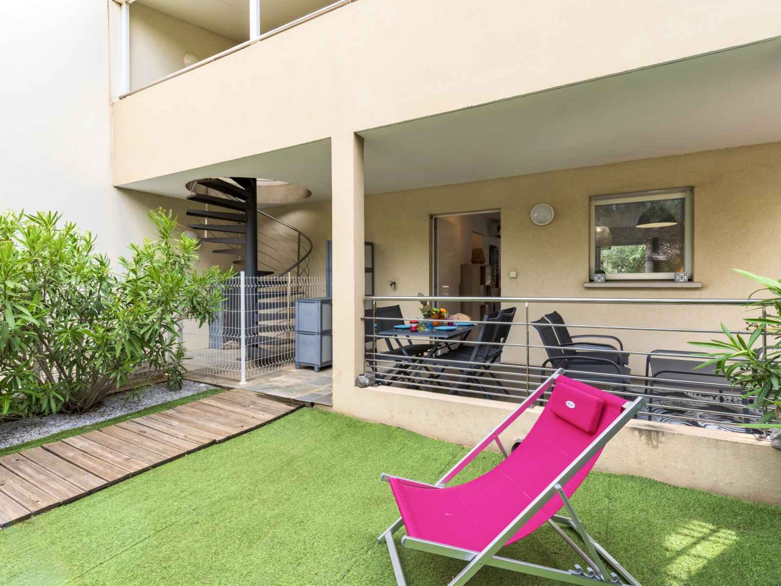 "clos vignola", apt 2 pièces 49 m2, au rez-de-chaussée. séjour/salle à manger avec baie vitrée avec 1 divan-lit double, table pour les repas et tv (écran plat). sortie sur la terrasse. 1 chambre avec 1 grand-lit (160 cm, longueur 200 cm). coin cuisine (four, lave-vaisselle, 4 plaques vitrocéramiques, grille-pain, bouilloire électrique,