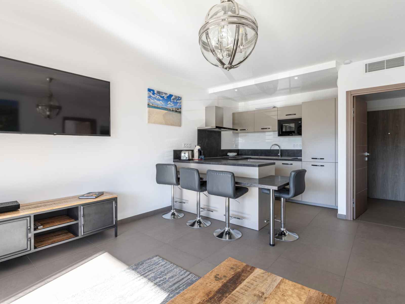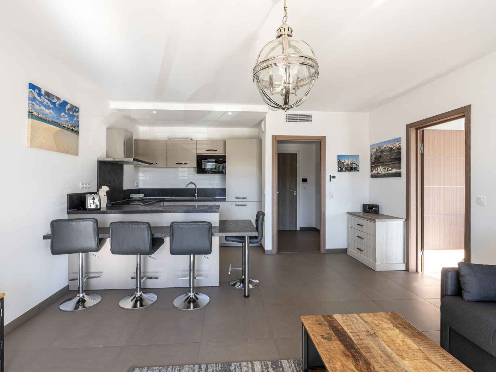 plaques à induction, 4 feux, bouilloire électrique, micro-ondes, cafetière électrique). Bain/WC. Chauffage électrique, air-conditionné. Terrasse 20 m2. Meubles de terrasse. A disposition: lave-linge. Internet (Connexion WIFI, gratuit). Place de parking. Veuillez noter: logement non-fumeur. Détecteur de fumée. 2A247000121E8