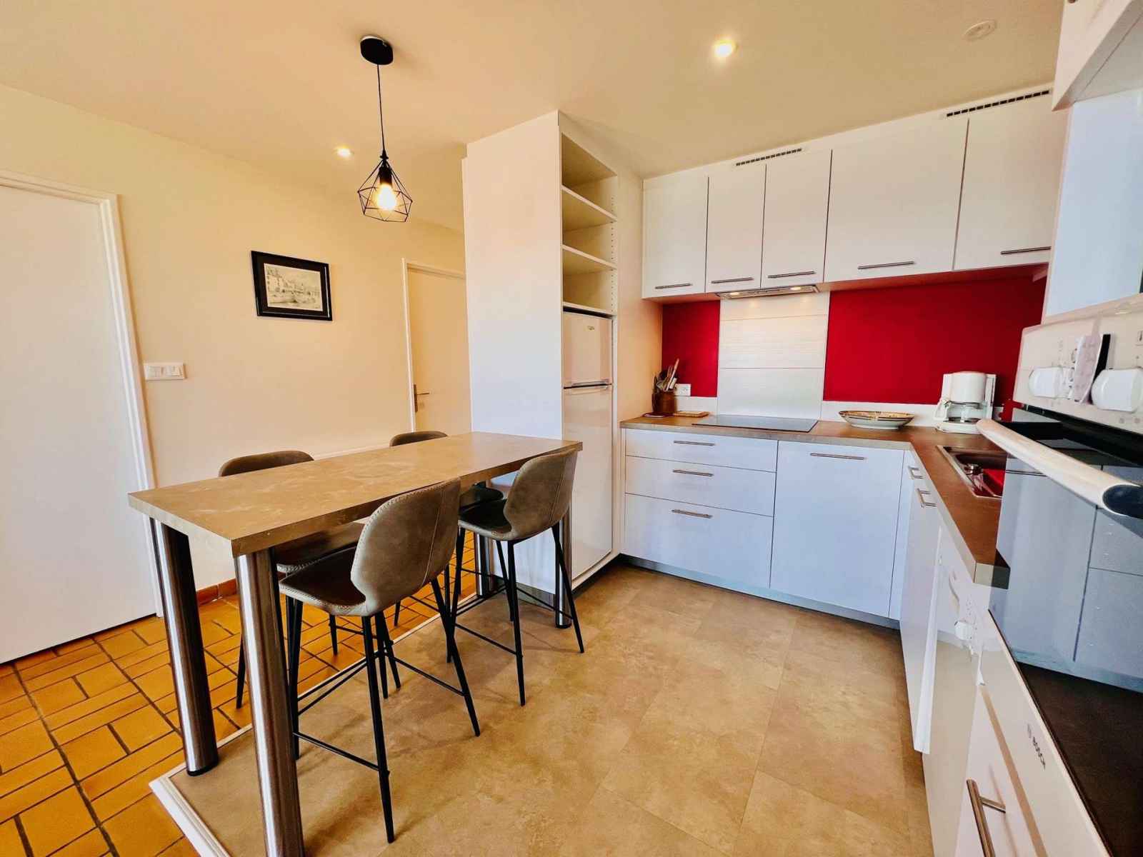 • Equipements : Animaux refusés, Bouilloire, Cafetière, Canapé convertible, Chauffage, Douche, Four, Four micro-ondes, Lave-linge, Lave-vaisselle, Lit double, Local à vélos, Mobilier de jardin, Parking, Plaque à induction, Proximité plage, Proximité port, Quartier calme, Réfrigérateur avec congélateur, sans ascenseur, Sans lits superposés, Sans moquette, Sèche-serviette électrique, Télévision, Terrasse ou balcon, Vue Mer