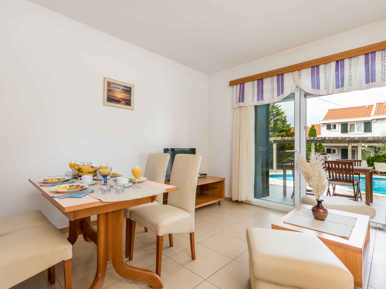 "tomislav 2", apt 2 pièces 48 m2, au rez-de-chaussée. aménagement moderne et plaisant: séjour/salle à manger 30 m2 avec 1 divan-lit double (145 cm, longueur 195 cm), tv (satellite) et air-conditionné. sortie sur la terrasse, sur la piscine. 1 chambre avec 1 lit double (160 cm, longueur 200 cm). sortie sur la terrasse. cuisine ouverte (4