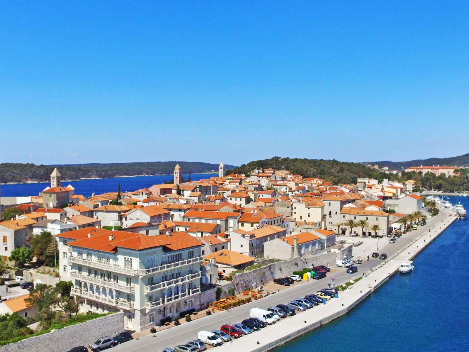Belle petite résidence. dans le quartier de palit, à 2 km du centre de rab en-dehors de la localité, situation ensoleillée, surélevée, à 100 m de la mer, à 250 m de la plage. en commun: terrain (clôturé), jardin entretenu avec pelouse, piscine rectangulaire chauffée (9 x 4 m, profondeur 120 - 160 cm, disponibilité saisonnière: 25.avr.
