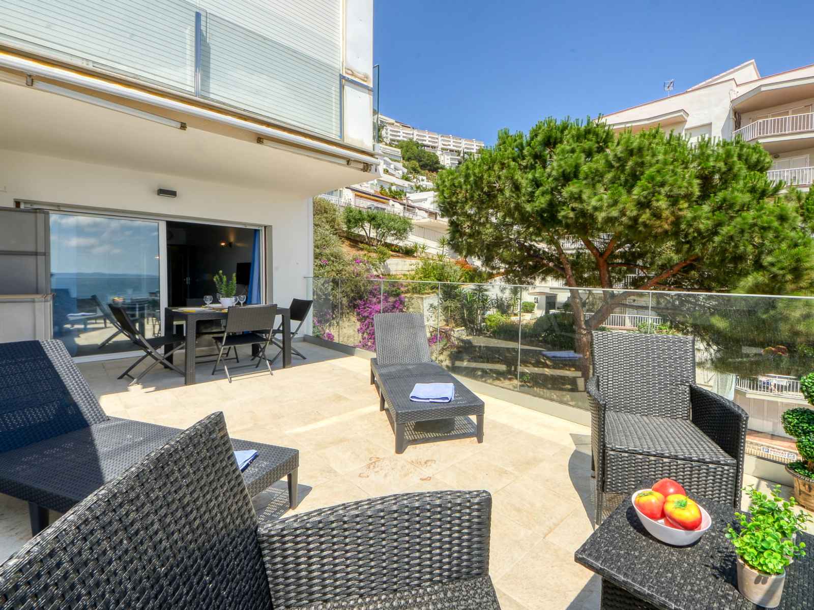cm). Cuisine ouverte (four, lave-vaisselle, 3 plaques à induction, grille-pain, micro-ondes, congélateur, cafetière électrique). Douche/WC. Pas de chauffage. Grande terrasse. Meubles de terrasse. Superbe vue panoramique sur l'océan. A disposition: fer à repasser, sèche-cheveux. Internet (Connexion WIFI, gratuit). Veuillez noter: TV seulement FR, ES, DE. Sans ascenseur. HUTG-038509 // Reg. Nr.: ESFCTU00001701900025055100000000000000HUTG-038509-302