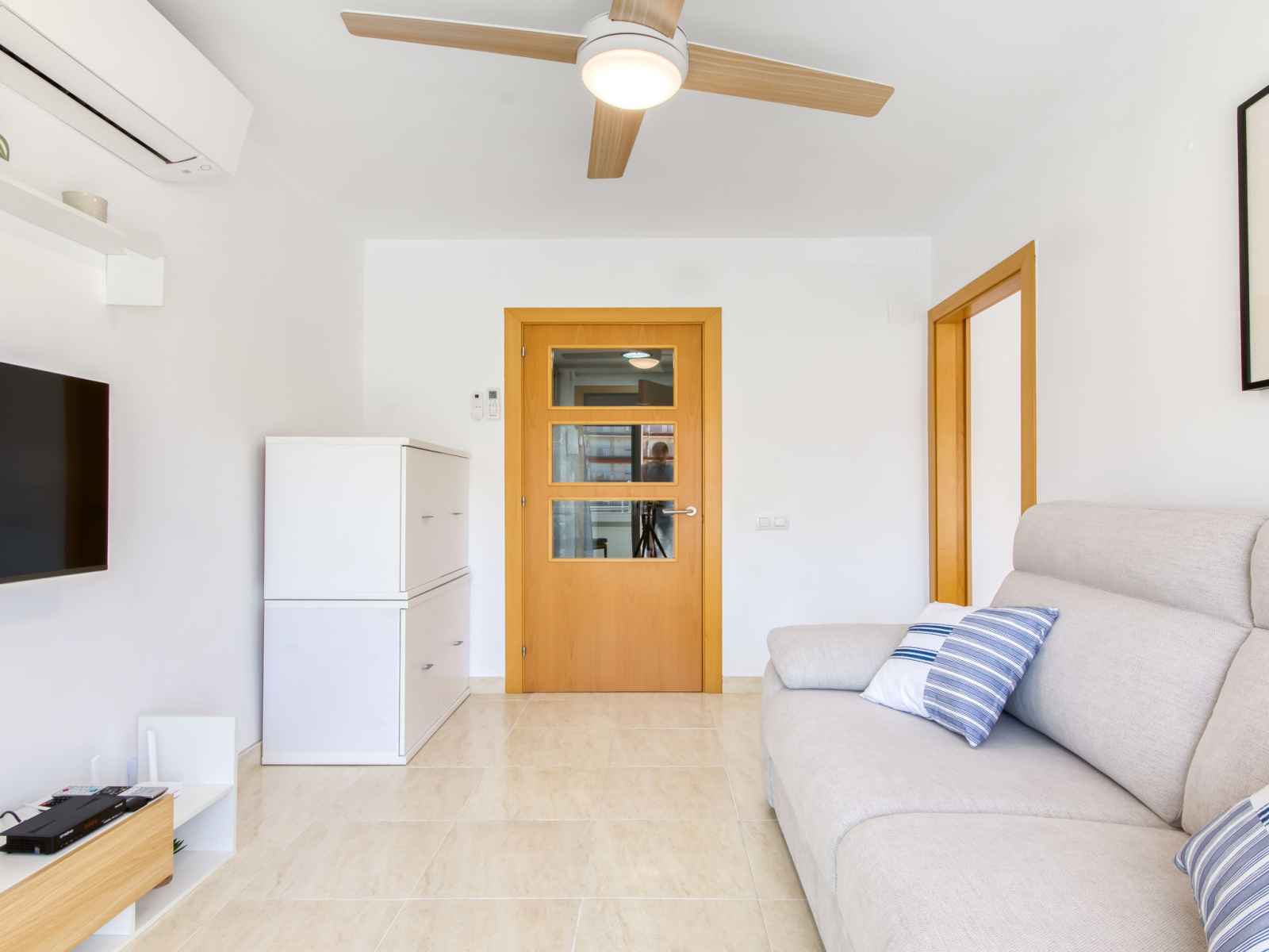 vitrocéramiques, grille-pain, bouilloire électrique, micro-ondes, congélateur). Douche/WC. Grande terrasse 8 m2. Meubles de terrasse. Très belle vue sur la mer. A disposition: lave-linge, fer à repasser, sèche-cheveux. Internet (Connexion WIFI, gratuit). Veuillez noter: logement non-fumeur. 1 animal/ chien de petite taille autorisé. TV seulement ES, FR. HUTG-008364 // Reg. Nr.: ESFCTU00001701900013492900000000000000000HUTG-0083648
