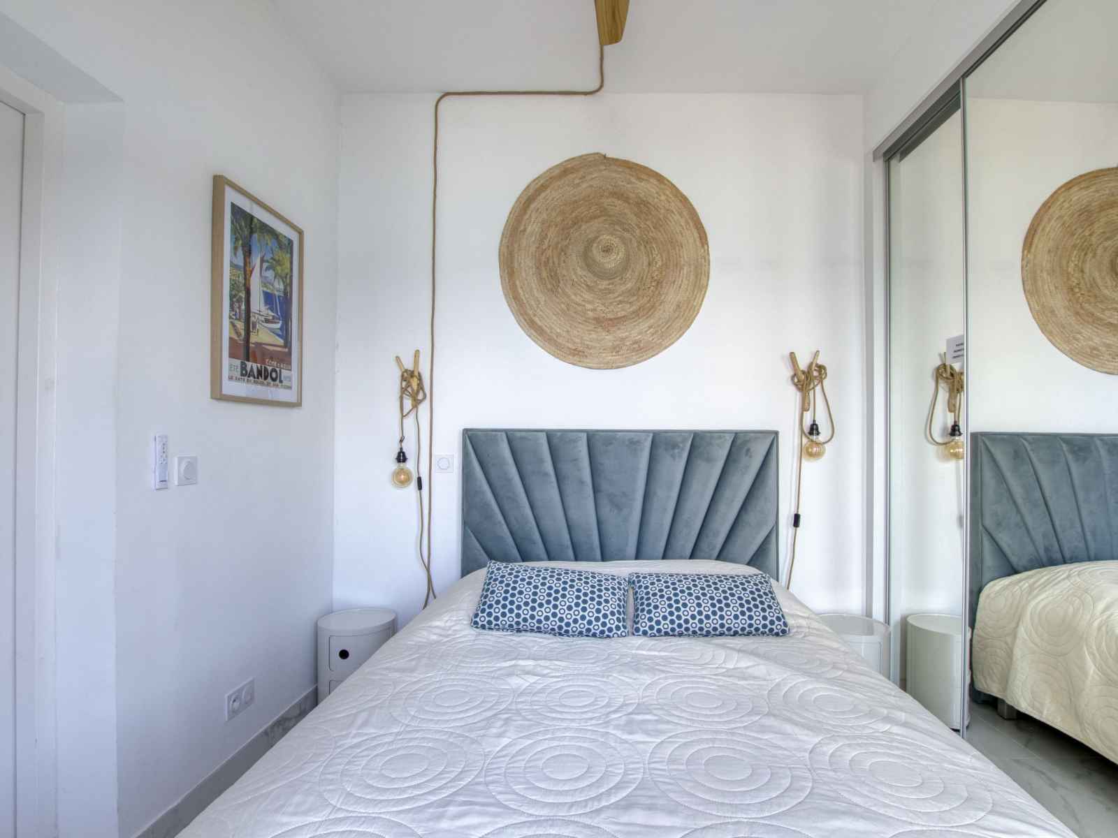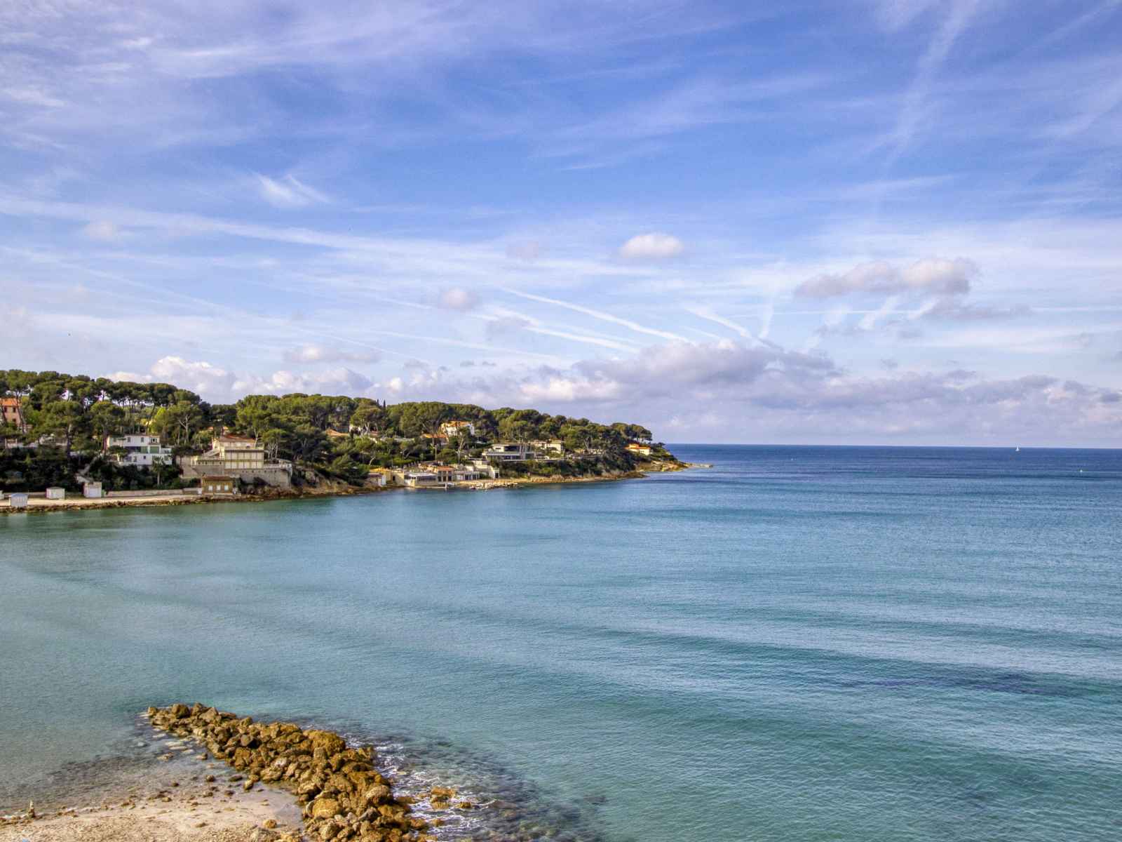 Résidence "la kamarina", de 3 étages, rénovée en 2022. À 3 km du centre de sanary, en bordure de la localité, à 2.5 km du centre de bandol, situation tranquille, juste au bord de la mer, accès direct à la plage, orientée sud-ouest. place de parking no 12. magasin d'alimentation 1 km, restaurant 200 m, arrêt de bus 500 m, plage de sable