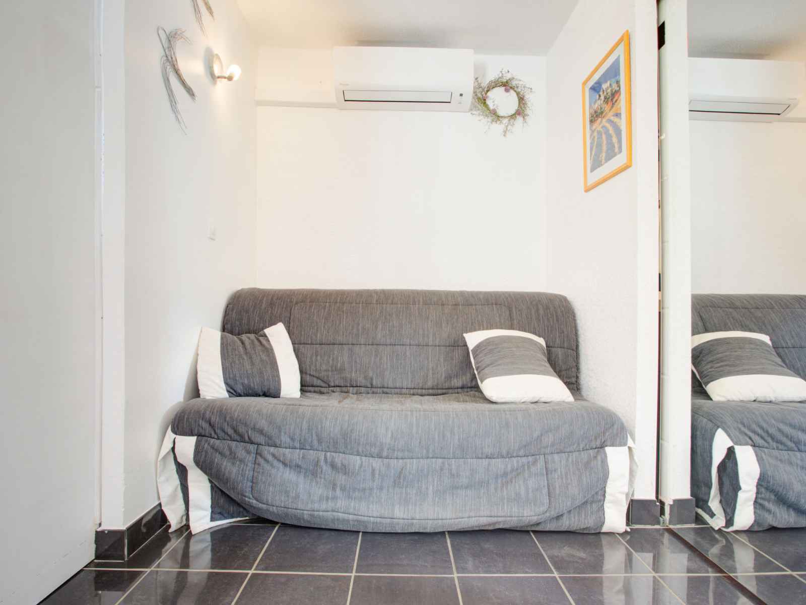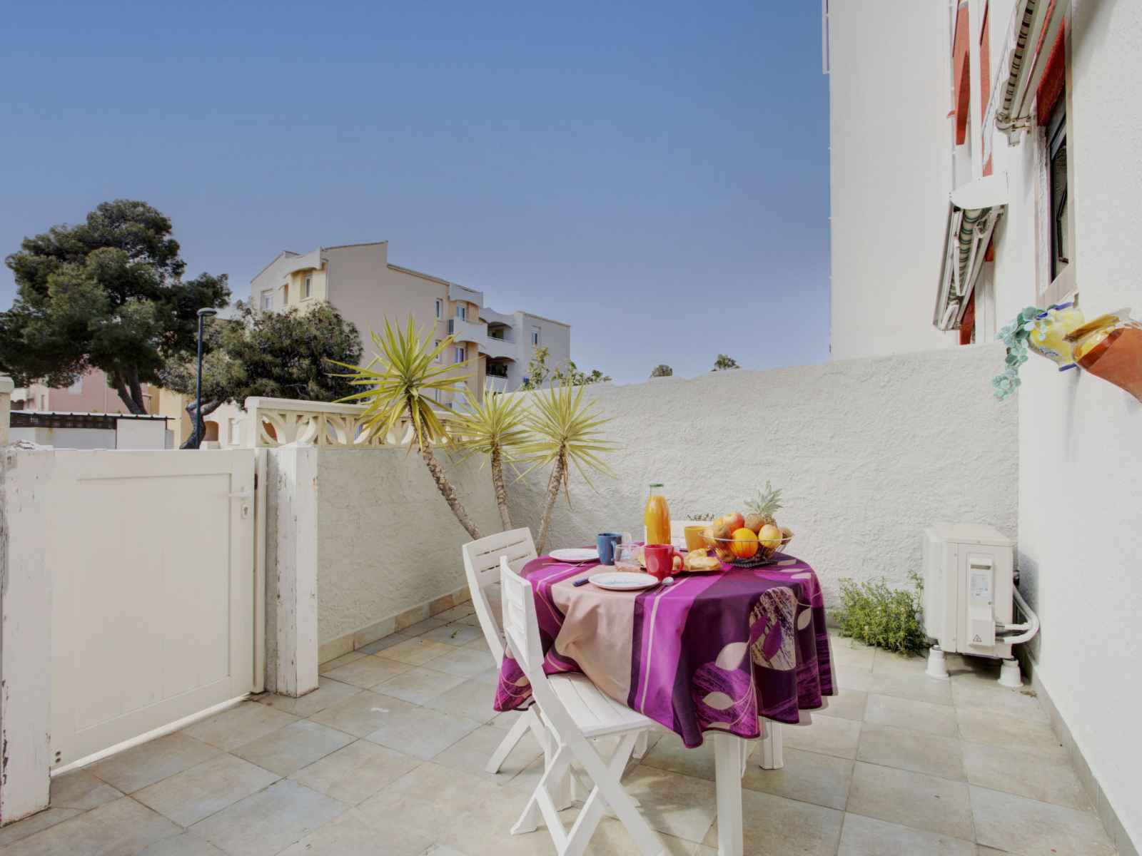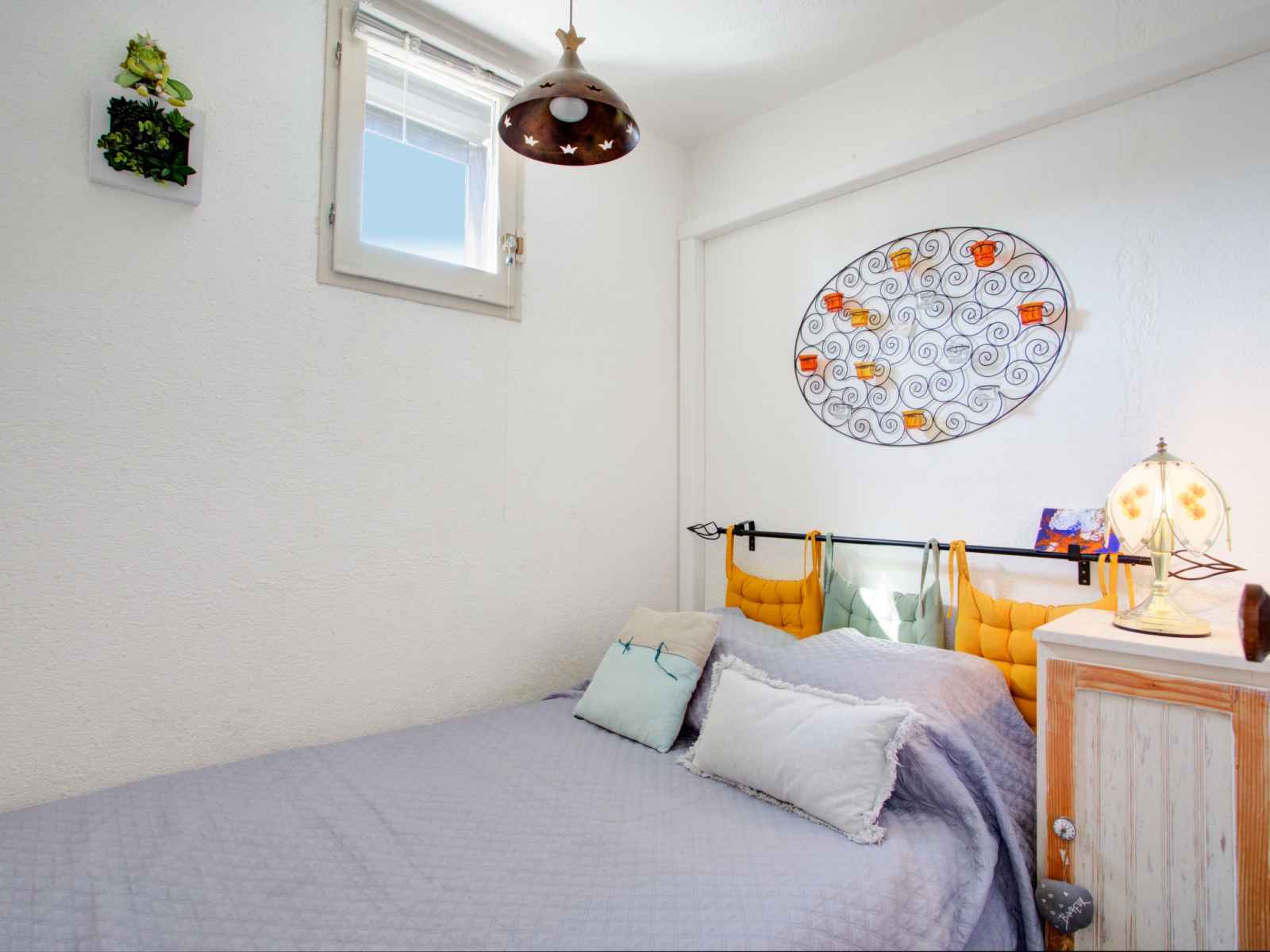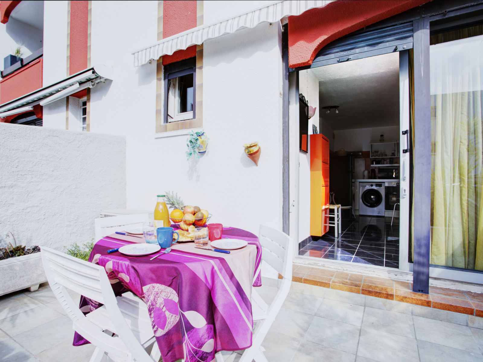 Apt 2 pièces 25 m2, au rez-de-chaussée. complètement rénové: séjour/salle à manger avec 1 divan-lit double (160 cm, longueur 190 cm), tv (écran plat), air-conditionné. sortie sur la terrasse. 1 petite chambre avec 1 grand-lit (120 cm, longueur 190 cm). coin cuisine (four, 4 plaques vitrocéramiques, grille-pain, bouilloire électrique,