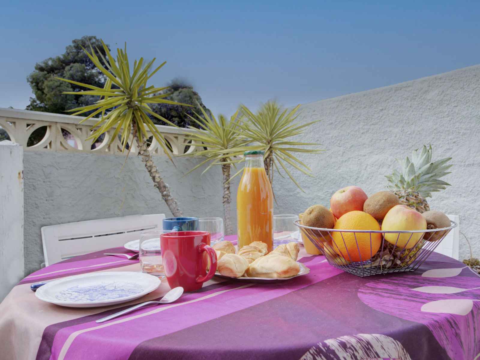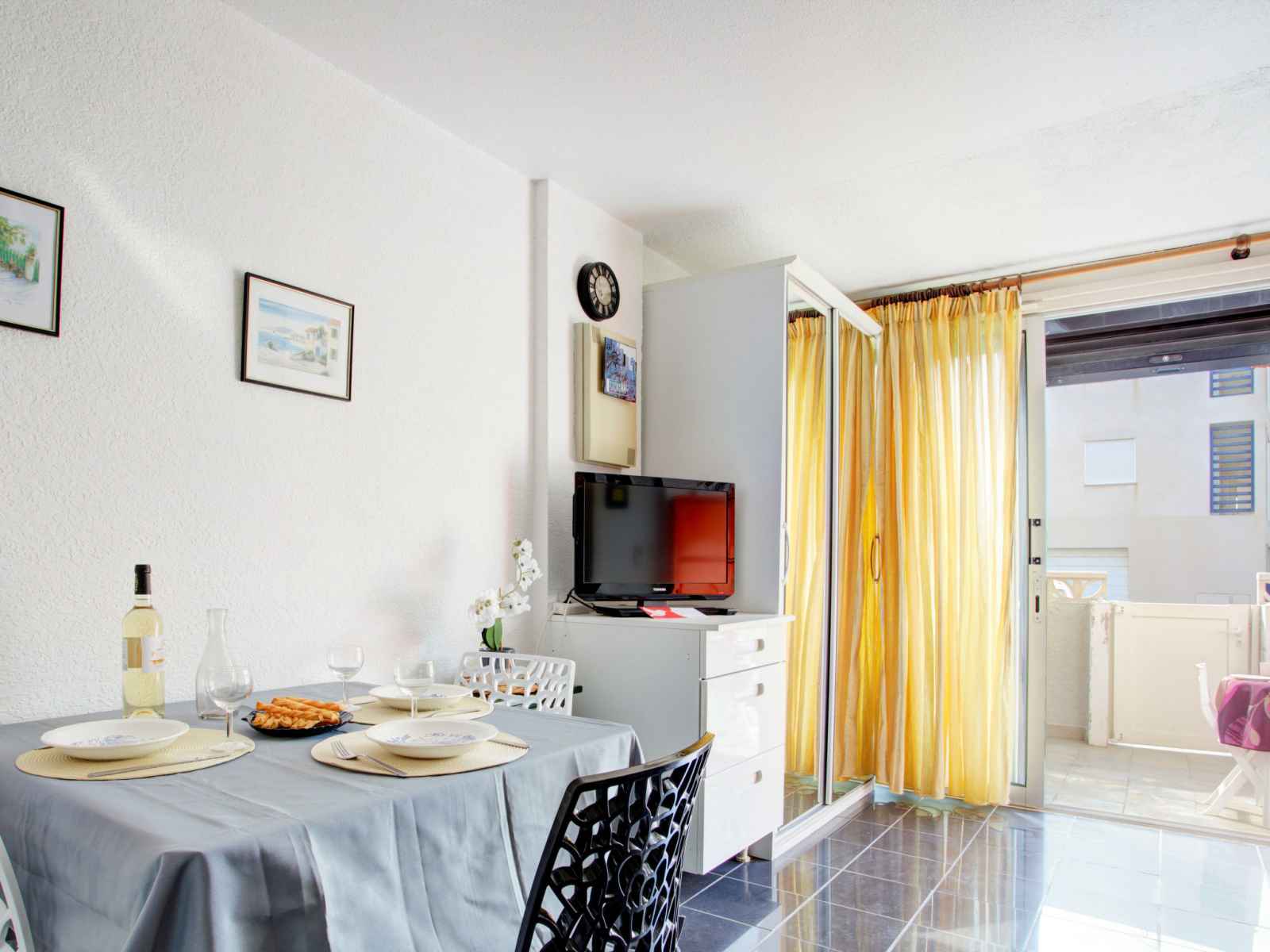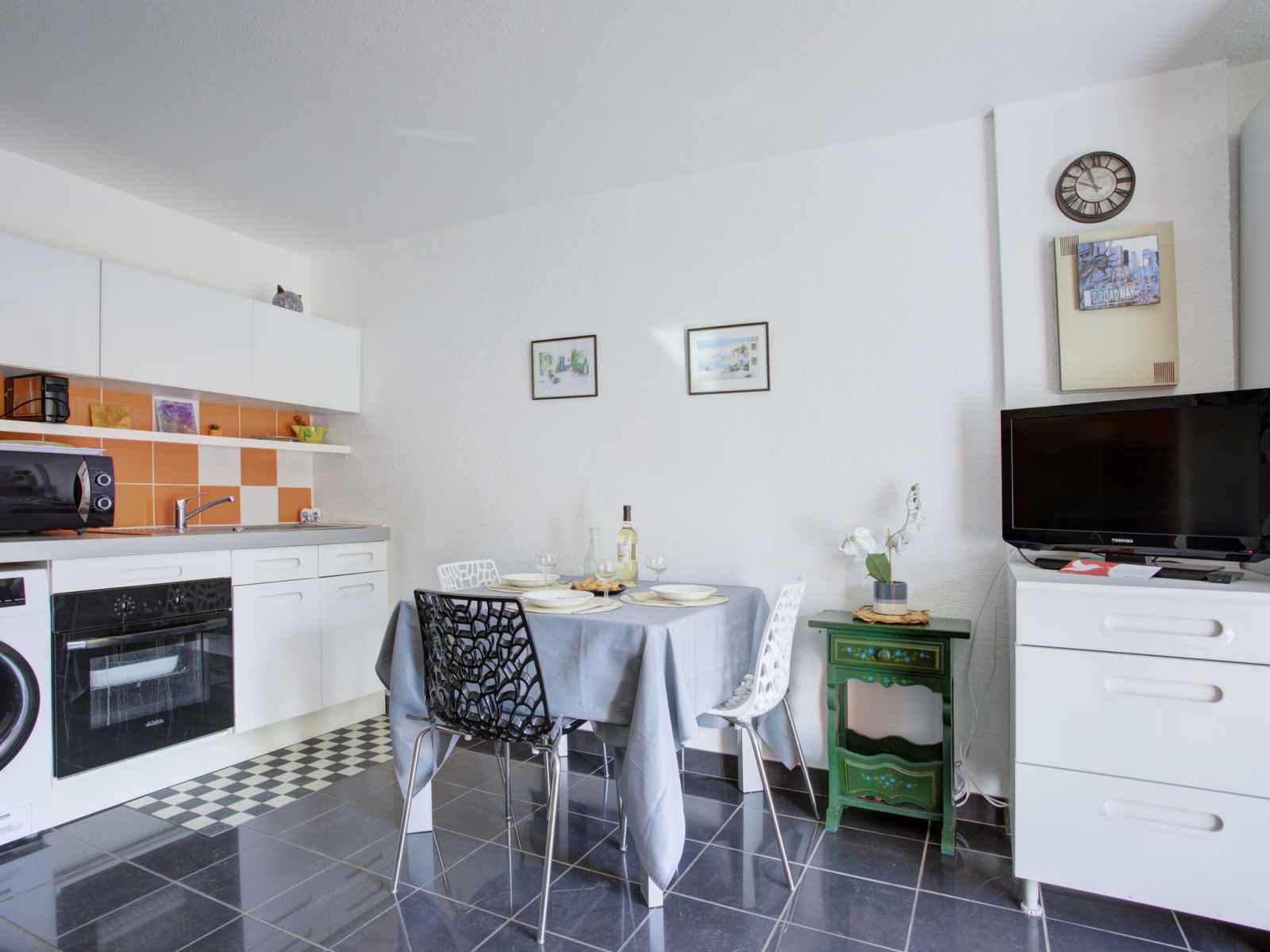 Apt 2 pièces 25 m2, au rez-de-chaussée. complètement rénové: séjour/salle à manger avec 1 divan-lit double (160 cm, longueur 190 cm), tv (écran plat), air-conditionné. sortie sur la terrasse. 1 petite chambre avec 1 grand-lit (120 cm, longueur 190 cm). coin cuisine (four, 4 plaques vitrocéramiques, grille-pain, bouilloire électrique,