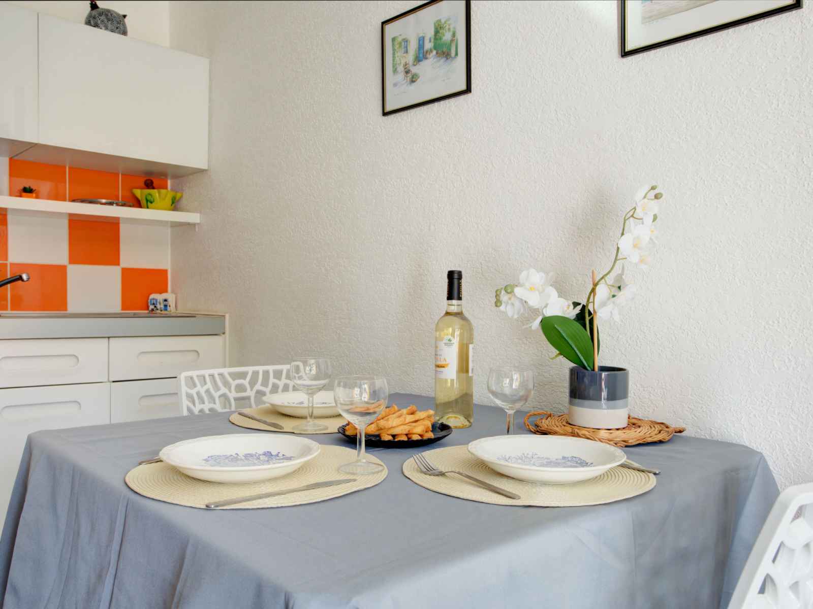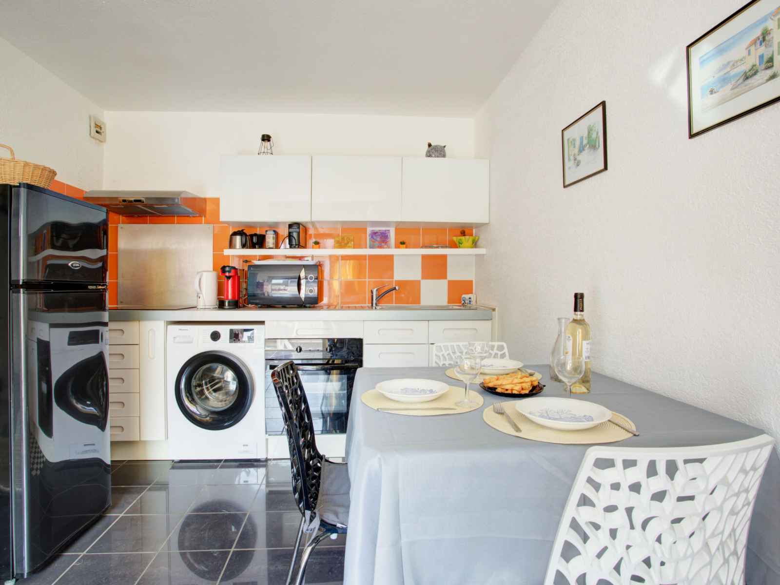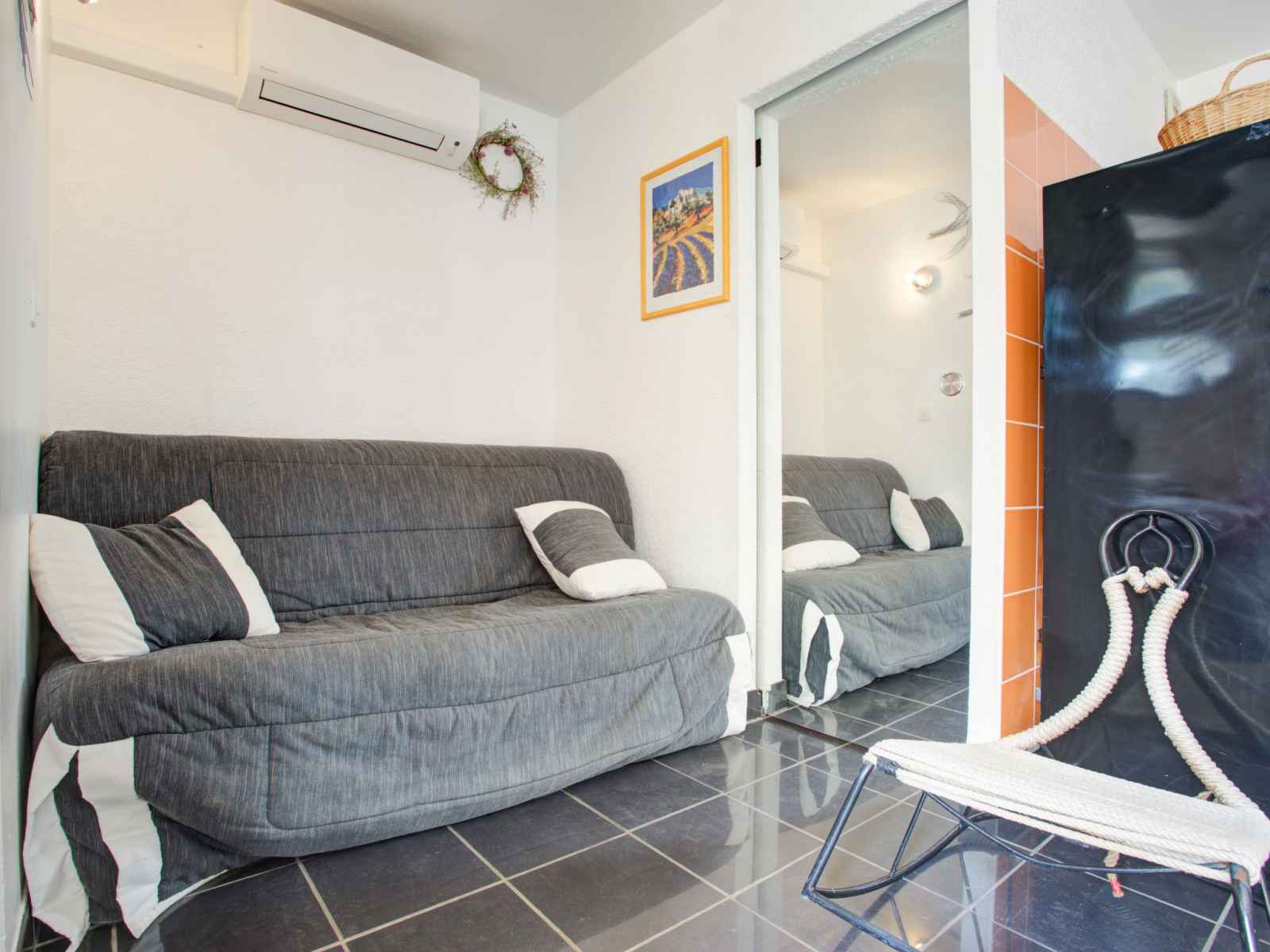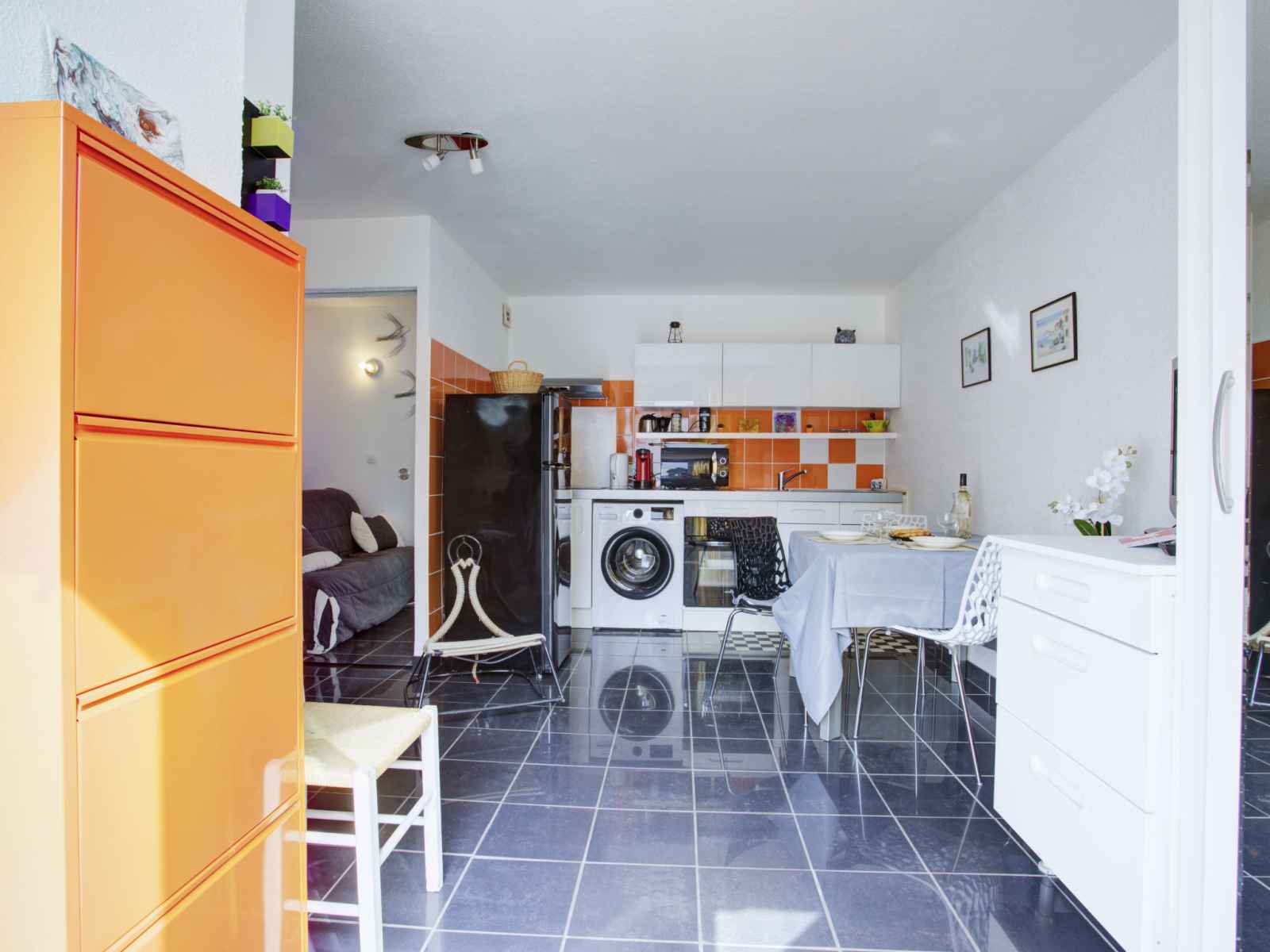 Apt 2 pièces 25 m2, au rez-de-chaussée. complètement rénové: séjour/salle à manger avec 1 divan-lit double (160 cm, longueur 190 cm), tv (écran plat), air-conditionné. sortie sur la terrasse. 1 petite chambre avec 1 grand-lit (120 cm, longueur 190 cm). coin cuisine (four, 4 plaques vitrocéramiques, grille-pain, bouilloire électrique,