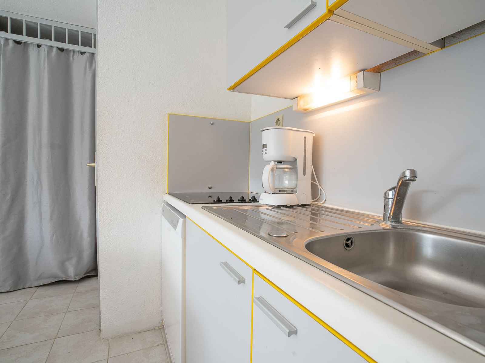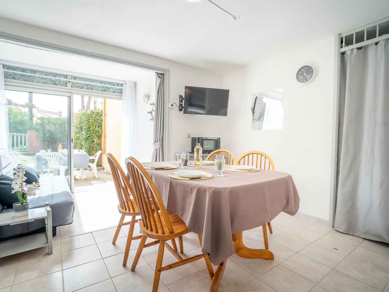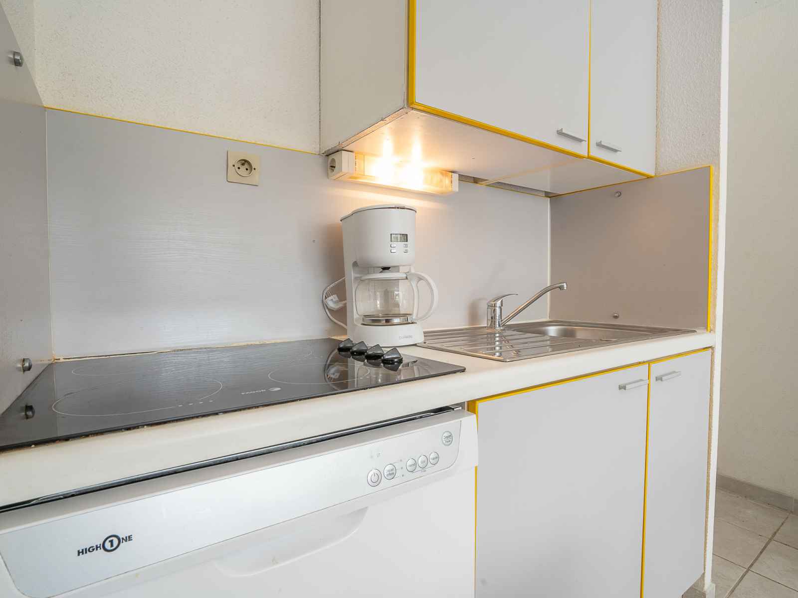 Apt 2 pièces 28 m2, au rez-de-chaussée. séjour/salle à manger avec tv (écran plat). sortie sur la terrasse. cabine avec 1 x 2 lits superposés (80 cm, longueur 190 cm). 1 chambre avec 1 grand-lit (140 cm, longueur 190 cm). coin cuisine (4 plaques de cuisson, four, lave-vaisselle, micro-ondes, congélateur, cafetière électrique). douche/wc.