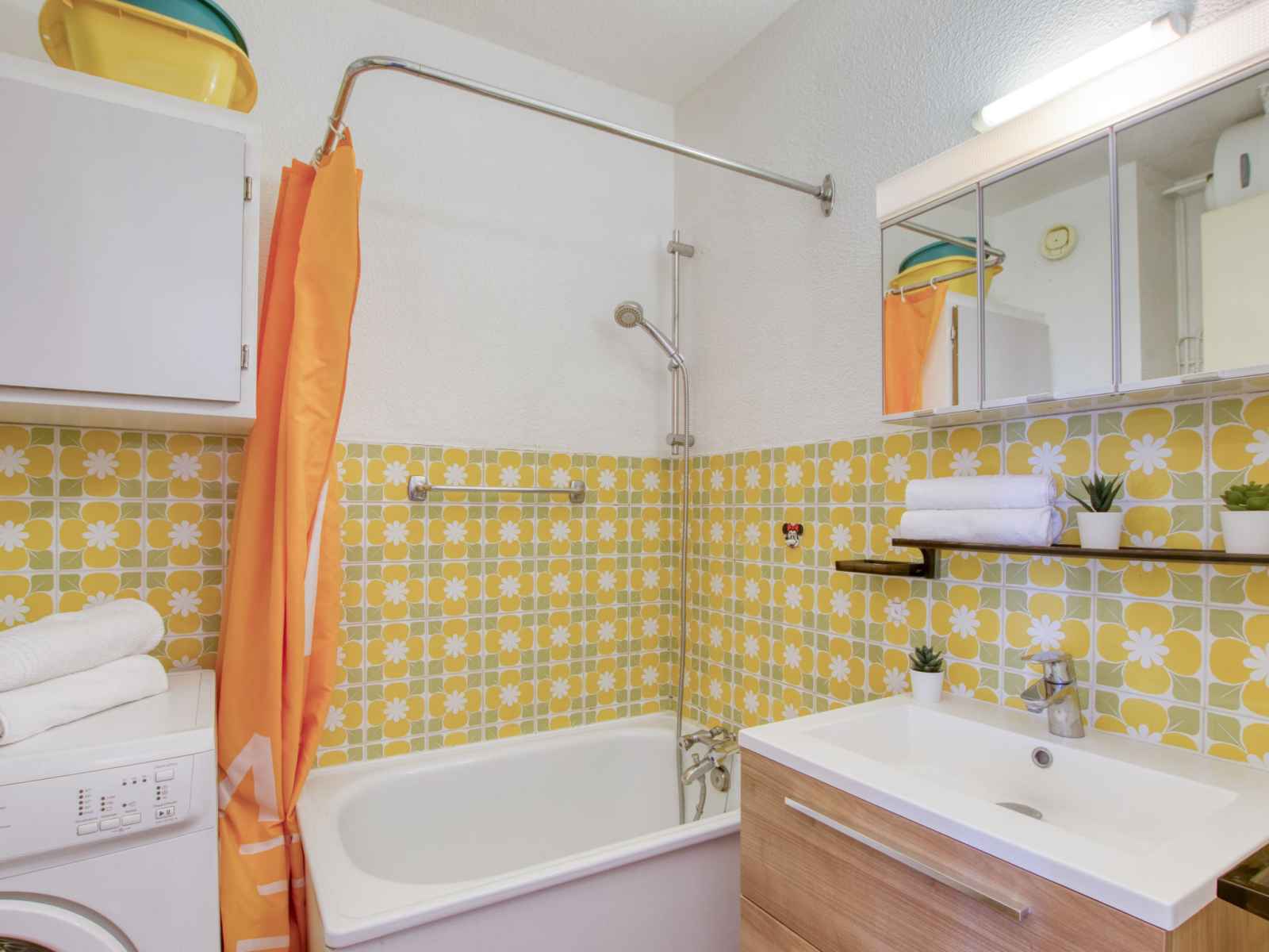 micro-ondes, cafetière électrique). Bain/WC. Chauffage électrique. Terrasse 9 m2, couverte, situation ouest. Meubles de terrasse. Belle vue sur la mer. A disposition: lave-linge, fer à repasser. Internet (Connexion WIFI, en sus). Place de parking No 574. Veuillez noter: maximum 1 animal/ chien de petite taille autorisé. TV seulement FR. Détecteur de fumée. A noter: la baignoire est de petite taille (longueur: 108 cm). 83112 000275 84