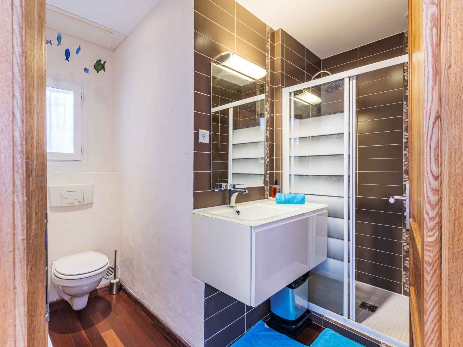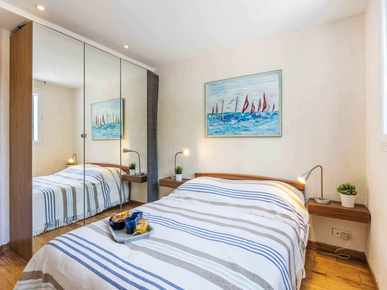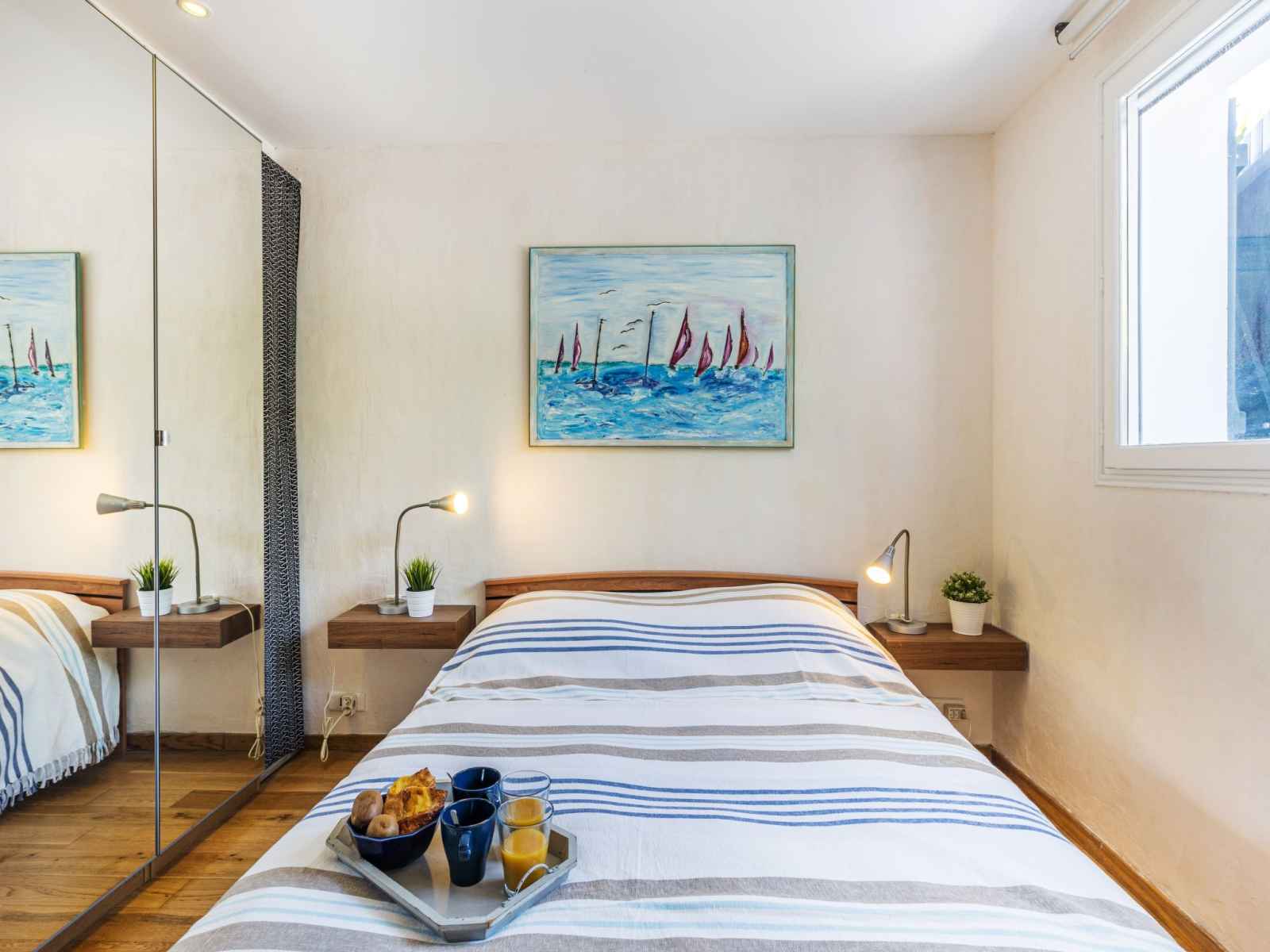 Apt 2 pièces 45 m2, au rez-de-chaussée. aménagement fonctionnel et agréable: séjour/salle à manger avec 1 divan-lit double (140 cm, longueur 190 cm), tv (écran plat), chaîne stéréo et air-conditionné. sortie sur la terrasse. 1 chambre avec 1 grand-lit (140 cm, longueur 190 cm), tv (écran plat). cuisine ouverte (four, 3 plaques à
