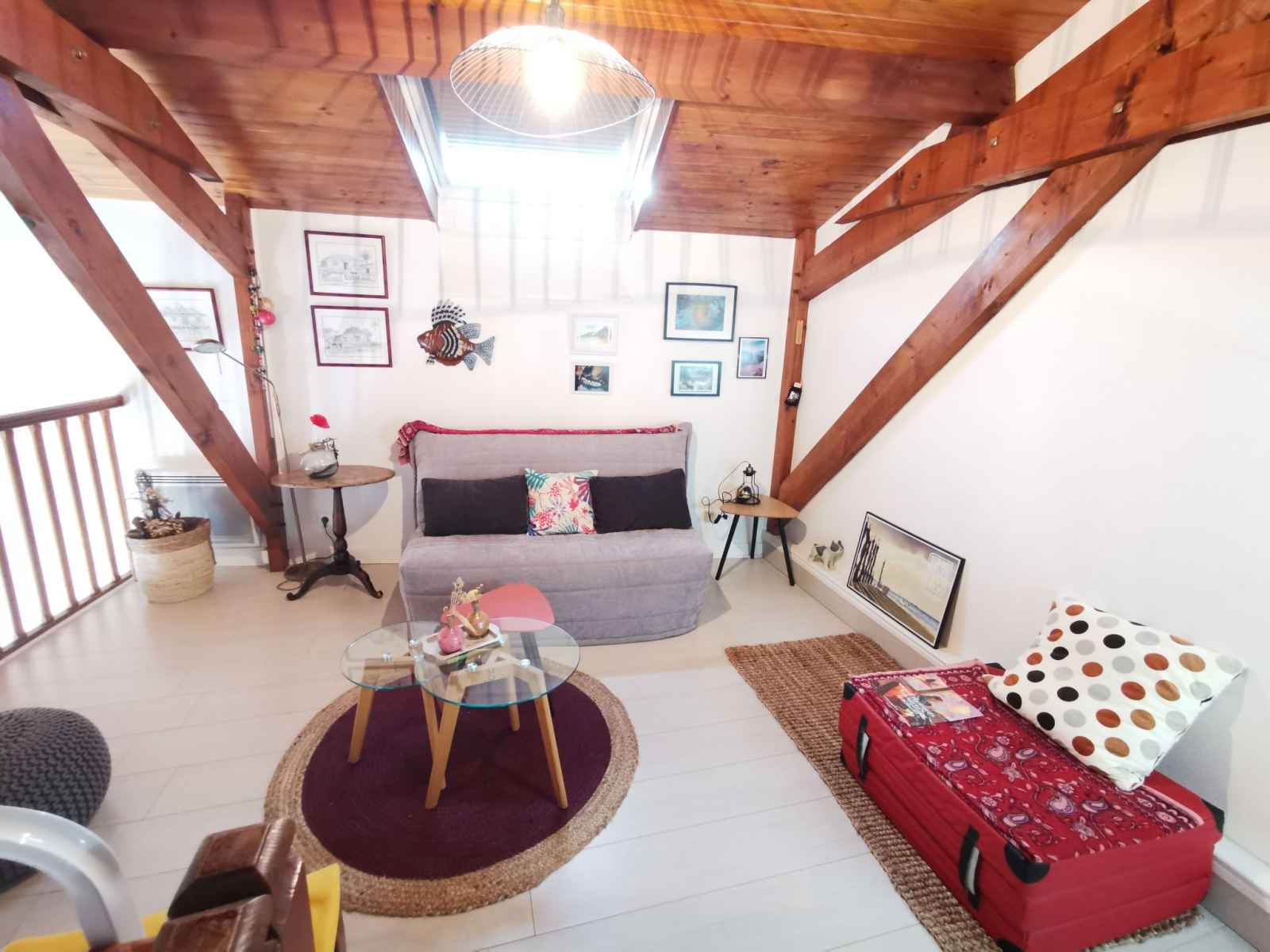"emeuraude", apt 2 pièces 62 m2 au 3ème étage, situation sud. aménagement agréable et de bon goût: séjour/salle à manger avec tv (écran plat). cuisine ouverte (four, 4 plaques à induction, micro-ondes, congélateur, cafetière électrique). wc séparé. À l'étage supérieur: galerie avec 1 divan-lit double (1 x 140 cm, longueur 190