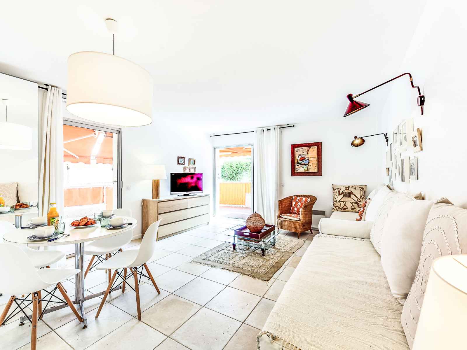 "résidence les patios 2", apt 2 pièces 50 m2 au 1er étage. rénové en 2017, aménagement agréable: séjour/salle à manger avec 2 lits (90 cm, longueur 190 cm), tv (écran plat), air-conditionné. sortie sur la terrasse. 1 chambre avec 1 lit double (2 x 80 cm, longueur 200 cm). sortie sur la terrasse. cuisine (lave-vaisselle, 4 plaques à