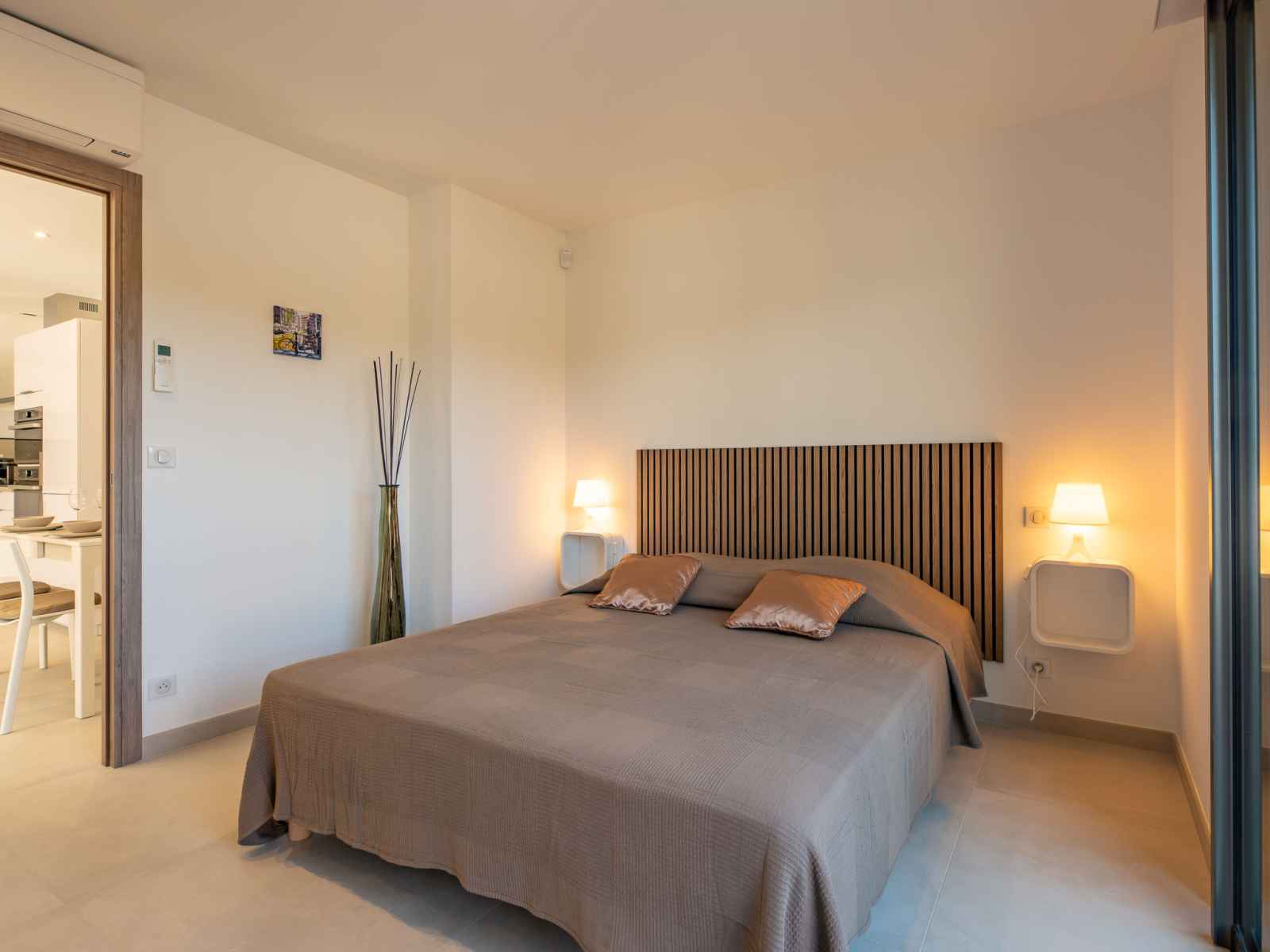 Cuisine ouverte (four, lave-vaisselle, 3 plaques à induction, grille-pain, bouilloire électrique, micro-ondes, congélateur, cafetière électrique). Douche, WC séparé, double vasque. Air-conditionné, chauffage à air chaud. Jardin 80 m2, situation est. Meubles de terrasse. A disposition: lave-linge, fer à repasser, sèche-cheveux. Internet (Connexion WIFI, gratuit). Place de parking. Veuillez noter: logement non-fumeur. Détecteur de fumée. Annonce d'un professionnel (art 155, IV du CGI) 83115005176SB