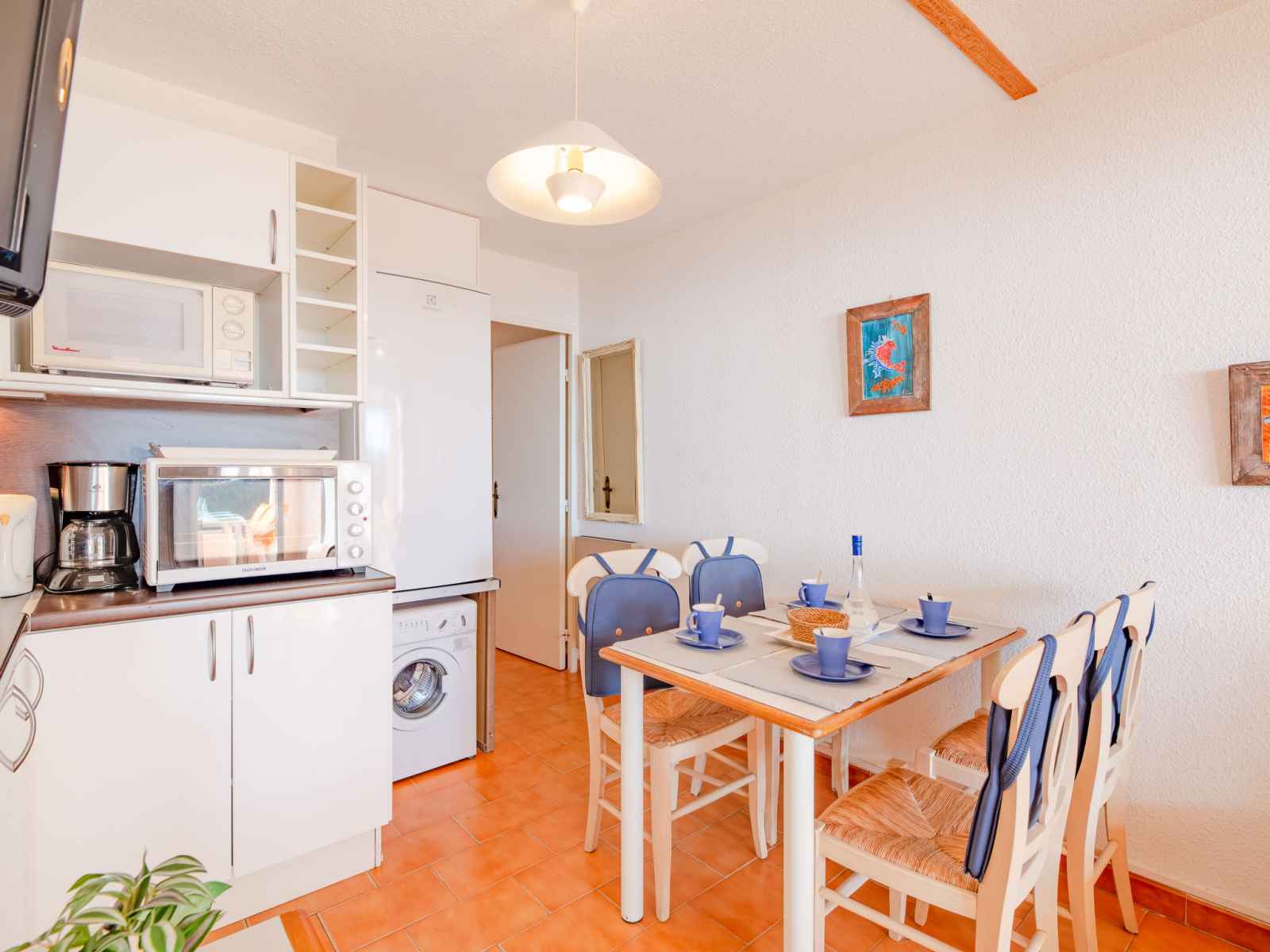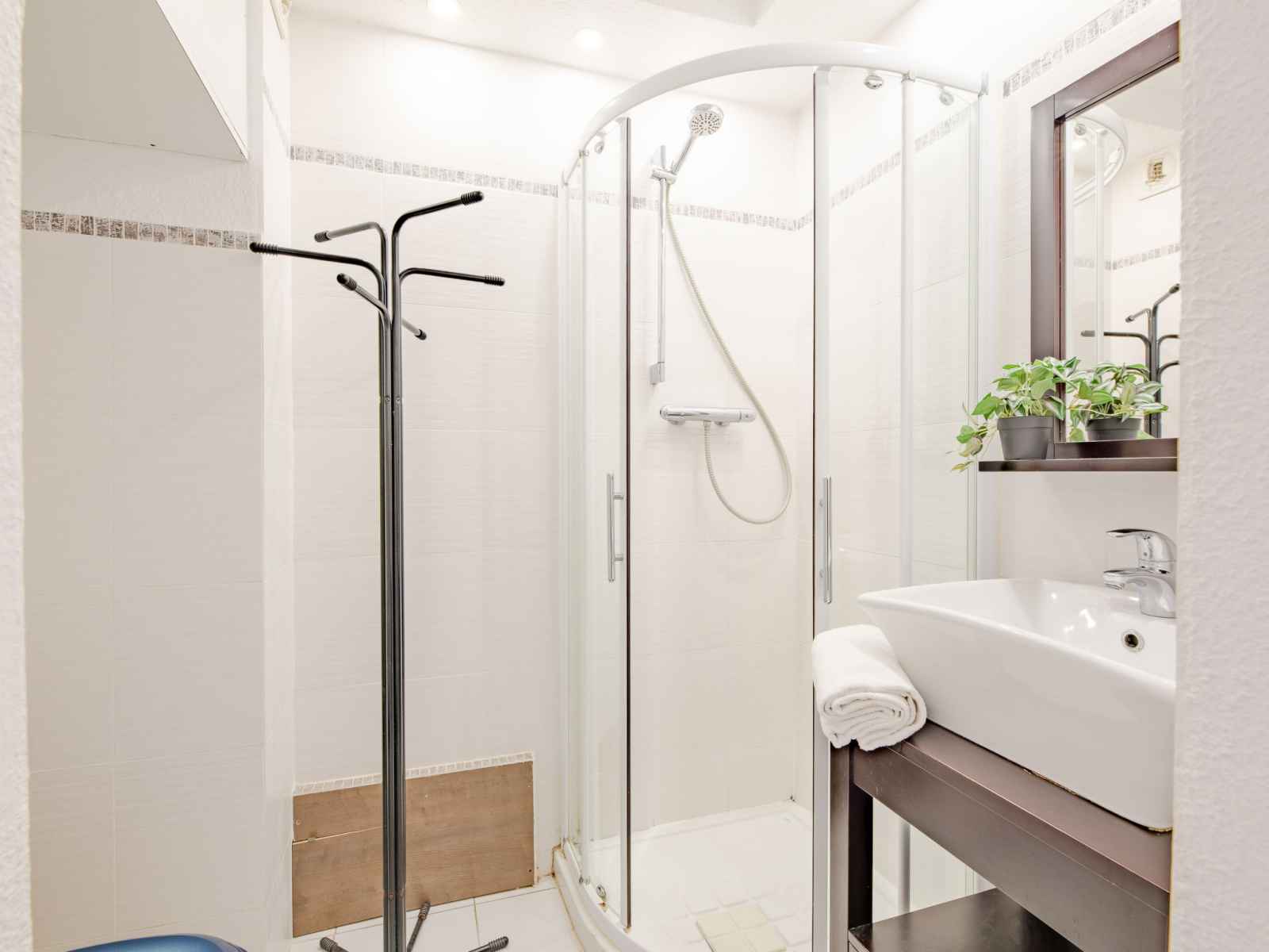Apt 2 pièces 28 m2, au rez-de-chaussée. aménagement simple: séjour/salle à manger avec 2 lits (80 cm, longueur 190 cm), tv. 1 chambre avec 1 lit (140 cm, longueur 190 cm). coin cuisine (2 plaques de cuisson, mini-four, lave-vaisselle, grille-pain, bouilloire électrique, micro-ondes, cafetière électrique). douche/wc. chauffage électrique.