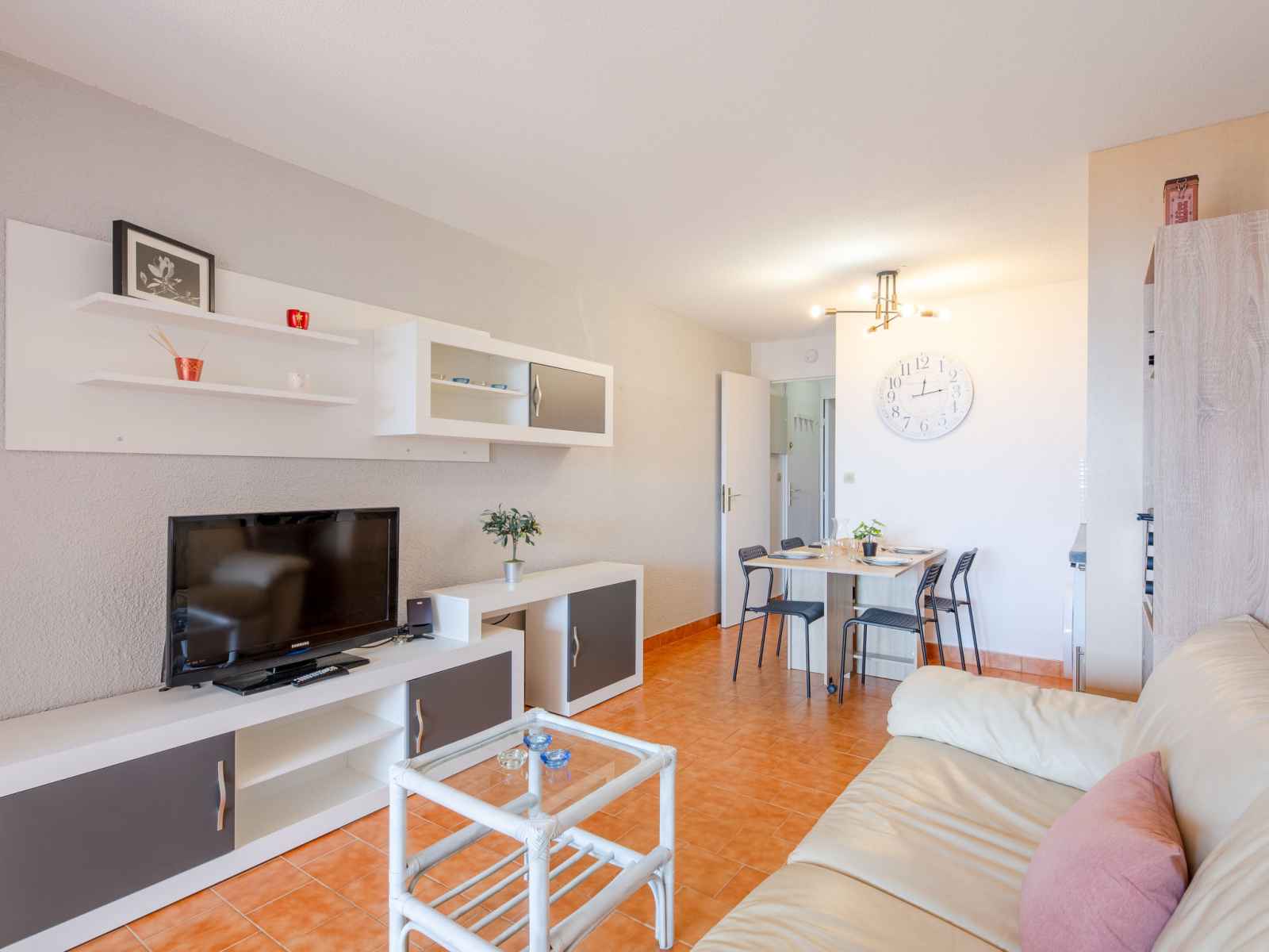Apt 2 pièces 30 m2, au rez-de-chaussée, situation sud. aménagement plaisant: séjour/salle à manger avec 1 divan-lit double (1 x 140 cm, longueur 190 cm), tv (écran plat), air-conditionné. sortie sur la terrasse. 1 chambre avec 1 grand-lit (1 x 140 cm, longueur 190 cm). cuisine ouverte (four, 4 plaques vitrocéramiques, grille-pain,