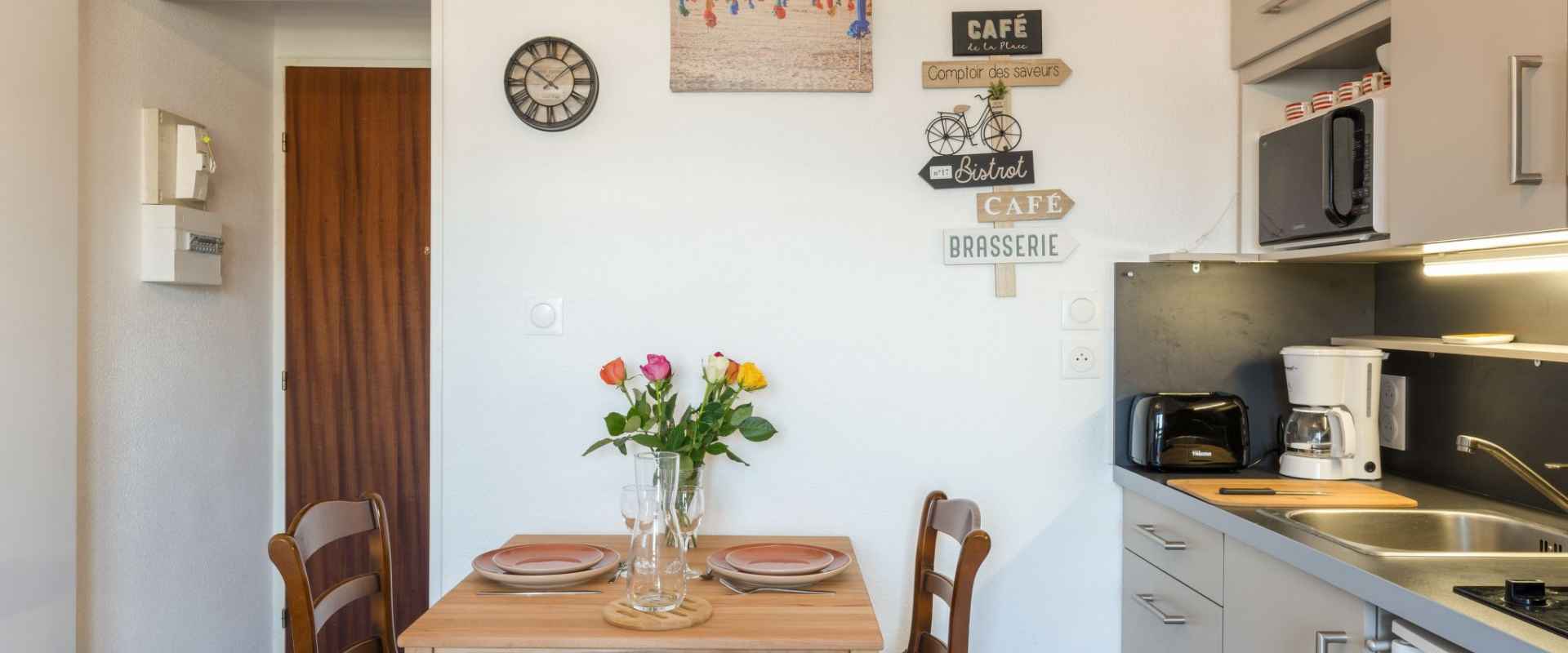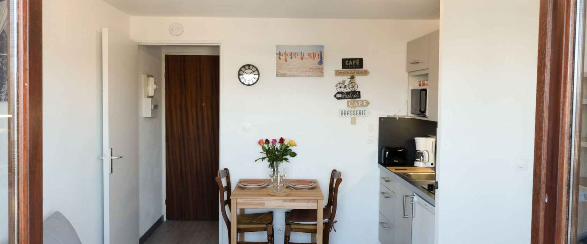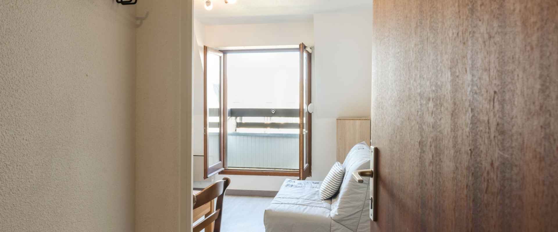 Apt 2 pièces 20 m2 au 5ème étage, situation nord. séjour/salle à manger avec tv (écran plat). 1 chambre avec 1 grand-lit (140 cm, longueur 190 cm), bain/wc. coin cuisine (2 plaques vitrocéramiques, grille-pain, bouilloire électrique, micro-ondes, cafetière électrique). chauffage électrique, chauffe eau. petit balcon 1 m2, situation