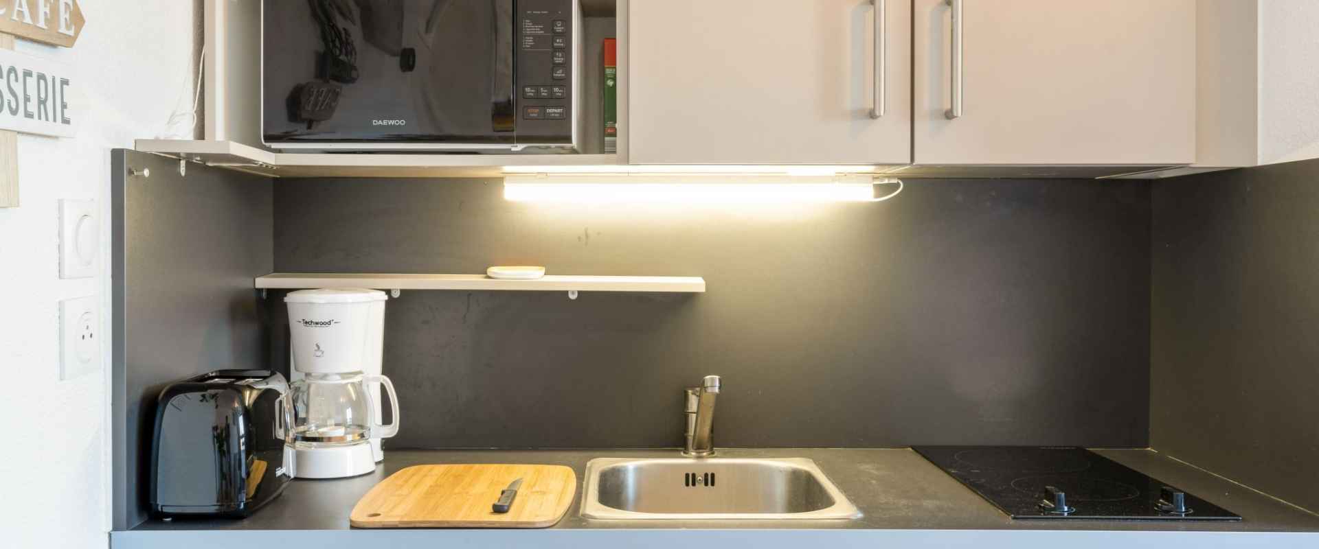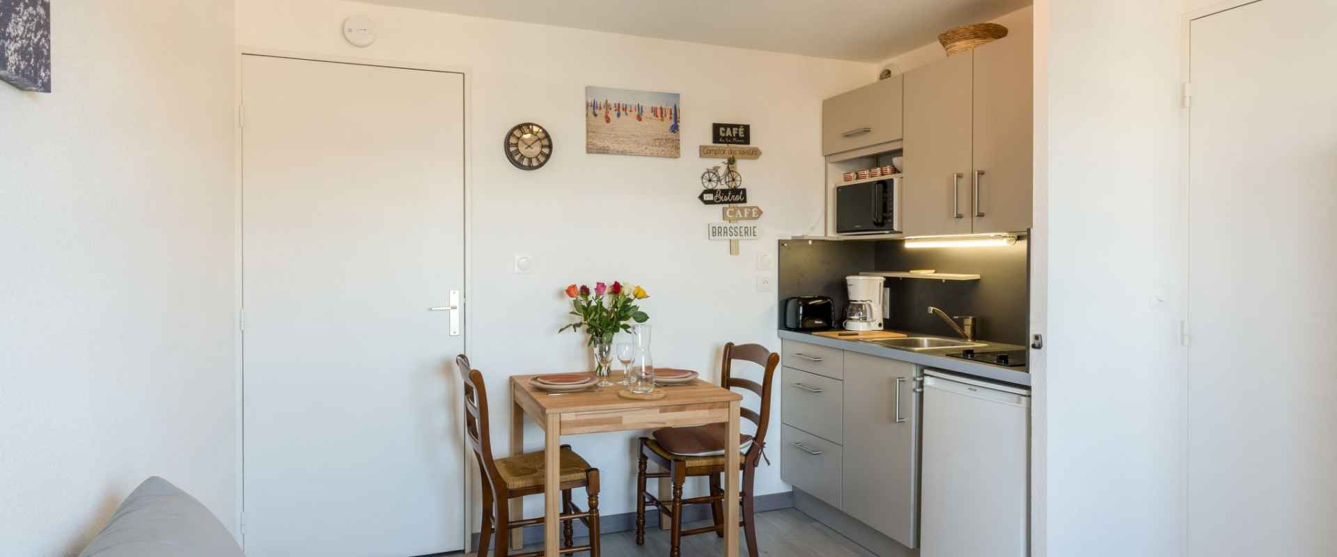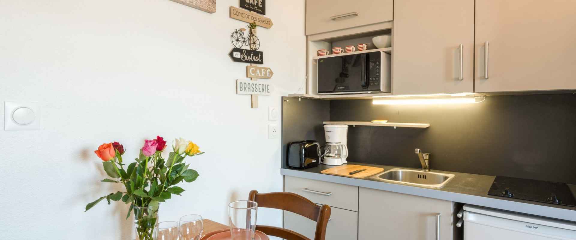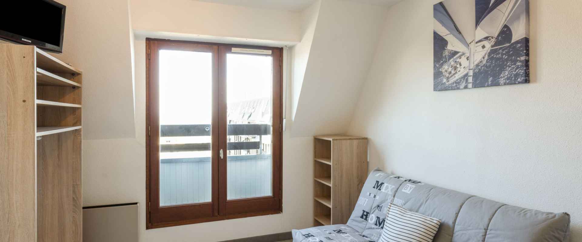 Apt 2 pièces 20 m2 au 5ème étage, situation nord. séjour/salle à manger avec tv (écran plat). 1 chambre avec 1 grand-lit (140 cm, longueur 190 cm), bain/wc. coin cuisine (2 plaques vitrocéramiques, grille-pain, bouilloire électrique, micro-ondes, cafetière électrique). chauffage électrique, chauffe eau. petit balcon 1 m2, situation