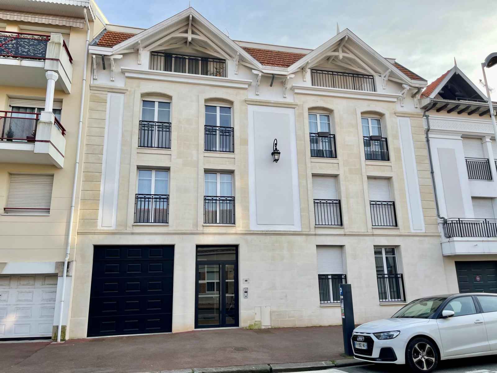 Arcachon: belle résidence "le 48", de 4 étages, année de construction 2021. excellente situation: centrale mais tranquille, à 350 m de la mer, à 350 m de la plage, sur une route principale. infrastructures de la résidence: ascenseur, réduit pour bicyclettes. magasins 150 m, magasin d'alimentation, supermarché 120 m, centre commercial 3.6