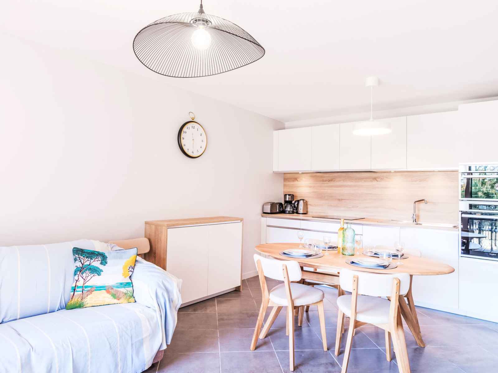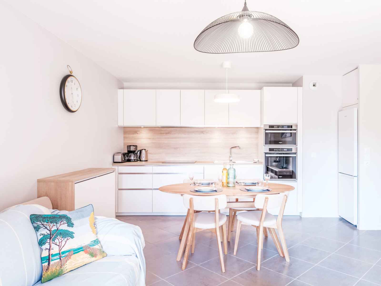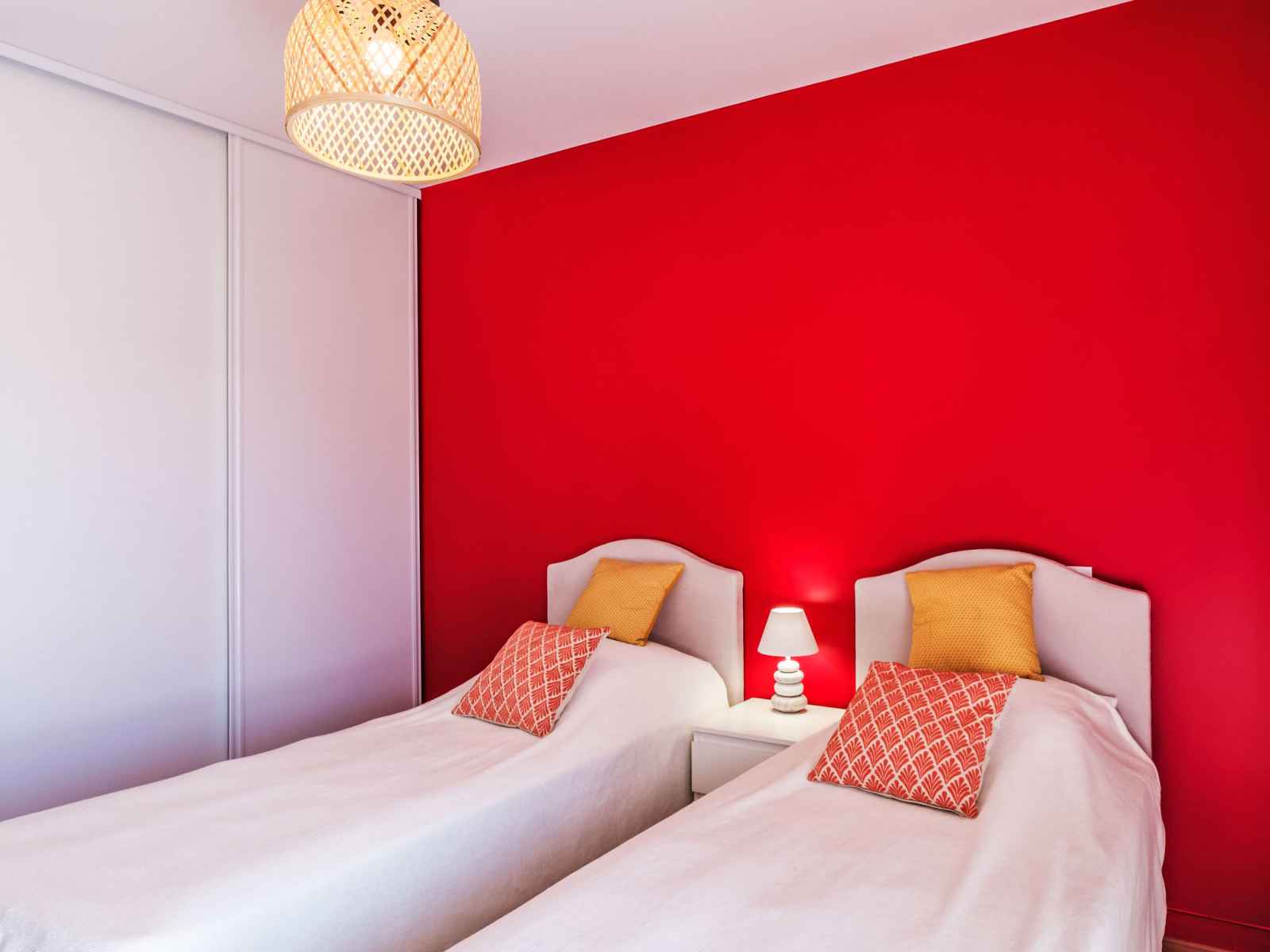 Apt 3 pièces 61 m2 au 1er étage. aménagement agréable et de bon goût: séjour/salle à manger avec 1 divan-lit double (1 x 140 cm, longueur 190 cm), tv (écran plat). sortie sur la terrasse. 1 chambre avec 1 grand-lit (1 x 140 cm, longueur 190 cm). 1 chambre avec 2 lits (80 cm, longueur 190 cm). cuisine ouverte (four, lave-vaisselle, 3