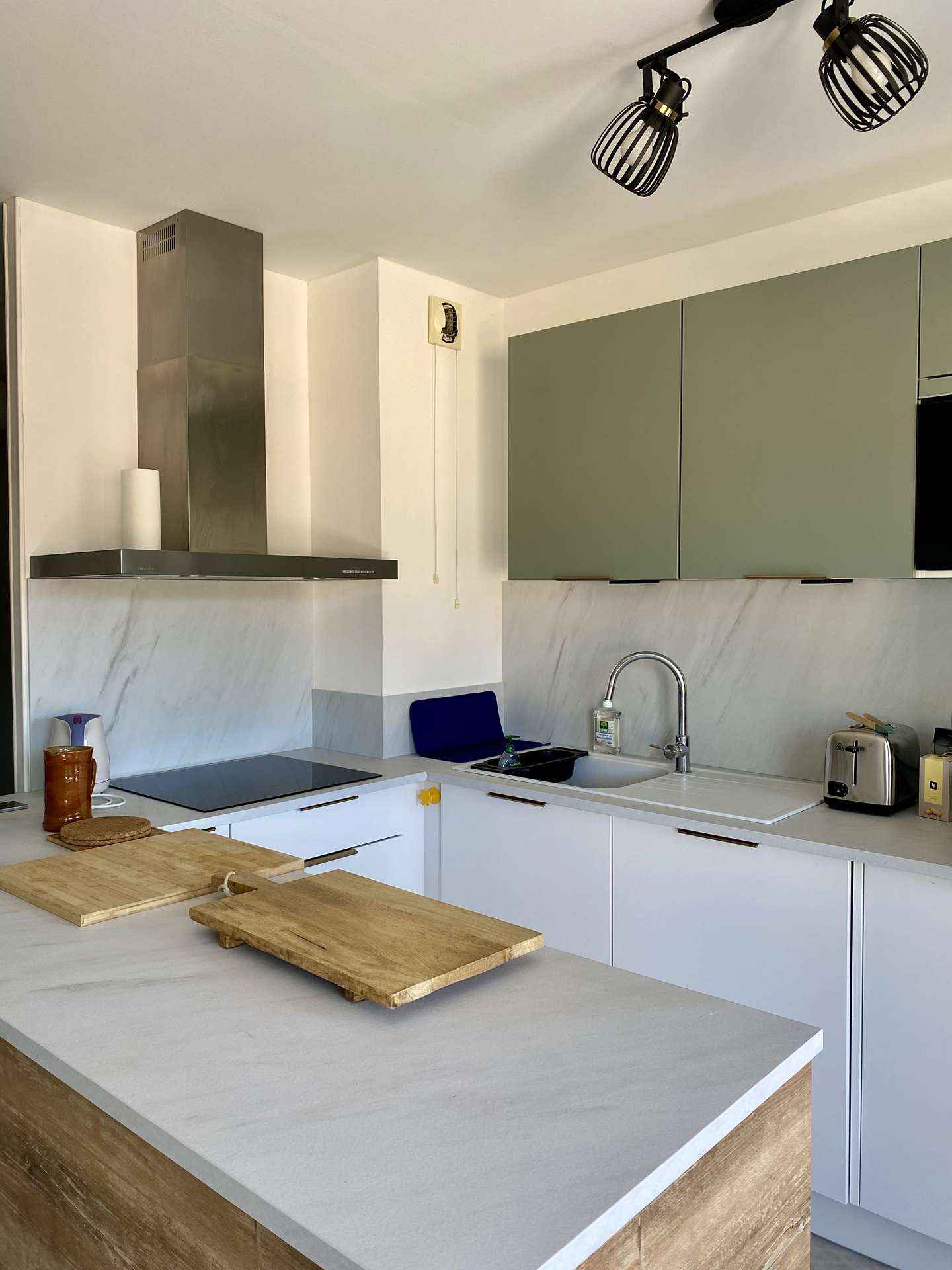 entièrement équipée : four, micro-ondes, plaques de cuisson, lave-vaisselle, lave linge séchant, réfrigérateur, cafetière, nespresso… tout est prévu pour que vous vous sentiez comme chez vous.