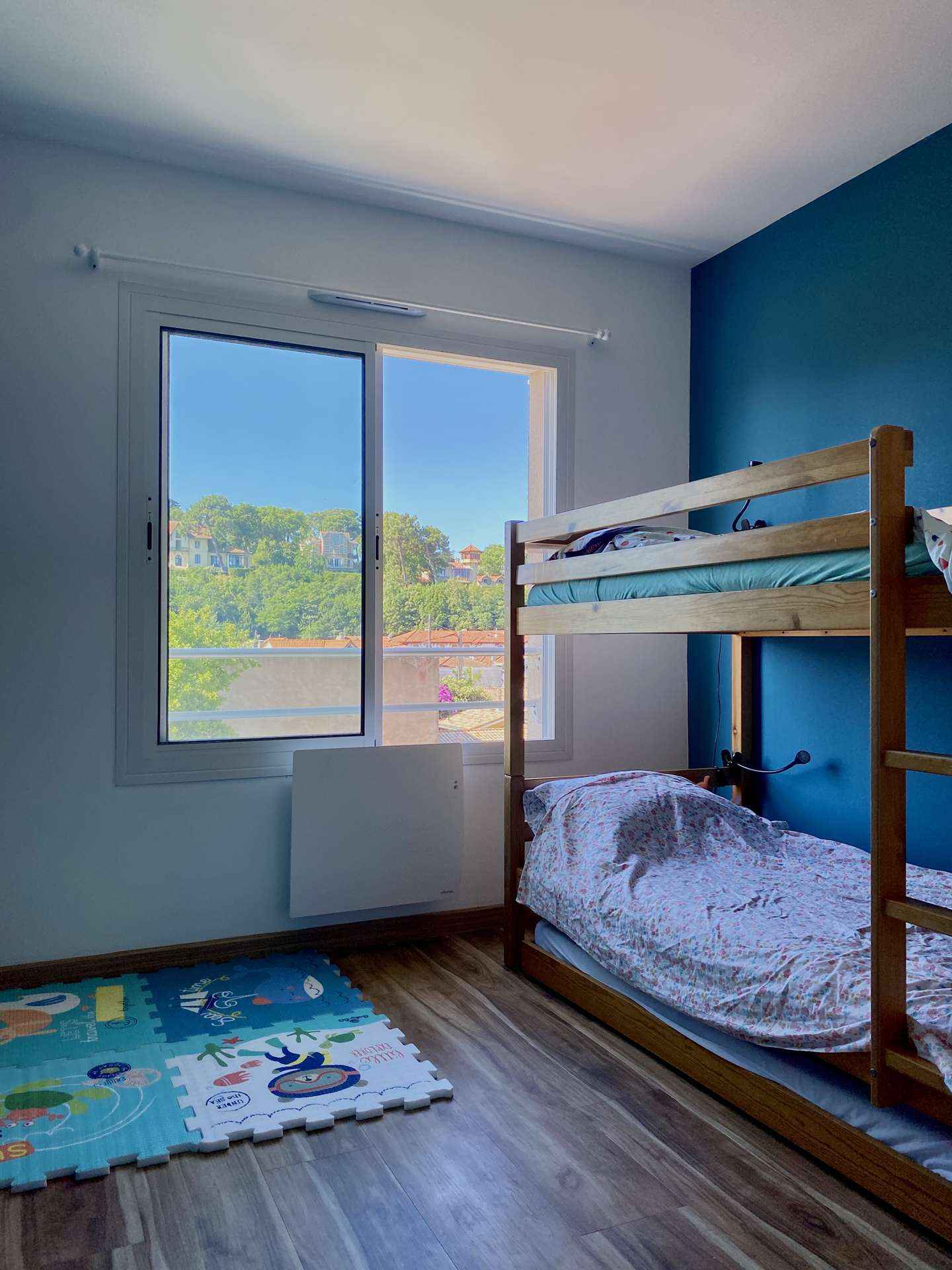 Une chambre enfants avec un lit superposé (90 cm) et de nombreux rangements idéale pour accueillir deux enfants ou adolescents en toute tranquillité.