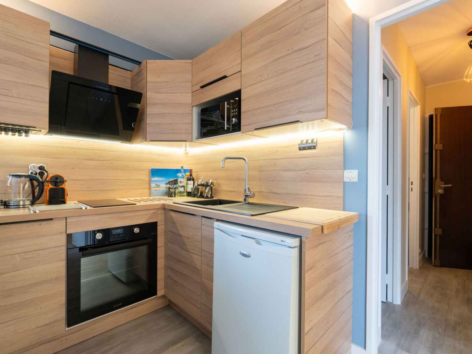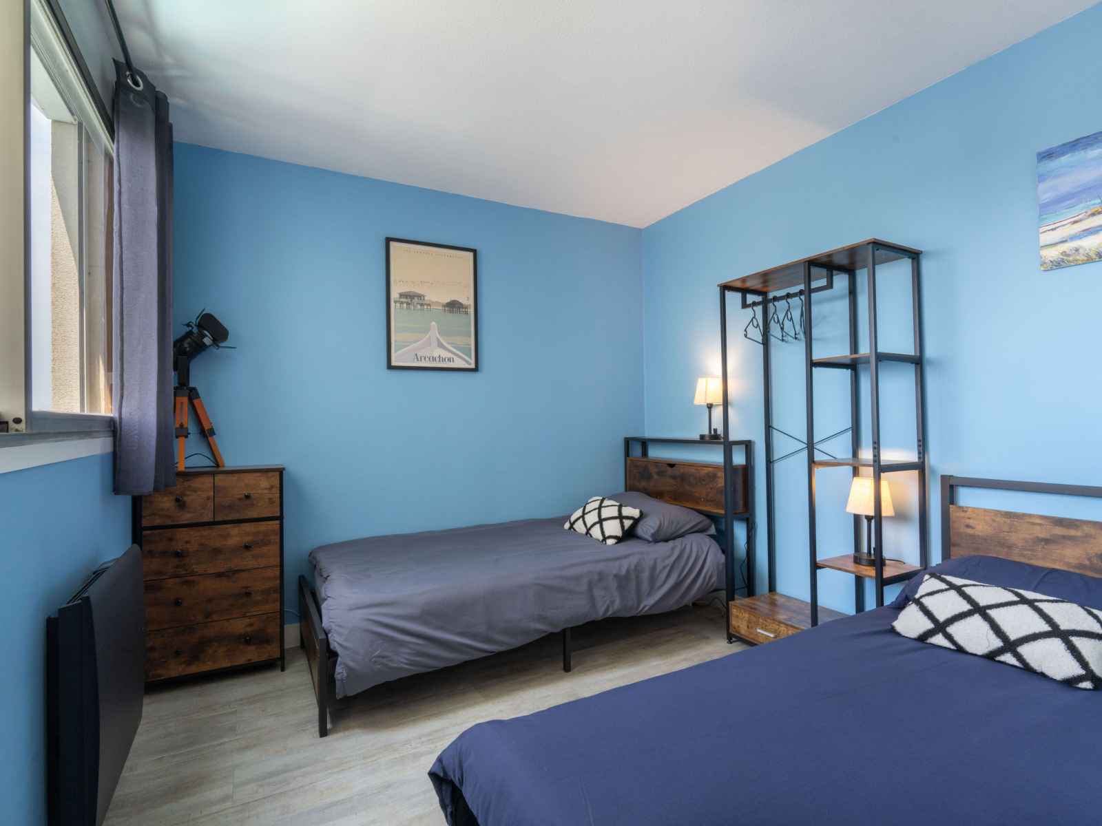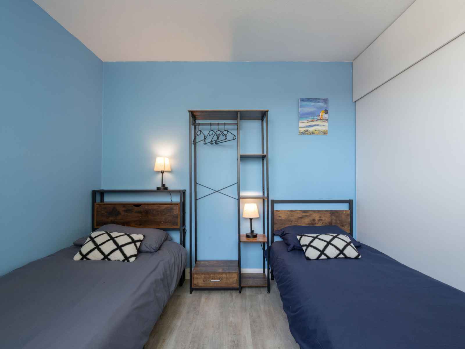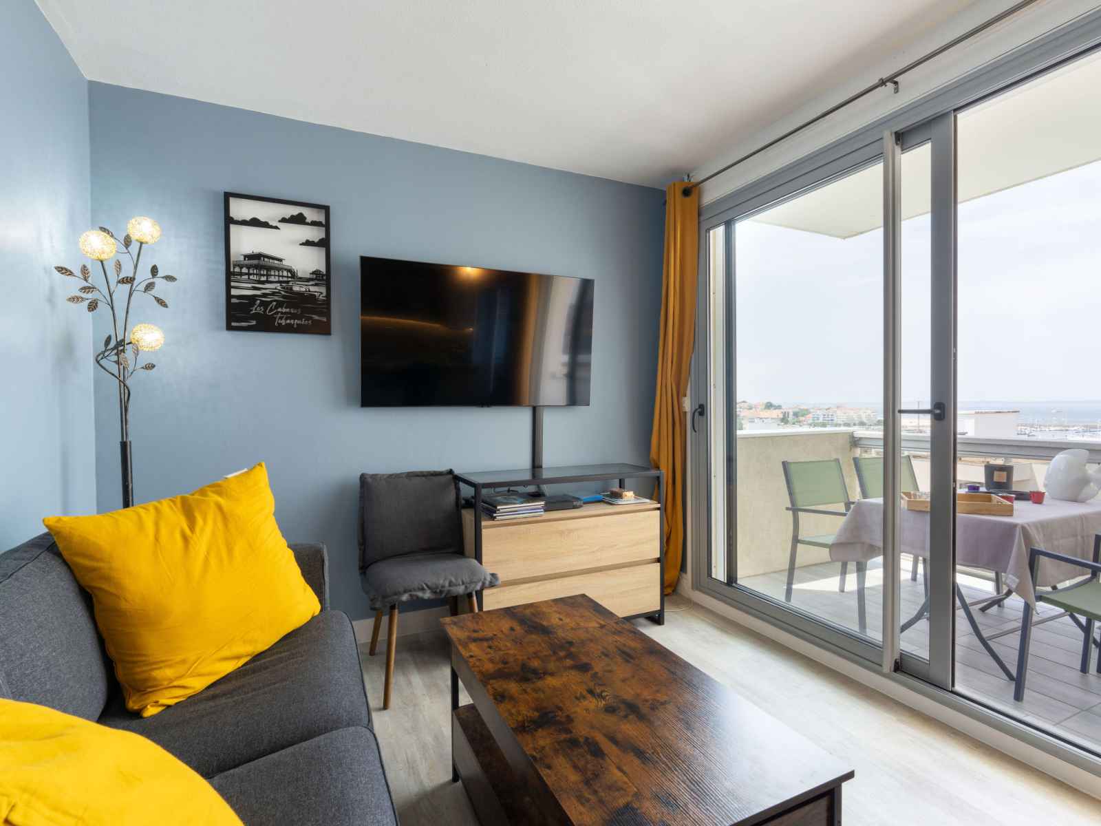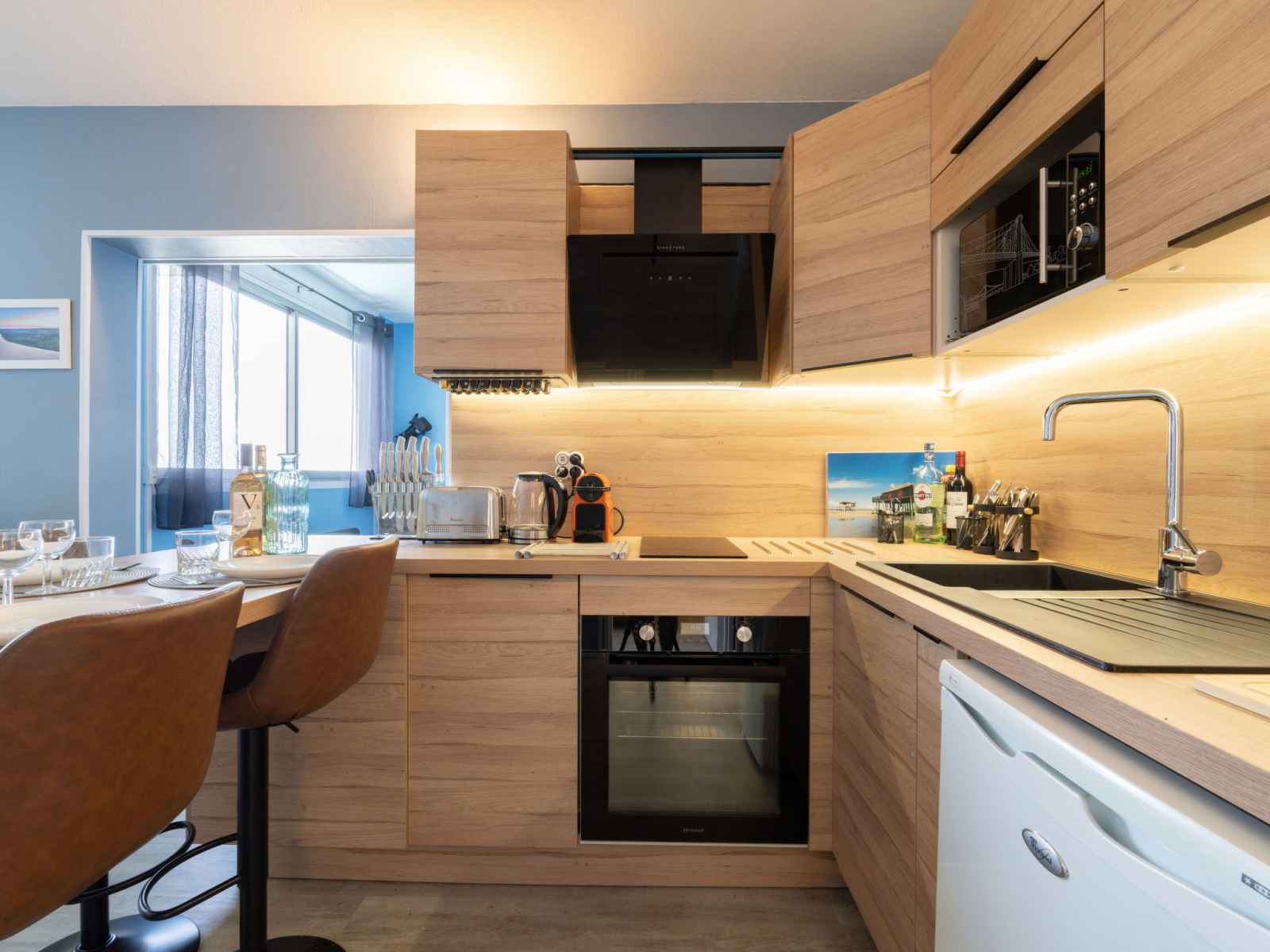 Apt 3 pièces 45 m2 au 9ème étage. aménagement agréable et de bon goût: séjour/salle à manger avec tv (écran plat). sortie sur le balcon. 1 chambre avec 1 grand-lit (1 x 140 cm, longueur 190 cm). 1 chambre avec 2 lits (90 cm, longueur 190 cm). cuisine ouverte (four, lave-vaisselle, 2 plaques à induction, grille-pain, bouilloire