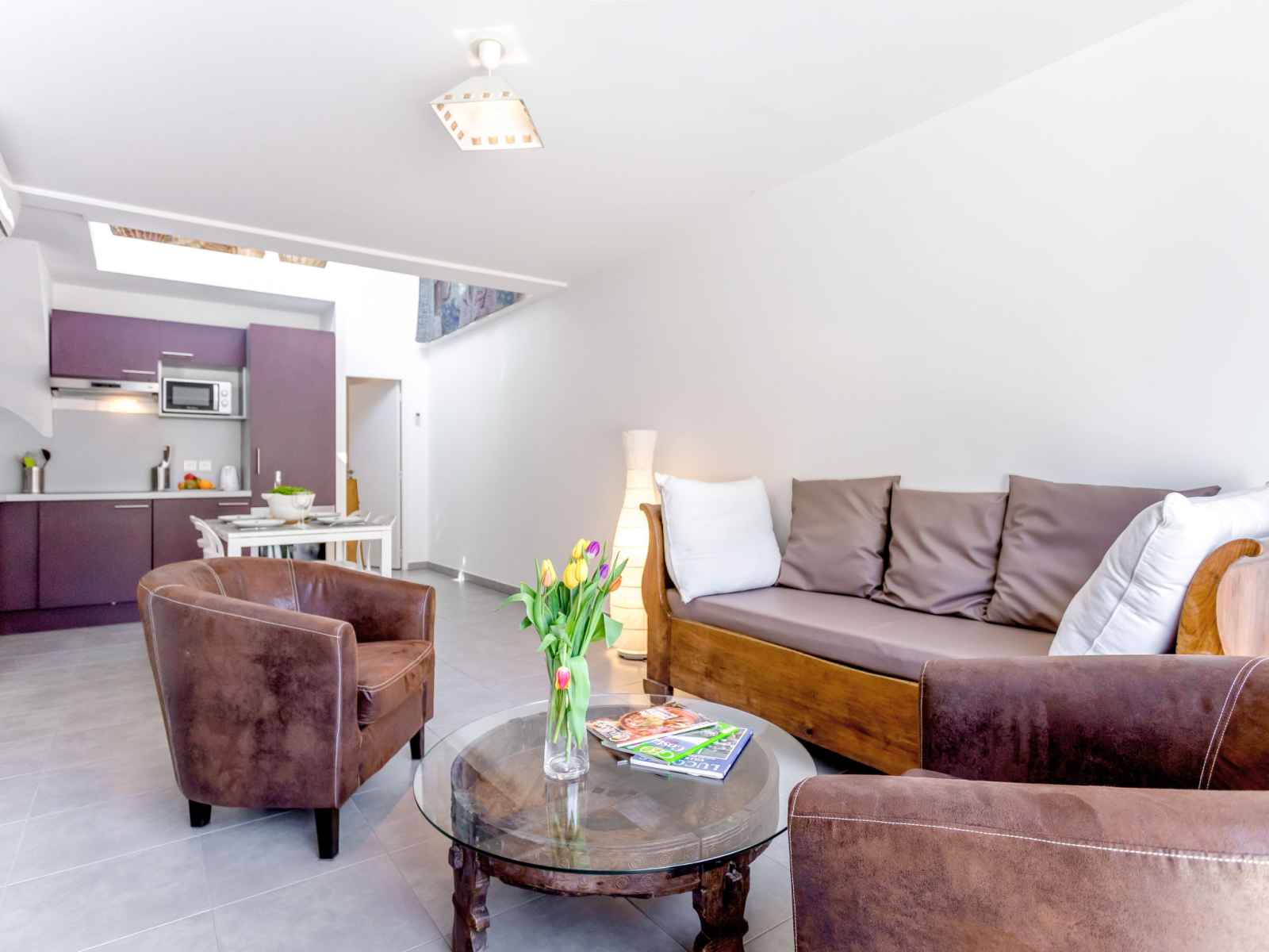 plaques vitrocéramiques, grille-pain, bouilloire électrique, micro-ondes, cafetière électrique). Douche, WC séparé. Chauffage électrique, air-conditionné. Balcon, terrasse 29 m2. Mobilier de balcon, chaises longues (2). A disposition: lave-linge, chaise haute pour enfant, lit bébé. Internet (Connexion WIFI, gratuit). Place de parking, garage sur le terrain. Veuillez noter: logement non-fumeur.