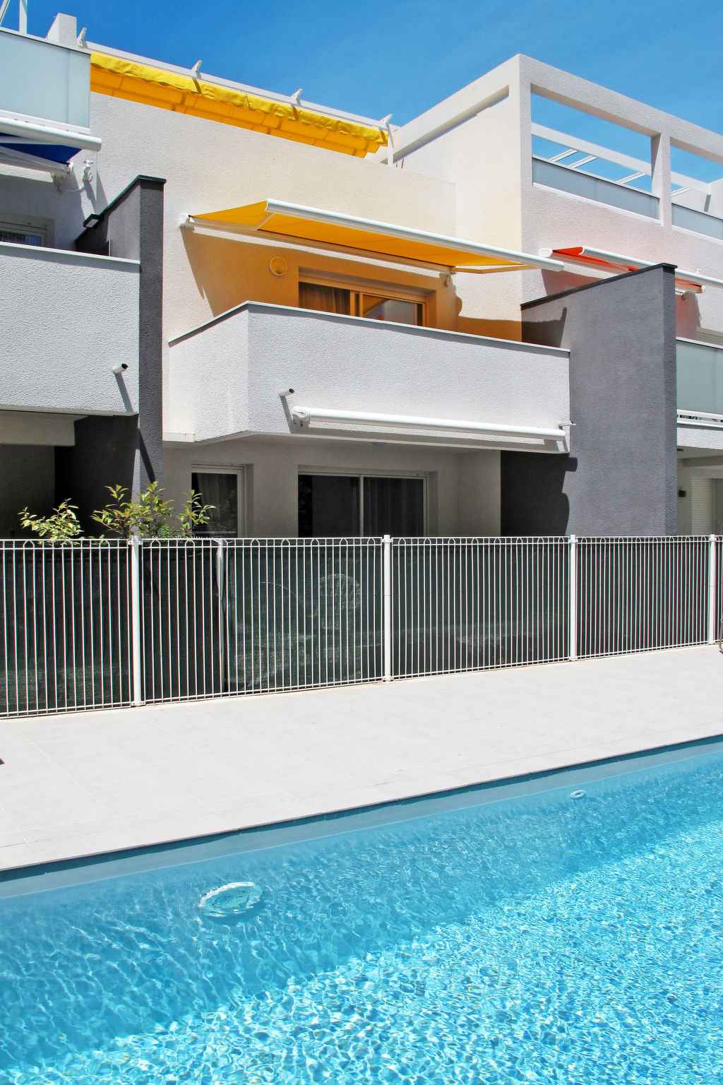 Belle, petite résidence "les pins parasols", de 3 étages, année de construction 2015. 8 appartements dans la résidence. au centre, à 600 m du centre d'argelès-plage, à 24 km du centre de perpignan, situation centrale, à 250 m de la mer. en commun: terrain avec pelouse, piscine cloturée (8 x 3 m, profondeur 140 cm, disponibilité