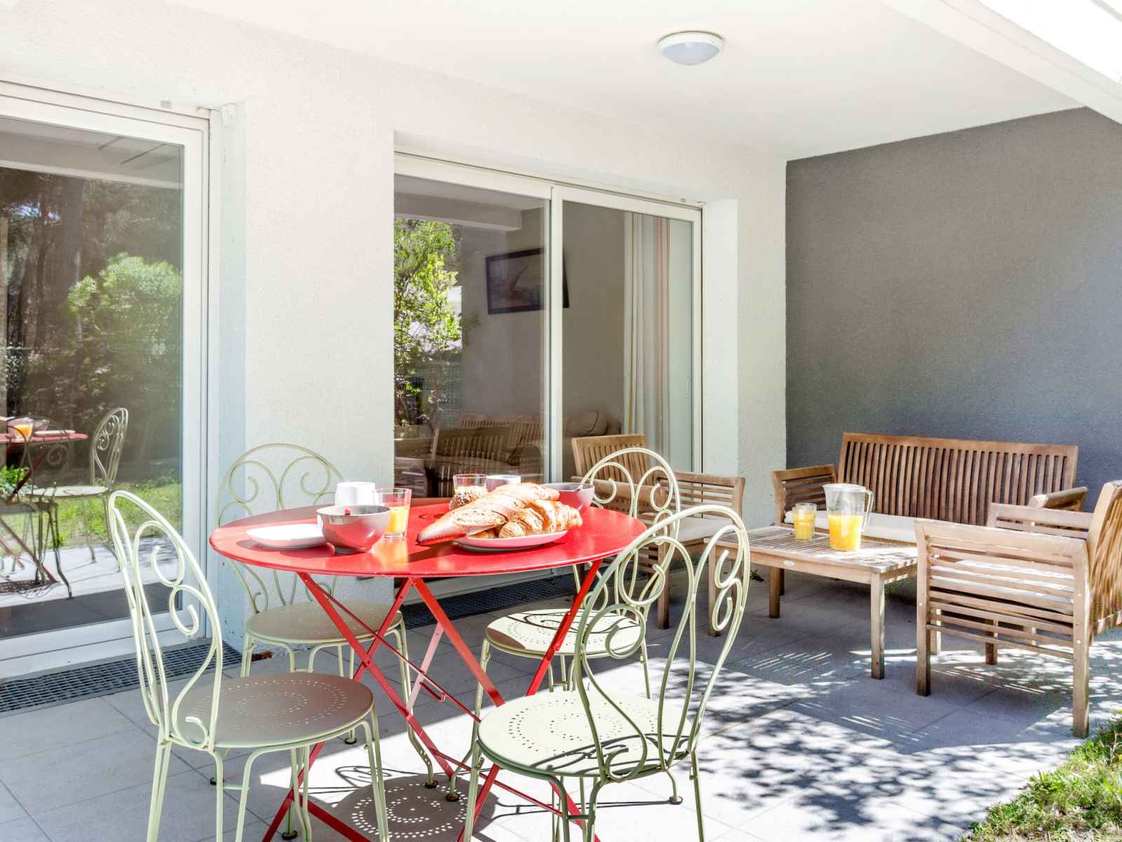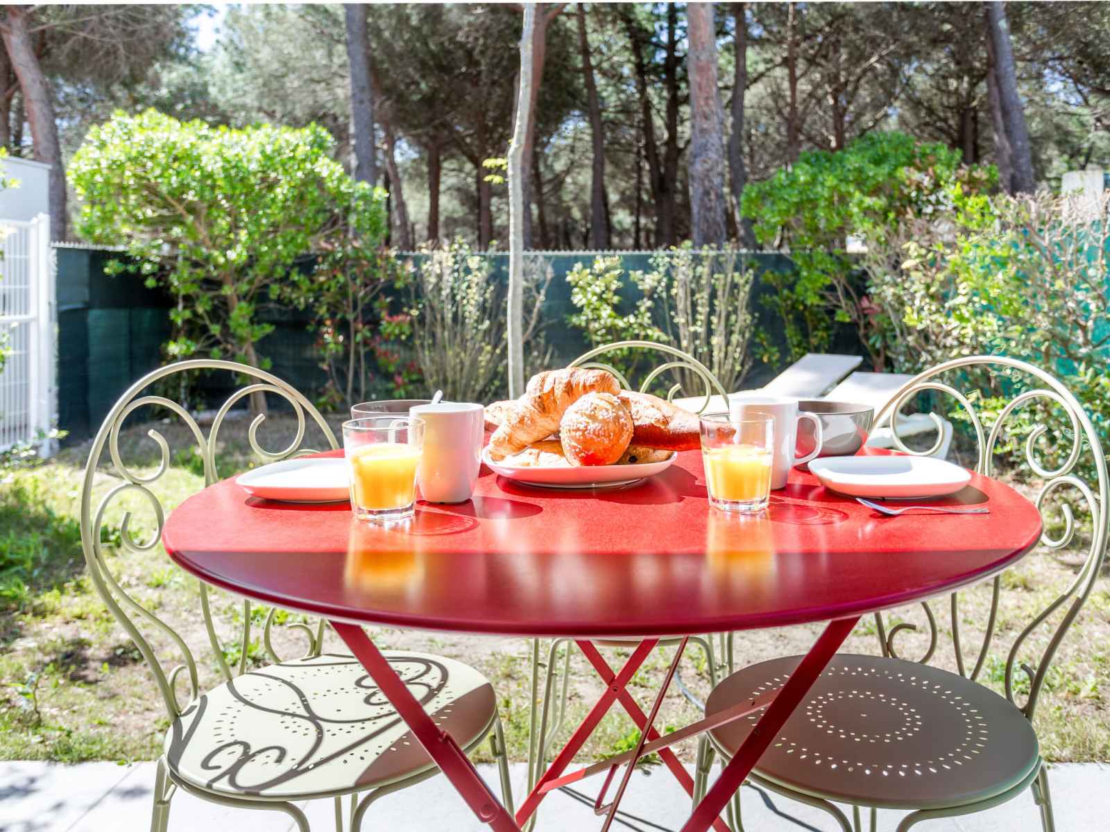 "les pins parasols", apt 3 pièces 60 m2, au rez-de-chaussée. clair, aménagement moderne: séjour/salle à manger avec table pour les repas, tv (satellite) et volet roulant électrique. sortie sur la terrasse, orientée sud. 1 chambre avec 1 grand-lit (160 cm), volet roulant électrique. sortie sur la terrasse. 1 chambre avec 2 lits (90 cm),