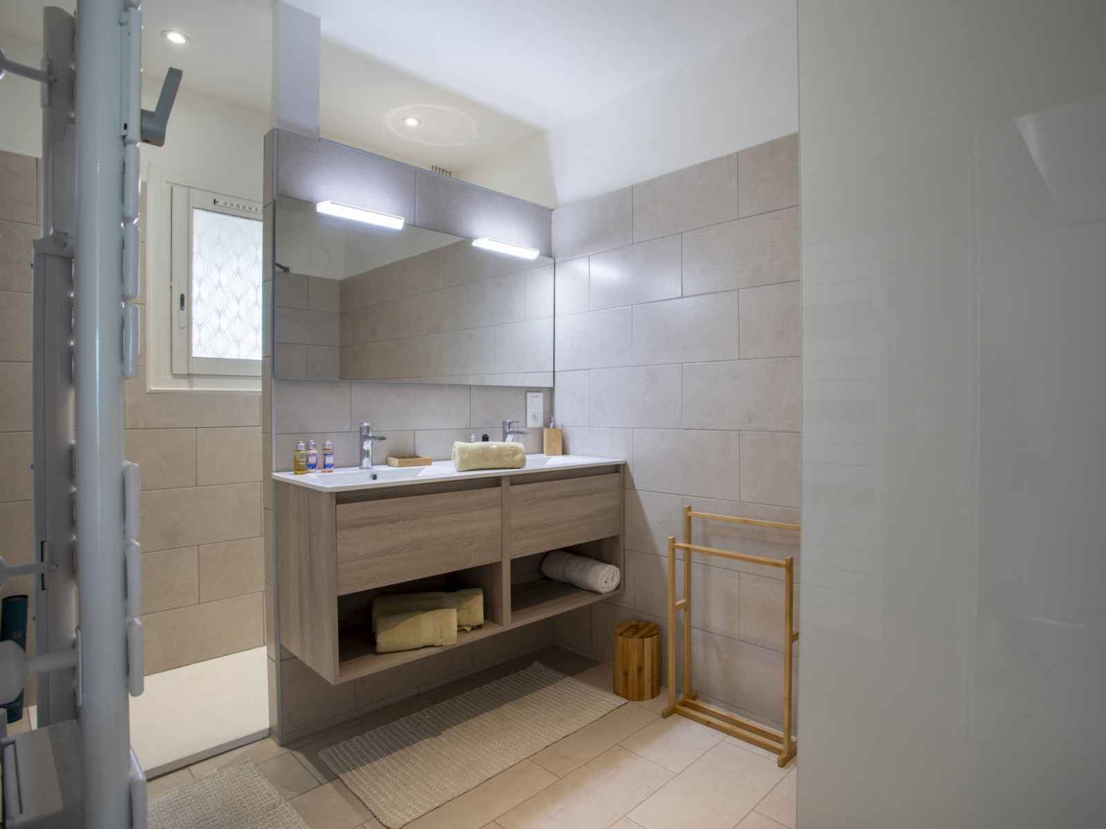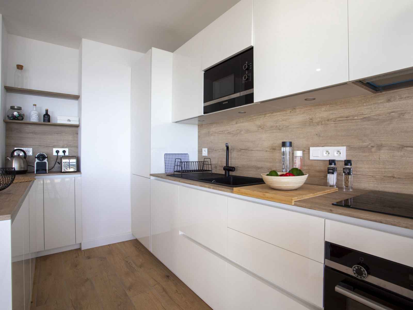 Cuisine ouverte (four, lave-vaisselle, 3 plaques à induction, grille-pain, bouilloire électrique, micro-ondes, cafetière électrique). Sortie sur la terrasse. Douche/WC. Chauffage, air-conditionné. Grand balcon 10 m2, situation nord et situation ouest, grande terrasse 15 m2, situation sud et situation ouest. Meubles de terrasse. Très belle vue panoramique sur la mer. A disposition: fer à repasser, sèche-cheveux. Internet (Connexion WIFI, gratuit). Veuillez noter: maison non-fumeur. Détecteur de fumée. Annonce d'un particulier (art 155, IV du CGI). 06027034453DP