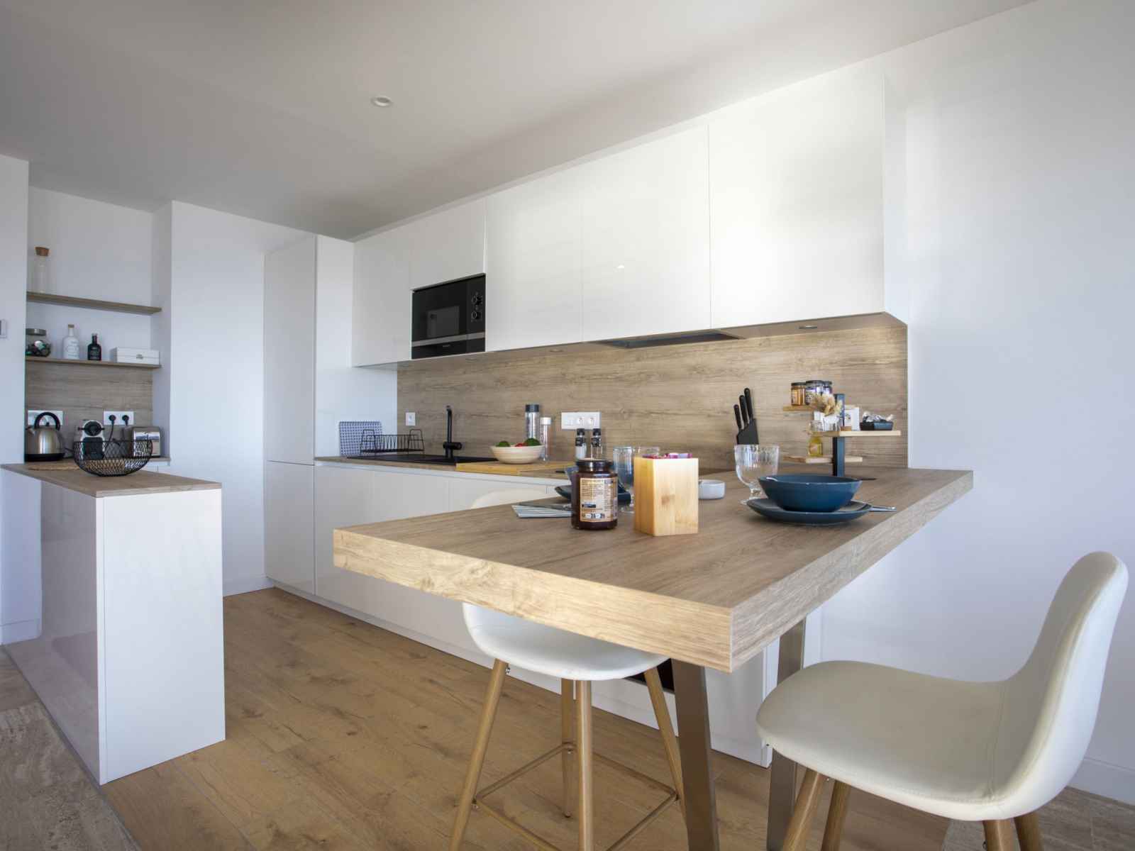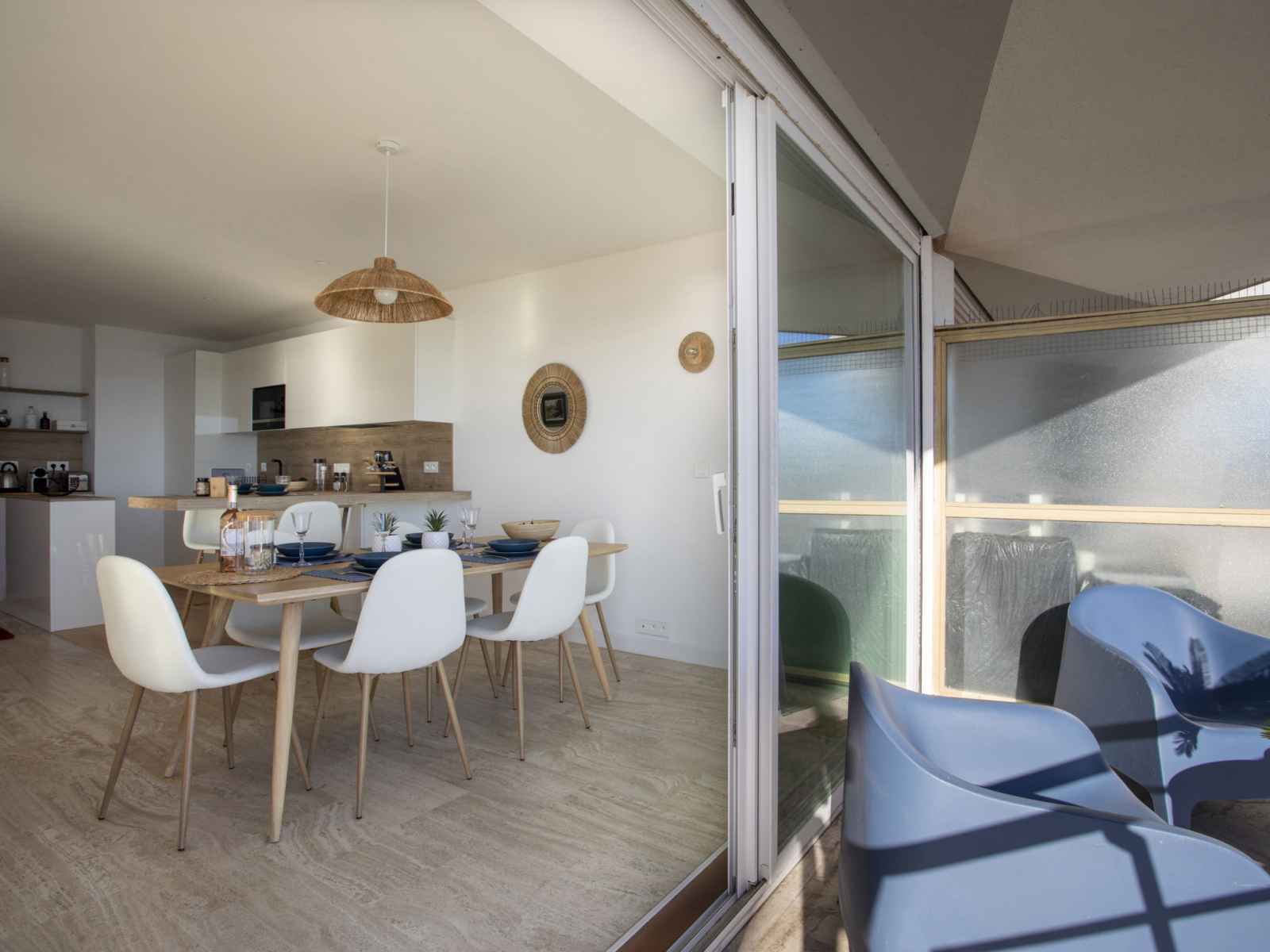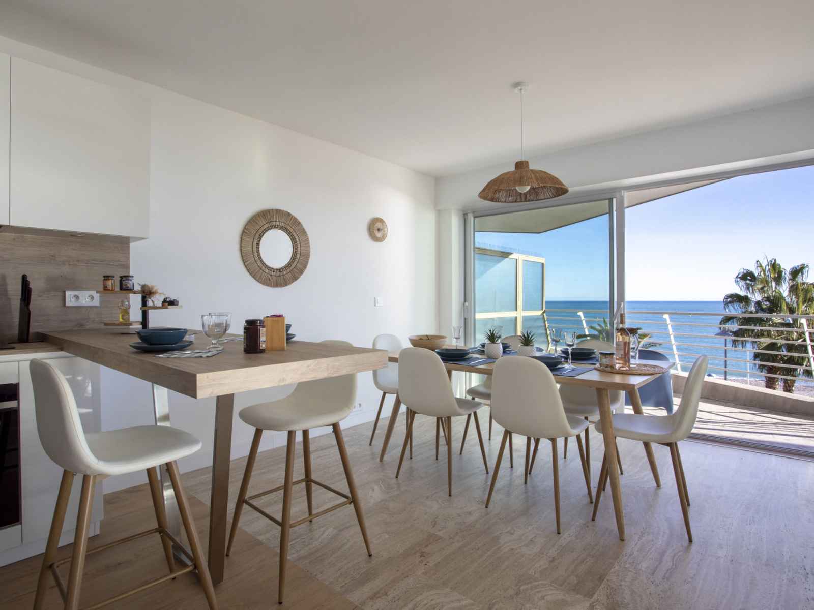 Cuisine ouverte (four, lave-vaisselle, 3 plaques à induction, grille-pain, bouilloire électrique, micro-ondes, cafetière électrique). Sortie sur la terrasse. Douche/WC. Chauffage, air-conditionné. Grand balcon 10 m2, situation nord et situation ouest, grande terrasse 15 m2, situation sud et situation ouest. Meubles de terrasse. Très belle vue panoramique sur la mer. A disposition: lave-linge, fer à repasser, sèche-cheveux. Internet (Connexion WIFI, gratuit). Place de parking (1 Voiture). Veuillez noter: maison non-fumeur. Détecteur de fumée. Annonce d'un particulier (art 155, IV du CGI). 06027034453DP