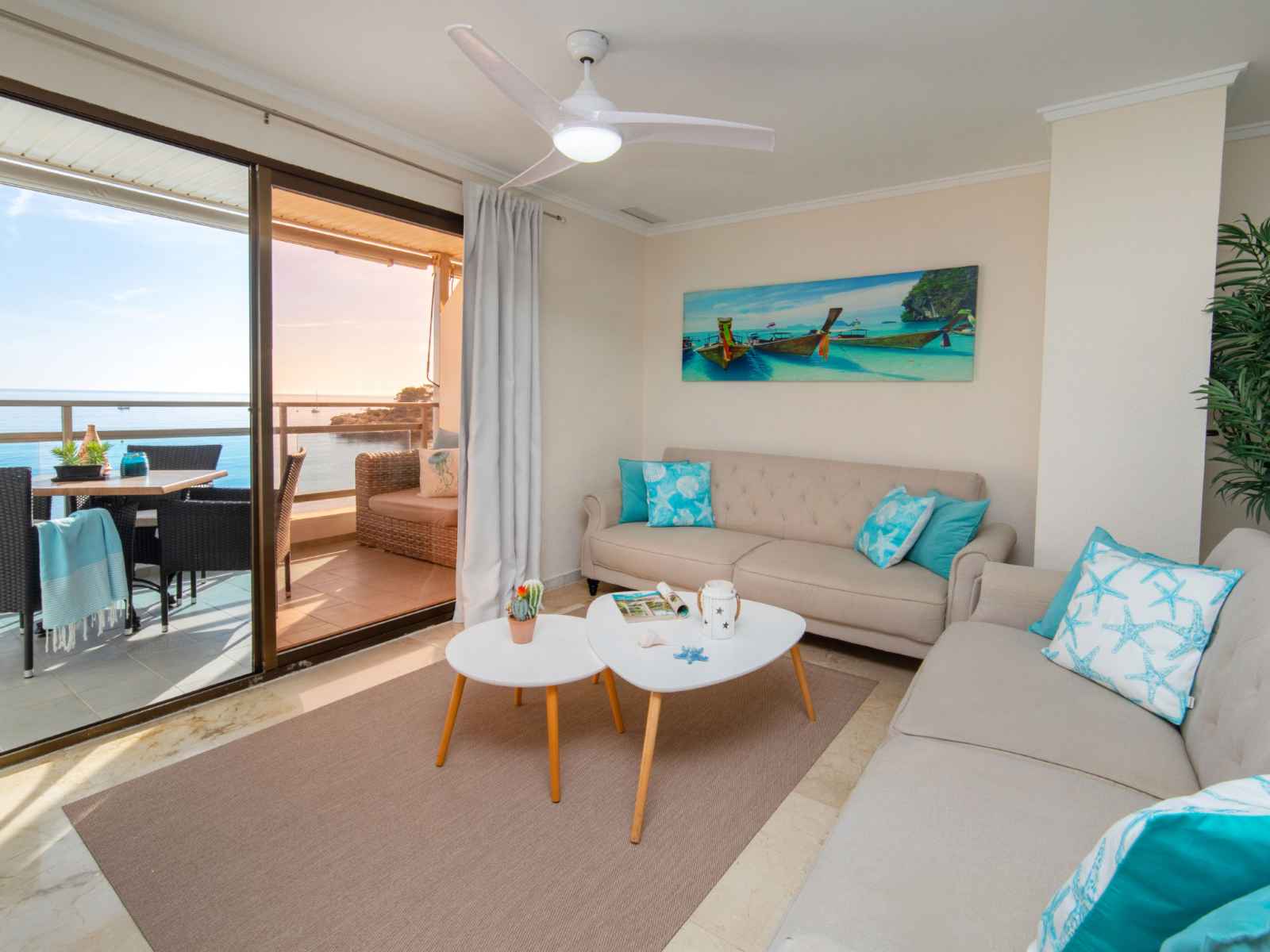 avec: 1 grand-lit (1 x 150 cm, longueur 190 cm), air-conditionné, ventilateur et chauffage à air chaud. Cuisine (four, lave-vaisselle, 3 plaques vitrocéramiques, grille-pain, bouilloire électrique, micro-ondes, congélateur, cafetière électrique). Douche/WC. Petite terrasse. Meubles de terrasse, place pour s'asseoir. Vue panoramique sur la mer. A disposition: lave-linge, fer à repasser, chaise haute pour enfant, lit bébé jusqu'à 2 ans, sèche-cheveux. Internet (Connexion WIFI, gratuit). Adapté(e) aux familles. VT-487184-A // Reg. Nr.: ESFCTU00000302900033576600000000000000000VT-487184-A9