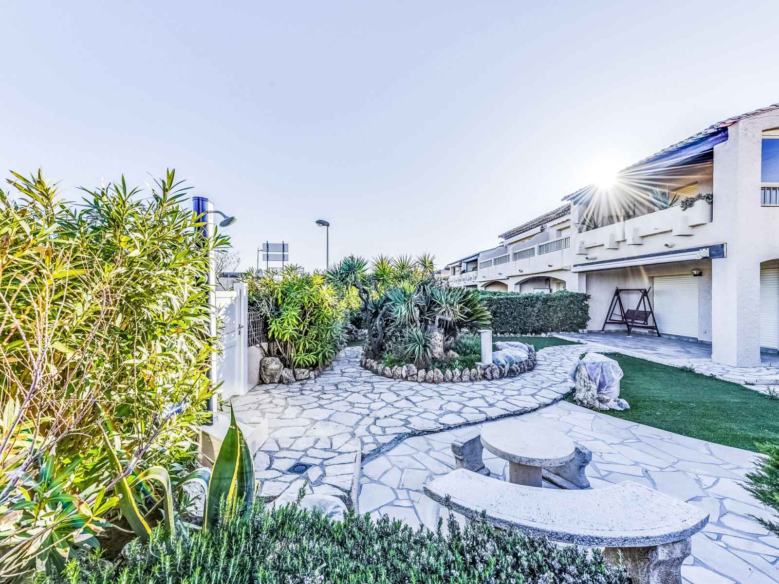 bus "place du parc" 350 m, plage de sable 20 m, parc "aqualand" 24 km, centre de plongée 800 m. port plaisance 800 m, ecole de voile, golf miniature 12 km, piste cyclable 20 m. attractions à proximité: azur park, paint-ball 12 km, bowling à port-grimaud 13 km, st-tropez 17 km, ste-maxime 24 km. région de randonnées: sentier du dattier 3.1 km, sentier du littoral 6600 km, toulon 60 km. la remise des clés a lieu à l’agence interhome de cavalaire.