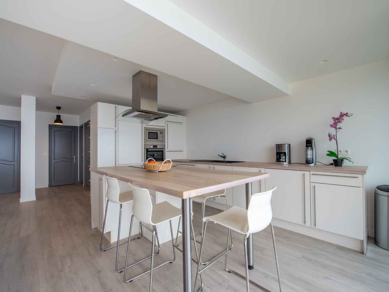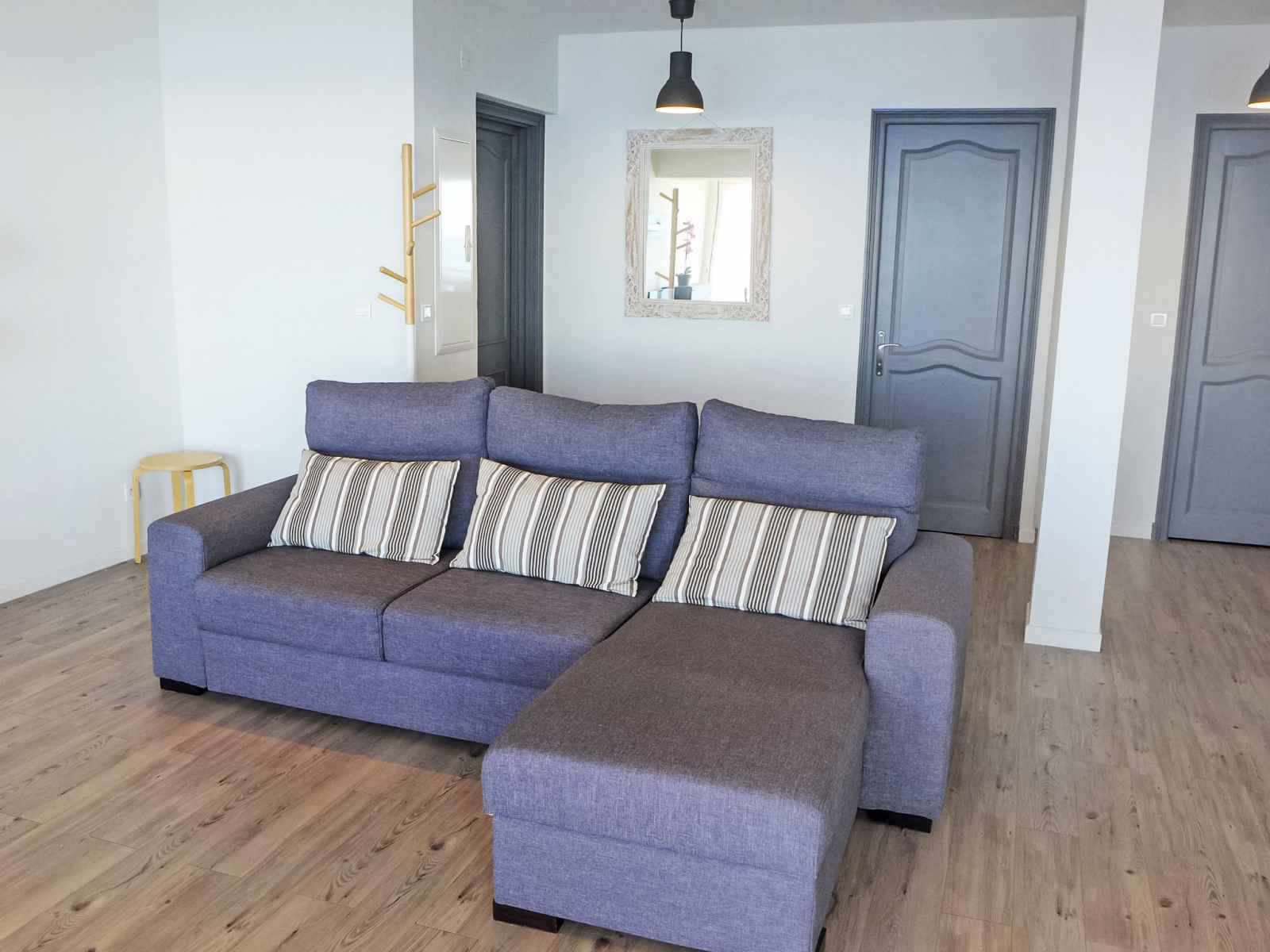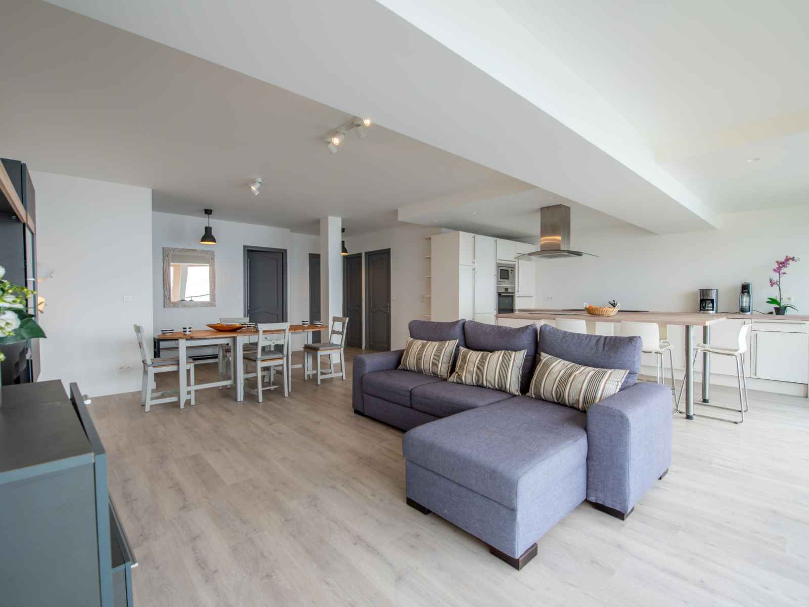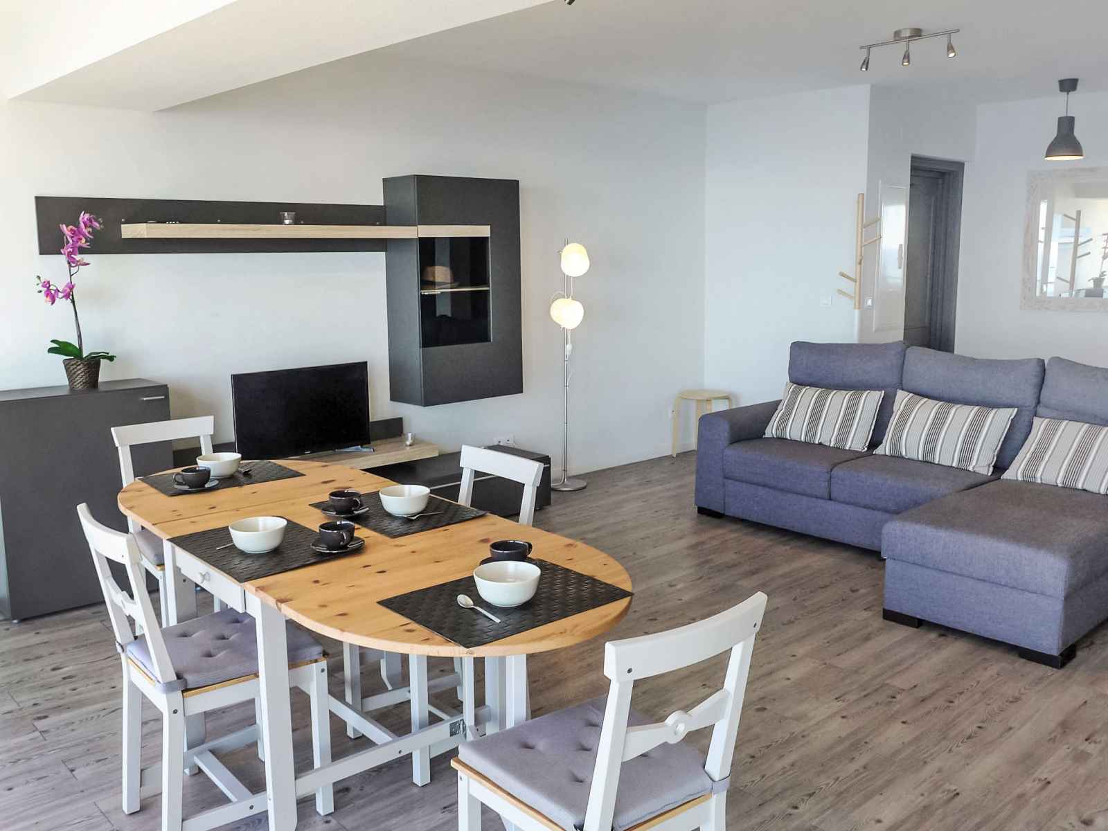 Apt 3 pièces 72 m2 au 1er étage. aménagement très confortable et moderne: séjour/salle à manger avec tv (écran plat), volet roulant électrique. 1 chambre avec 1 lit double (2 x 90 cm, longueur 190 cm), ventilateur. 1 chambre avec 2 lits (90 cm, longueur 190 cm), ventilateur. grande cuisine ouverte (four, 3 plaques à induction,