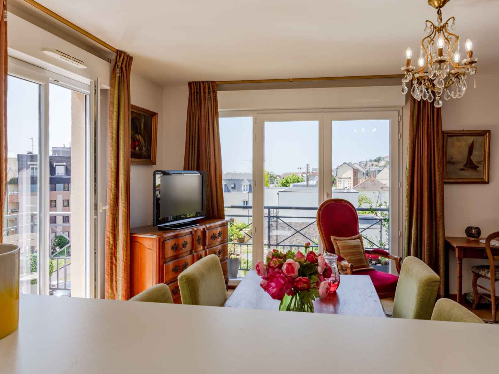 Apt 3 pièces 68 m2 au 3ème étage, situation ouest. entrée. séjour/salle à manger avec 1 divan-lit double (1 x 140 cm, longueur 190 cm), tv (écran plat). sortie sur le balcon. 1 chambre avec 2 lits (90 cm). 1 chambre avec 1 grand-lit (1 x 160 cm, longueur 200 cm), tv (écran plat). sortie sur le balcon. cuisine ouverte (4 plaques de cuisson,