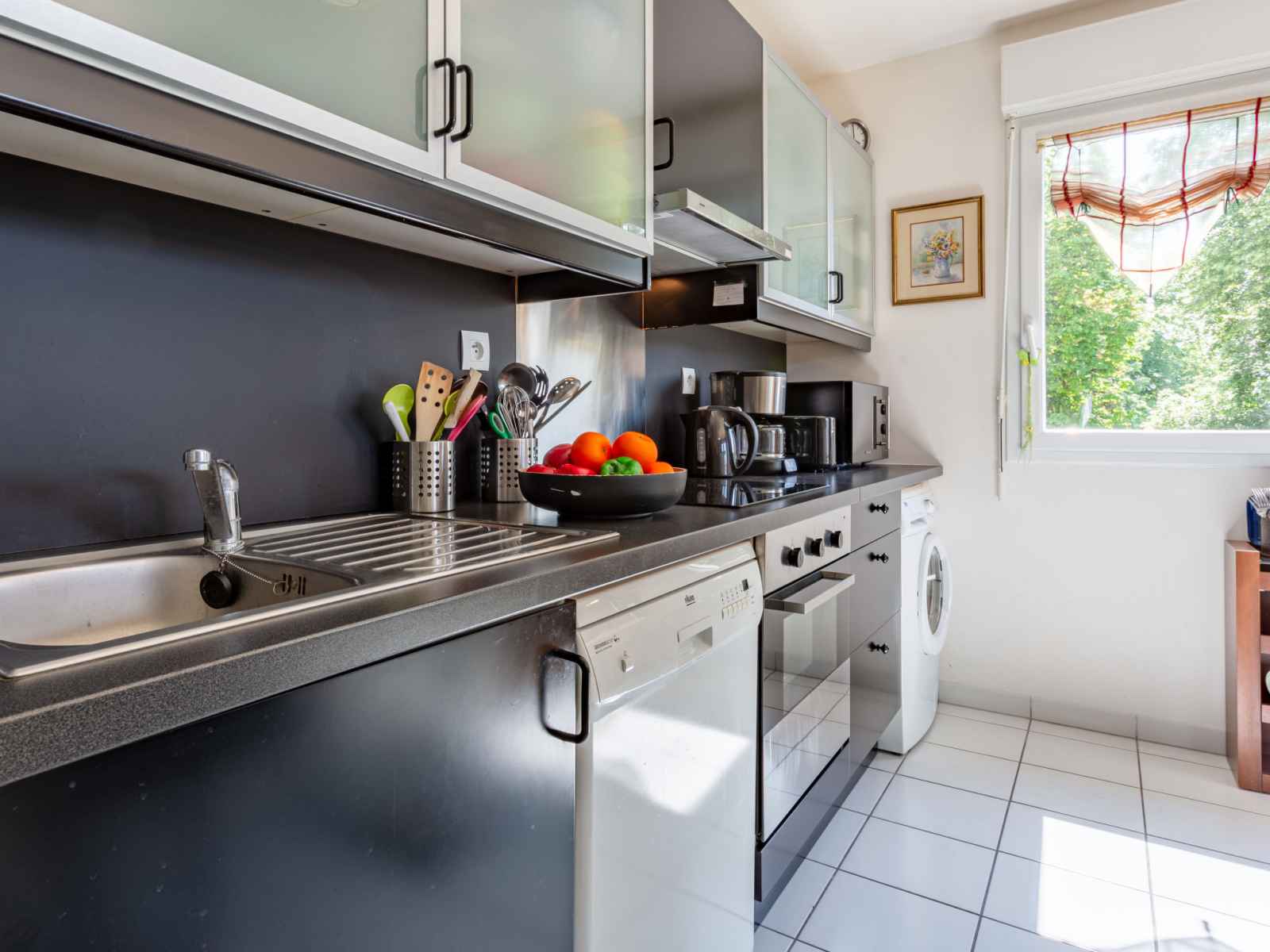 four, lave-vaisselle, grille-pain, bouilloire électrique, micro-ondes, congélateur, cafetière électrique). Douche, WC séparé. Chauffage électrique. Balcon 4 m2, balcon 2 m2. Mobilier de balcon. Vue sur les alentours. A disposition: lave-linge, lit bébé. Internet (Connexion WIFI, gratuit). Place de parking (couvert, 1 Voiture), hauteur 195 cm, largeur 280 cm. Veuillez noter: logement non-fumeur. Maximum 1 animal/ chien autorisé. Détecteur de fumée. 14715000105WI
