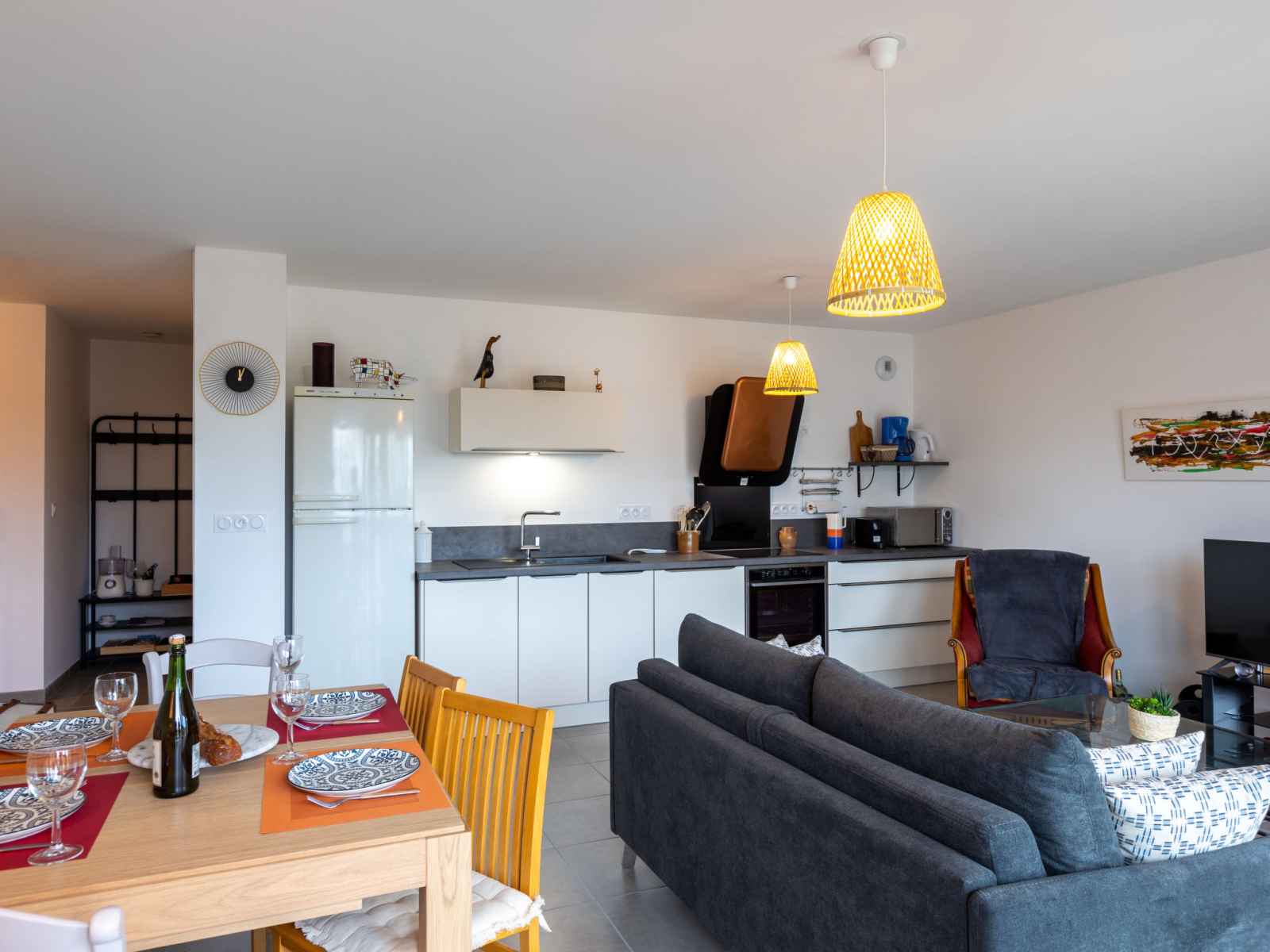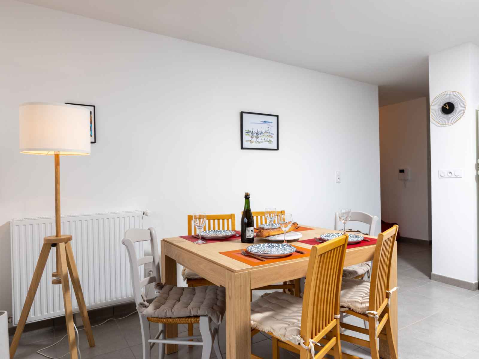 Apt 3 pièces 65 m2 au 2ème étage. clair, aménagement confortable et plaisant: séjour/salle à manger avec tv (écran plat), chaîne stéréo. sortie sur le balcon. 1 chambre avec 2 lits (80 cm, longueur 190 cm). 1 chambre avec 1 lit double (140 cm, longueur 190 cm). cuisine ouverte (four, lave-vaisselle, 3 plaques à induction, grille-pain,
