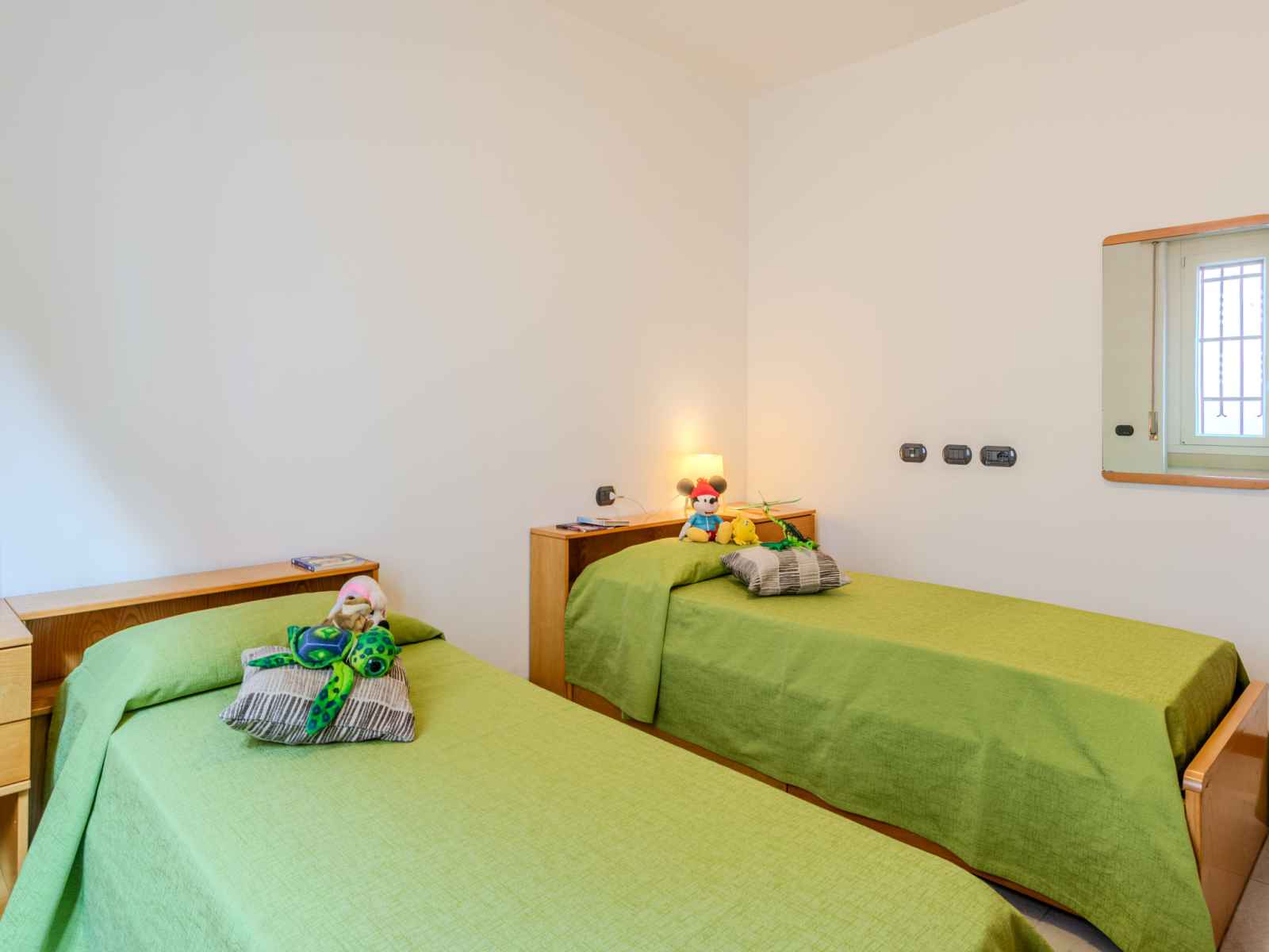 Apt 3 pièces 90 m2, au rez-de-chaussée. partiellement rénové en 2023, aménagement agréable: séjour/chambre à coucher avec 1 divan-lit double (150 cm), coin repas et tv (écran plat). 1 chambre double. 1 chambre avec 2 lits. grande cuisine (four, lave-vaisselle, poêle à gaz, 5 feux, grille-pain, bouilloire électrique, micro-ondes,