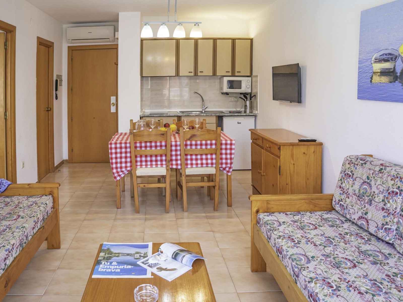 navigables, la cité lacustre d’empuriabrava abrite la plus grande marina d'europe. À quelques pas de la plage, la résidence vous propose des appartements climatisés, dotés d’un accès wifi et ouverts sur un petit balcon. pendant votre séjour, vous pourrez profiter de 4 piscines extérieures* et partager un verre en famille ou entre amis au bar du restaurant. côté loisirs, le site vous propose une aire de jeux et des activités pour les enfants, un mini-golf (avec participation) et une salle de jeux avec billard/baby-foot (avec participation).