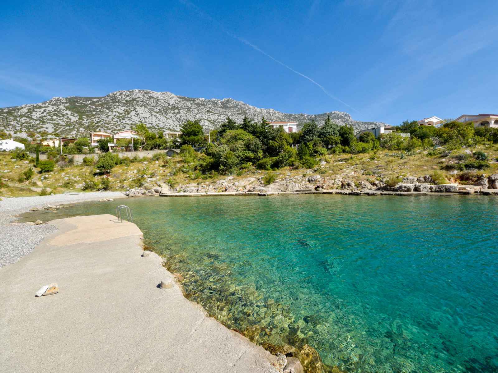 Ribarica à 5 km de karlobag: immeuble "beba". À 80 m de la mer, à 80 m de la plage, sur une route principale. en commun: terrain 300 m2 (clôturé). barbecue. infrastructures de la maison: accès internet. place de parking près de la maison sur le terrain. magasins, restaurant 250 m, arrêt de bus 1.2 km, plage de graviers 80 m.