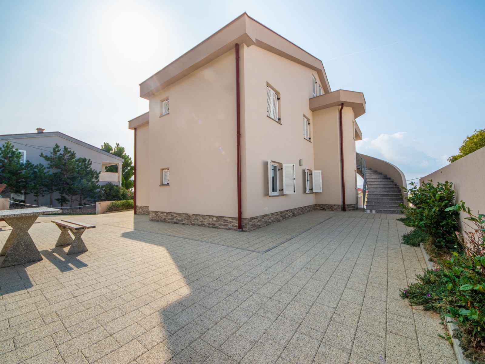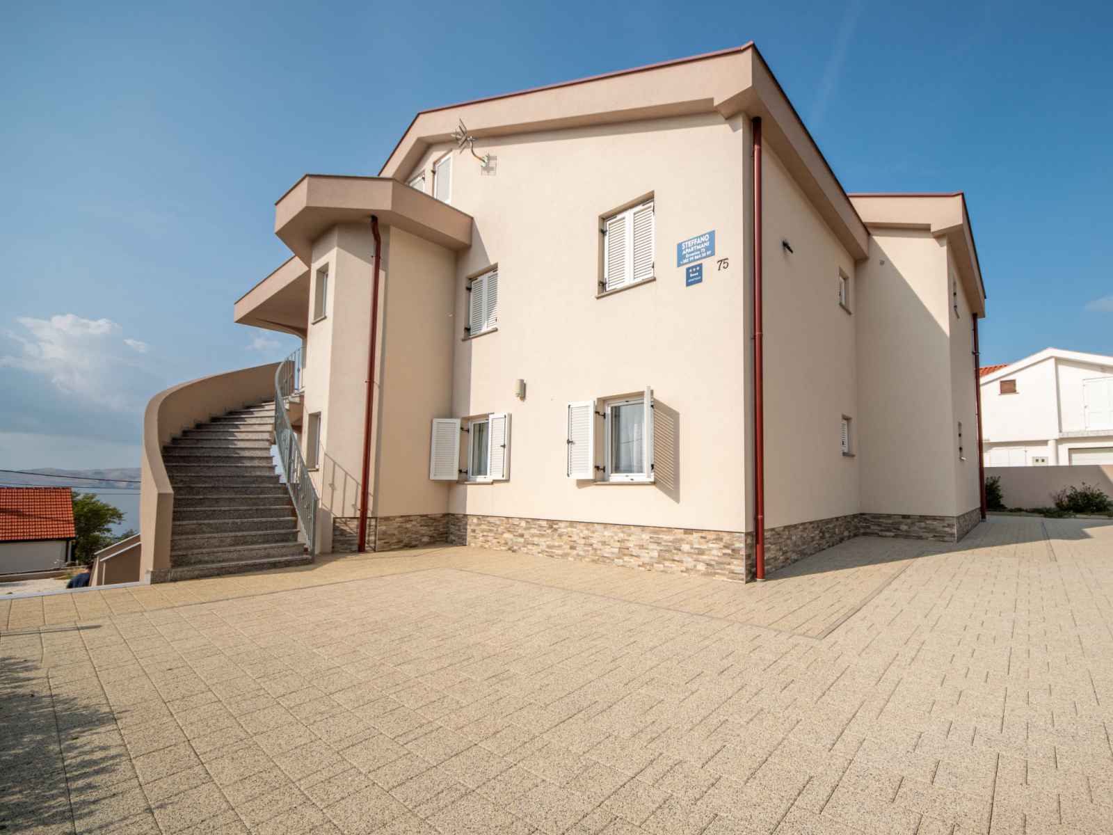 Ribarica à 5 km de karlobag: immeuble "steffano". 3 appartements dans la même entité. situation ensoleillée, à 50 m de la mer, à 50 m de la plage. en commun: douche extérieure, terrasse (200 m2), meubles de jardin, barbecue (balançoire). infrastructures de la maison: accès internet. place de parking près de la maison sur le terrain.